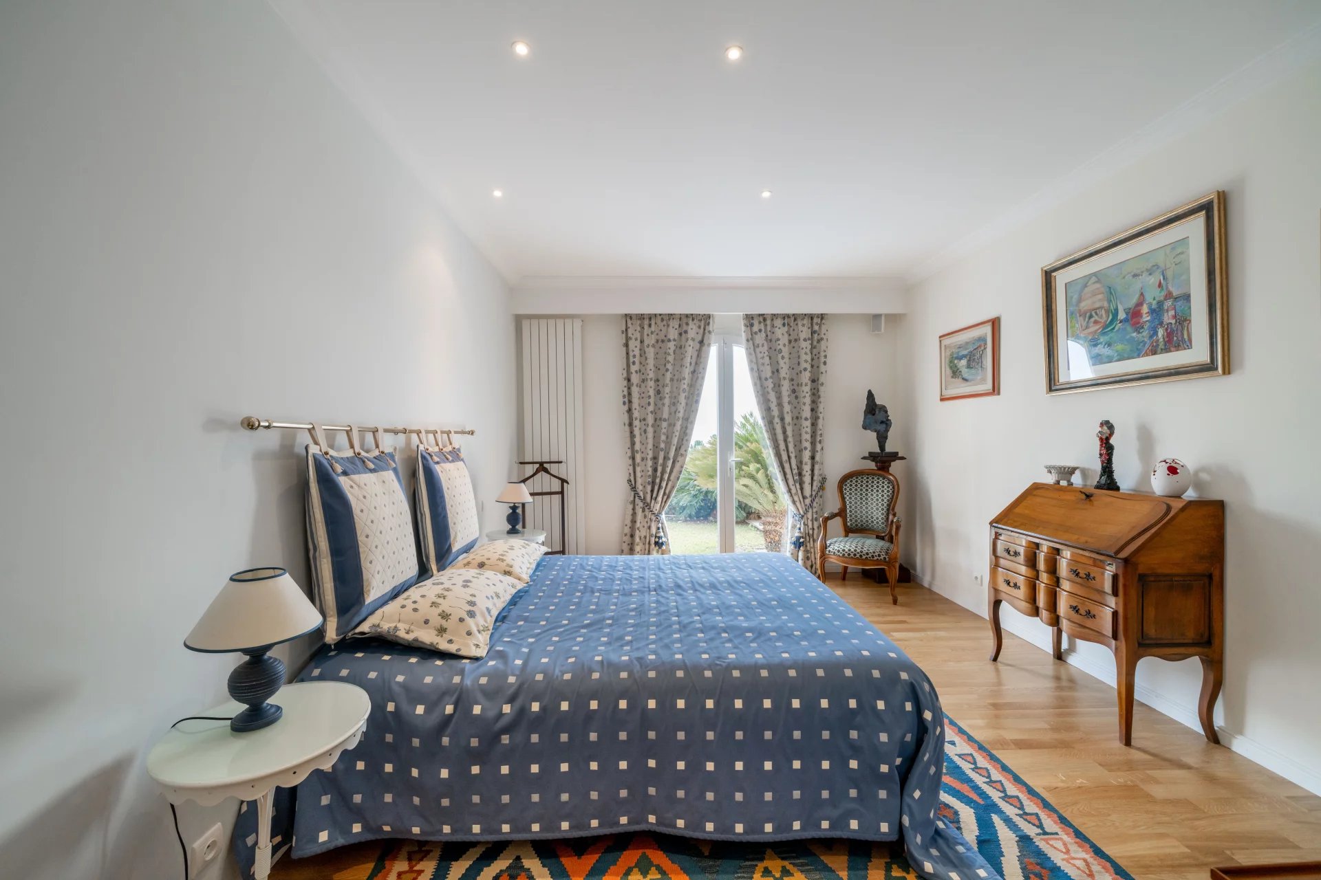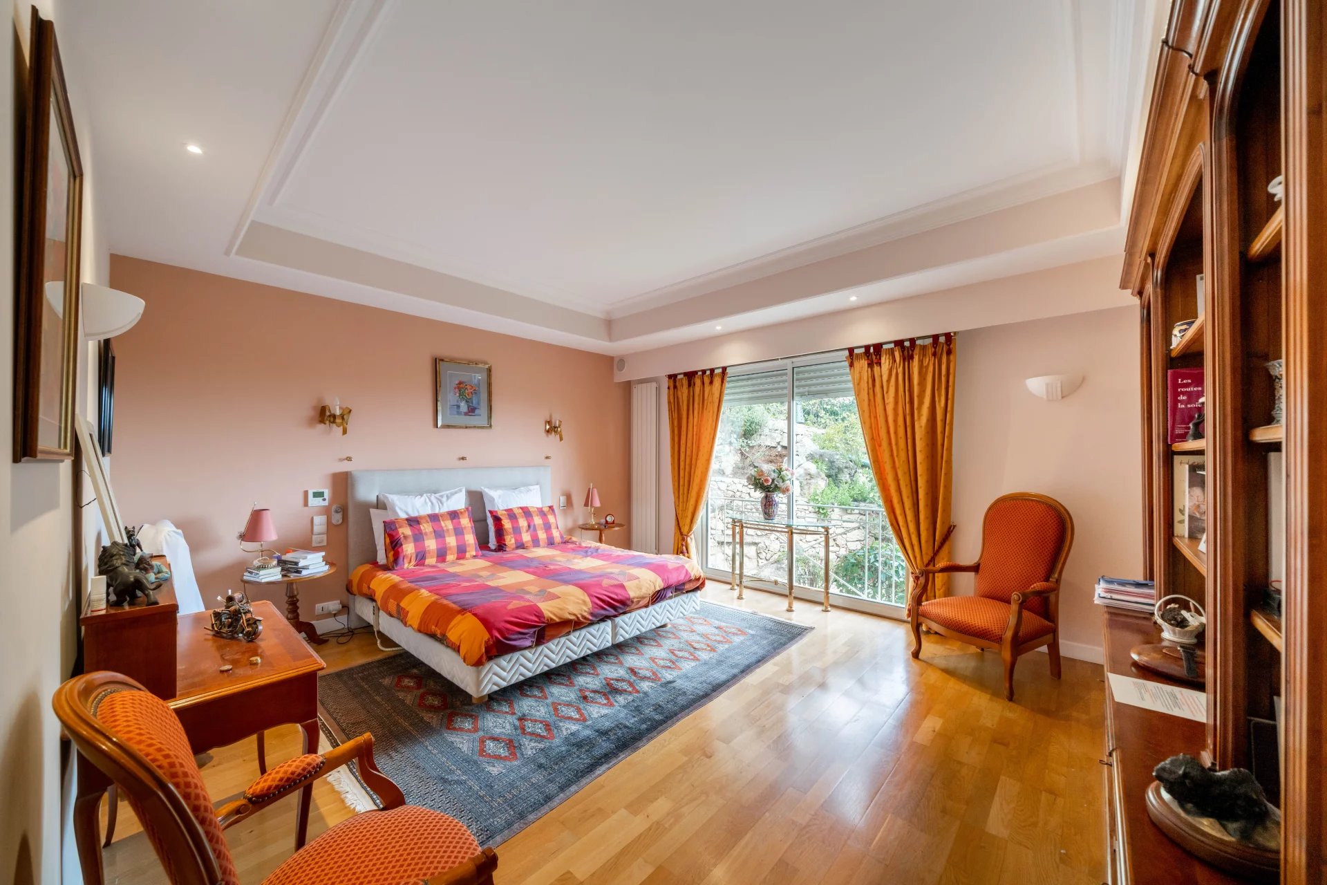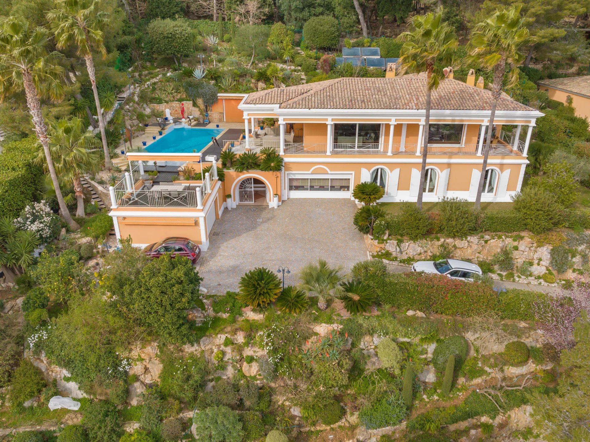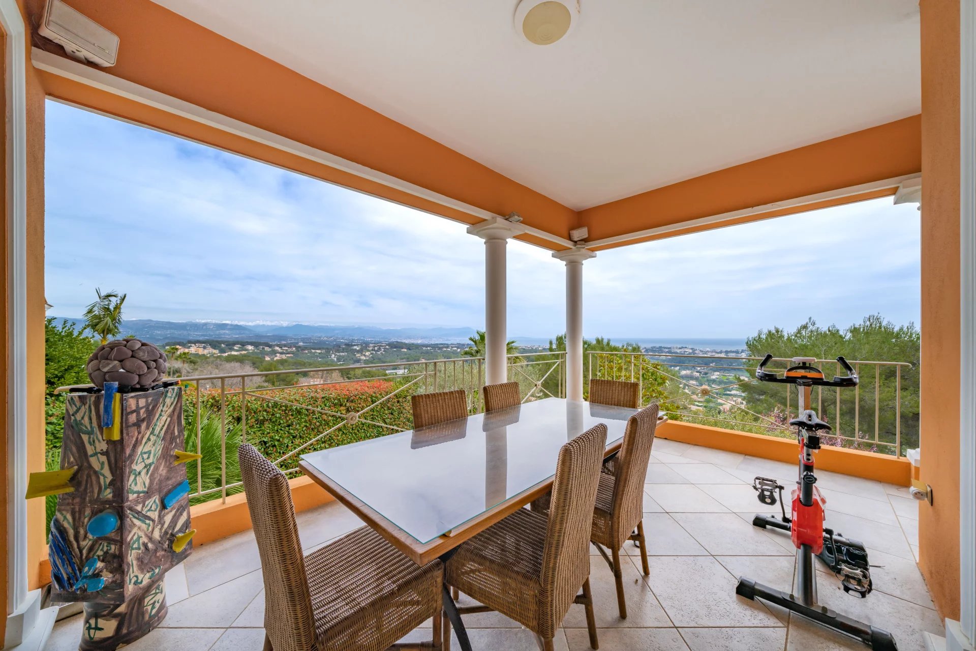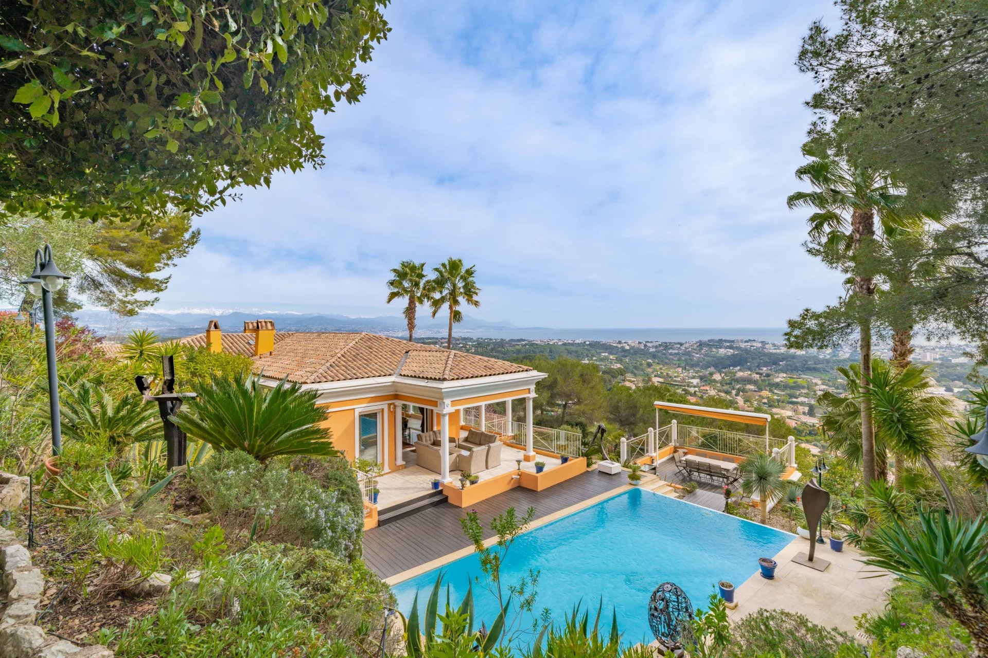 Située à Vallauris, cette élégante villa d’environ 345 m² habitables, complétée par 93 m² de surfaces annexes, s’implante sur un terrain paysager de 2 200 m², offrant une vue panoramique exceptionnelle sur la mer, les îles et les montagnes du Mercantour. La propriété se distingue par ses volumes généreux et sa luminosité, avec une vaste salle de réception, un grand salon / salle à manger, une cuisine indépendante entièrement équipée ainsi qu’un bureau. L’espace nuit comprend quatre chambres, dont une suite parentale avec dressing et salle de bains, complétées par plusieurs salles d’eau. Chaque chambre bénéficie d’une douche balnéo, apportant un confort supplémentaire. Un appartement indépendant de deux pièces vient enrichir l’ensemble, idéal pour accueillir des invités ou du personnel. Prestations • Ascenseur • Piscine à débordement • Pool house entièrement équipé • Climatisation réversible individuelle • Chauffage individuel par chaudière gaz • Production d’eau chaude par chaudière gaz et panneaux solaires • Assainissement par fosse septique • Absence de cheminée ⸻ Informations complémentaires Cette propriété rare conjugue confort, fonctionnalité et cadre de vie d’exception sur la Côte d’Azur. ⸻ Conditions de vente Le bien est vendu occupé, les occupants bénéficiant d’un droit d’usage et d’habitation viager attaché à leur personne, lequel s’éteindra automatiquement à leur décès. L’acquéreur se porte ainsi acquéreur de la nue-propriété et disposera de la pleine jouissance du bien à l’extinction de ce droit, sans indemnité ni formalité complémentaire.