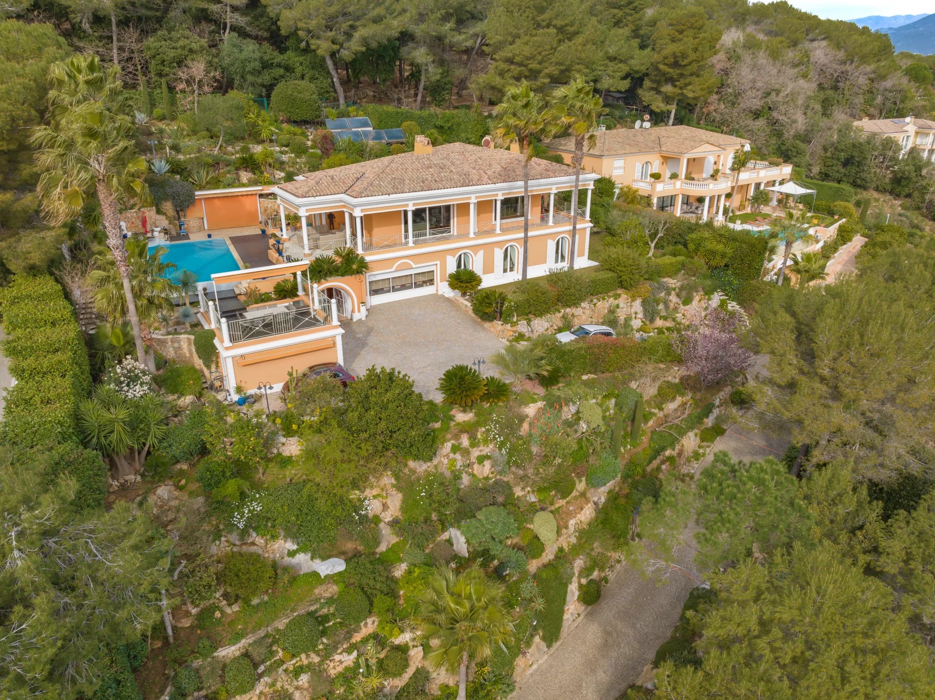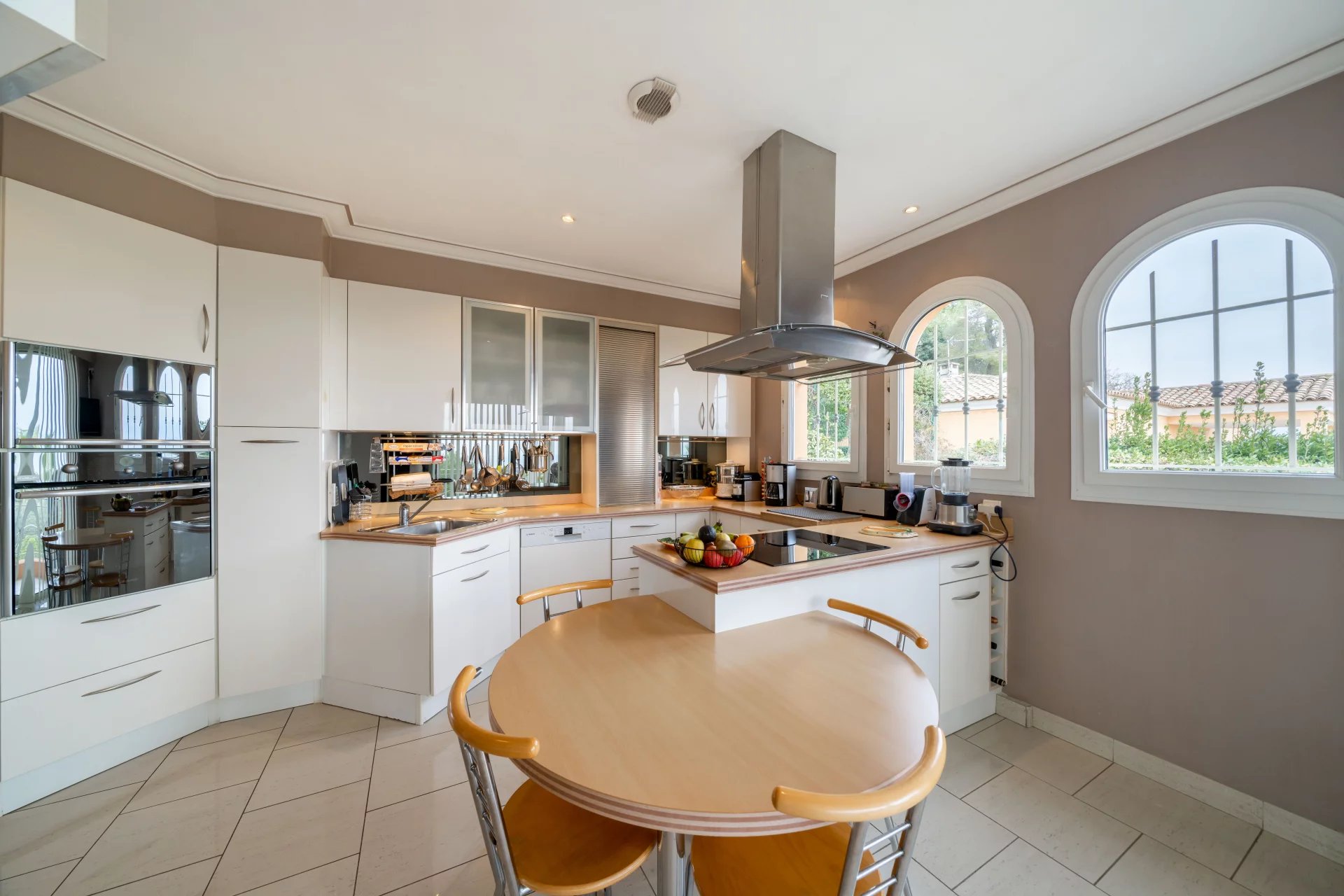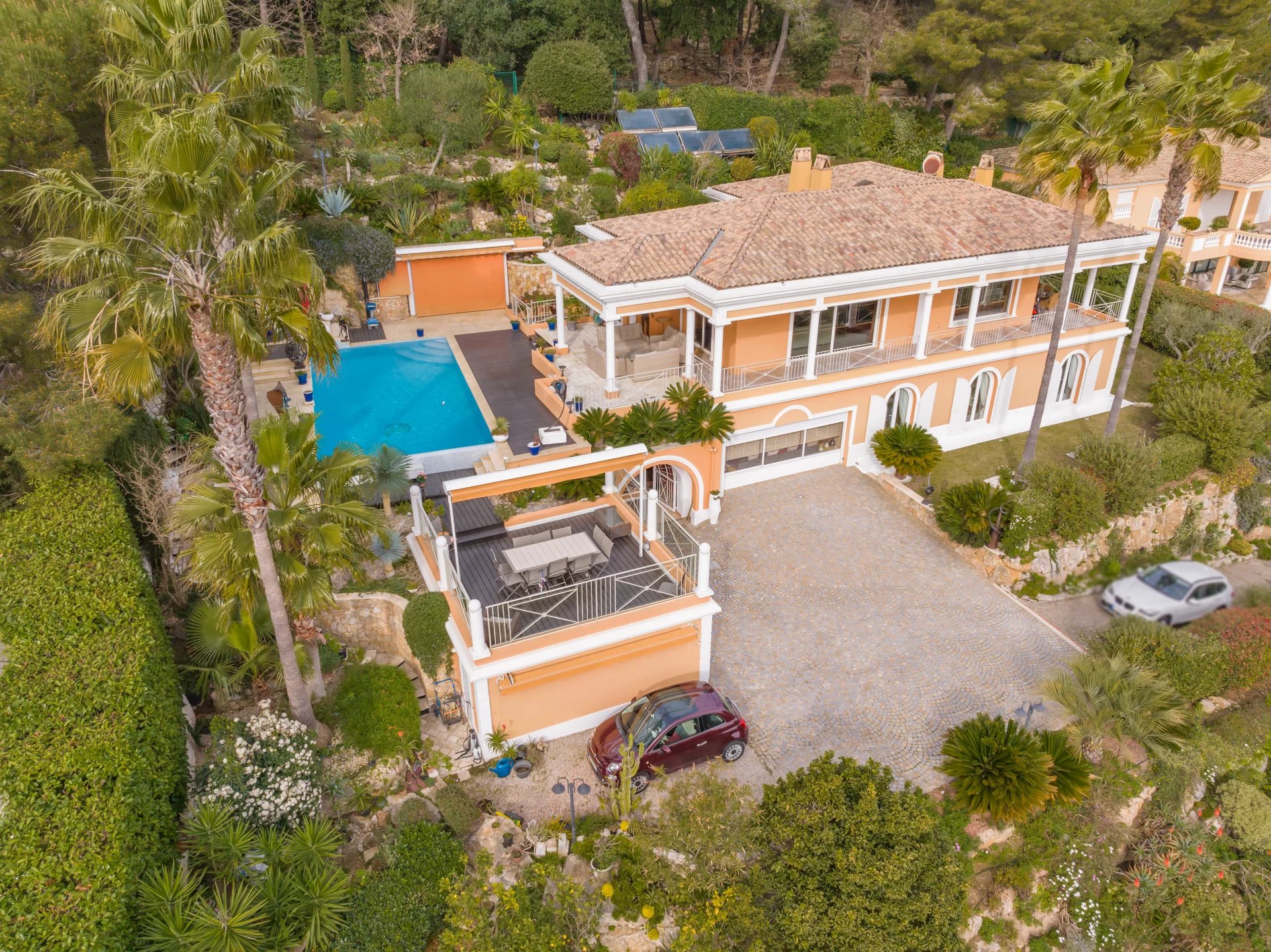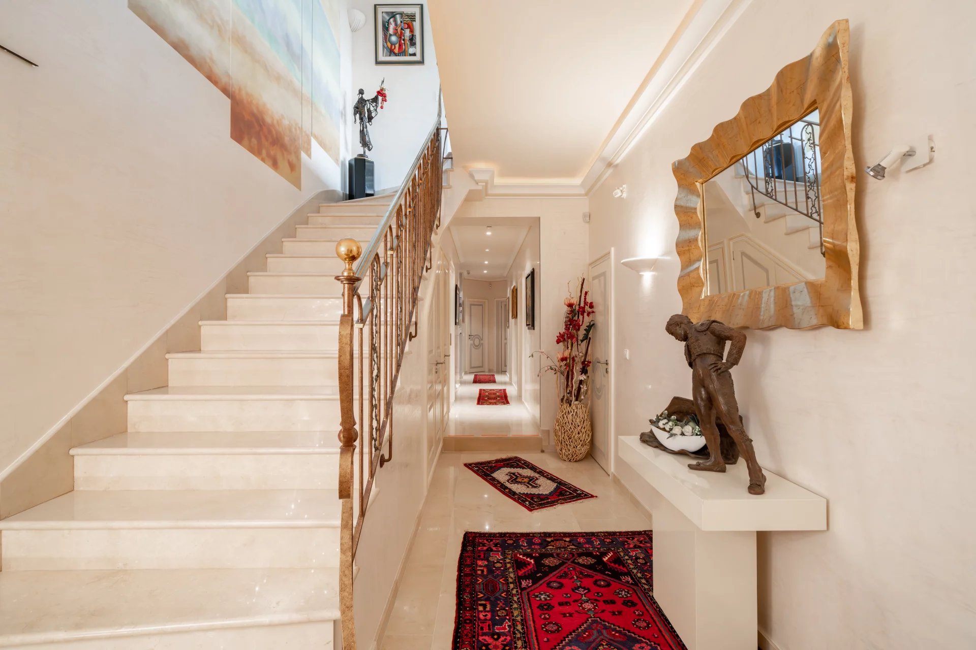 Située à Vallauris, cette élégante villa d’environ 345 m² habitables, complétée par 93 m² de surfaces annexes, s’implante sur un terrain paysager de 2 200 m², offrant une vue panoramique exceptionnelle sur la mer, les îles et les montagnes du Mercantour. La propriété se distingue par ses volumes généreux et sa luminosité, avec une vaste salle de réception, un grand salon / salle à manger, une cuisine indépendante entièrement équipée ainsi qu’un bureau. L’espace nuit comprend quatre chambres, dont une suite parentale avec dressing et salle de bains, complétées par plusieurs salles d’eau. Chaque chambre bénéficie d’une douche balnéo, apportant un confort supplémentaire. Un appartement indépendant de deux pièces vient enrichir l’ensemble, idéal pour accueillir des invités ou du personnel. Prestations • Ascenseur • Piscine à débordement • Pool house entièrement équipé • Climatisation réversible individuelle • Chauffage individuel par chaudière gaz • Production d’eau chaude par chaudière gaz et panneaux solaires • Assainissement par fosse septique • Absence de cheminée ⸻ Informations complémentaires Cette propriété rare conjugue confort, fonctionnalité et cadre de vie d’exception sur la Côte d’Azur. ⸻ Conditions de vente Le bien est vendu occupé, les occupants bénéficiant d’un droit d’usage et d’habitation viager attaché à leur personne, lequel s’éteindra automatiquement à leur décès. L’acquéreur se porte ainsi acquéreur de la nue-propriété et disposera de la pleine jouissance du bien à l’extinction de ce droit, sans indemnité ni formalité complémentaire.