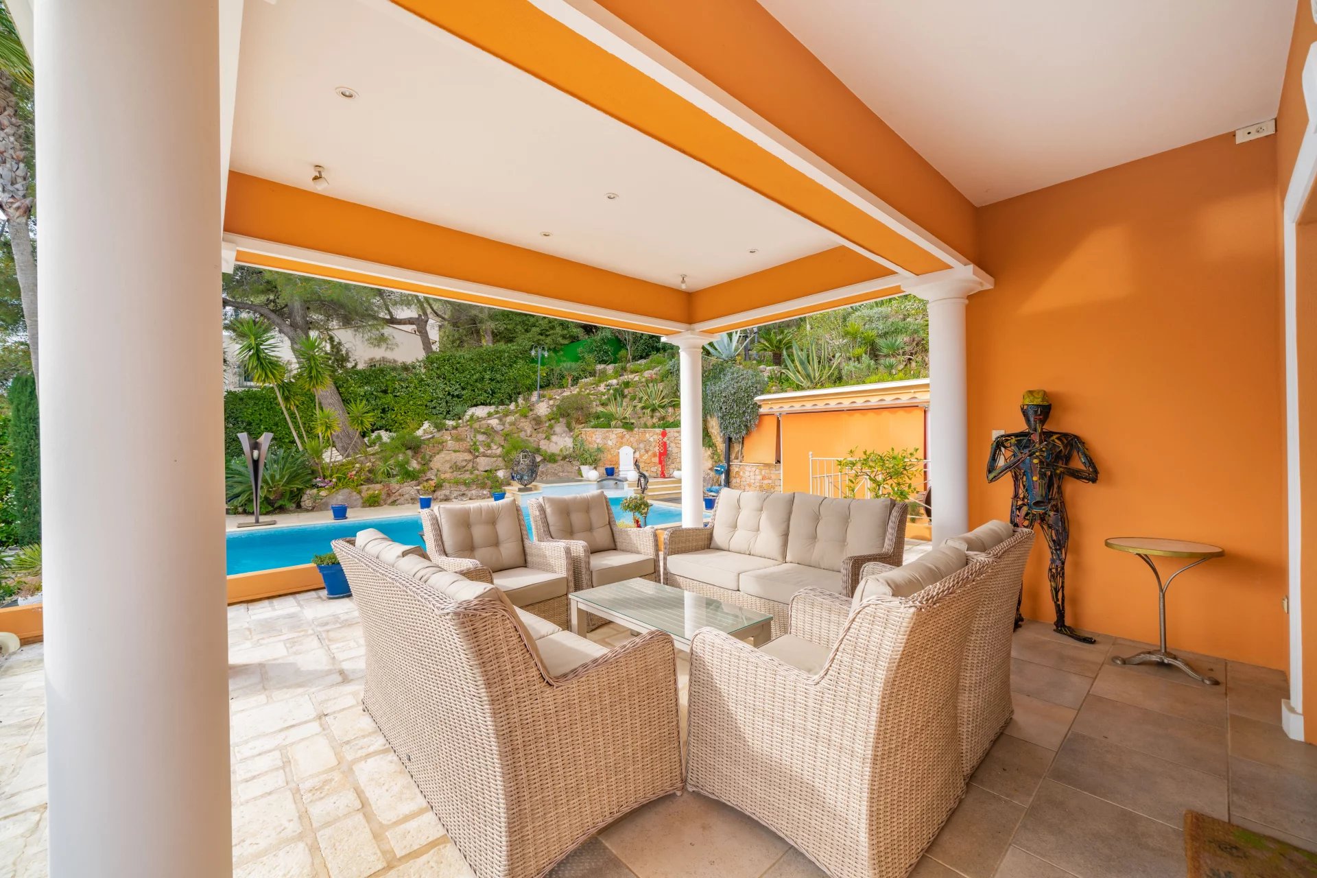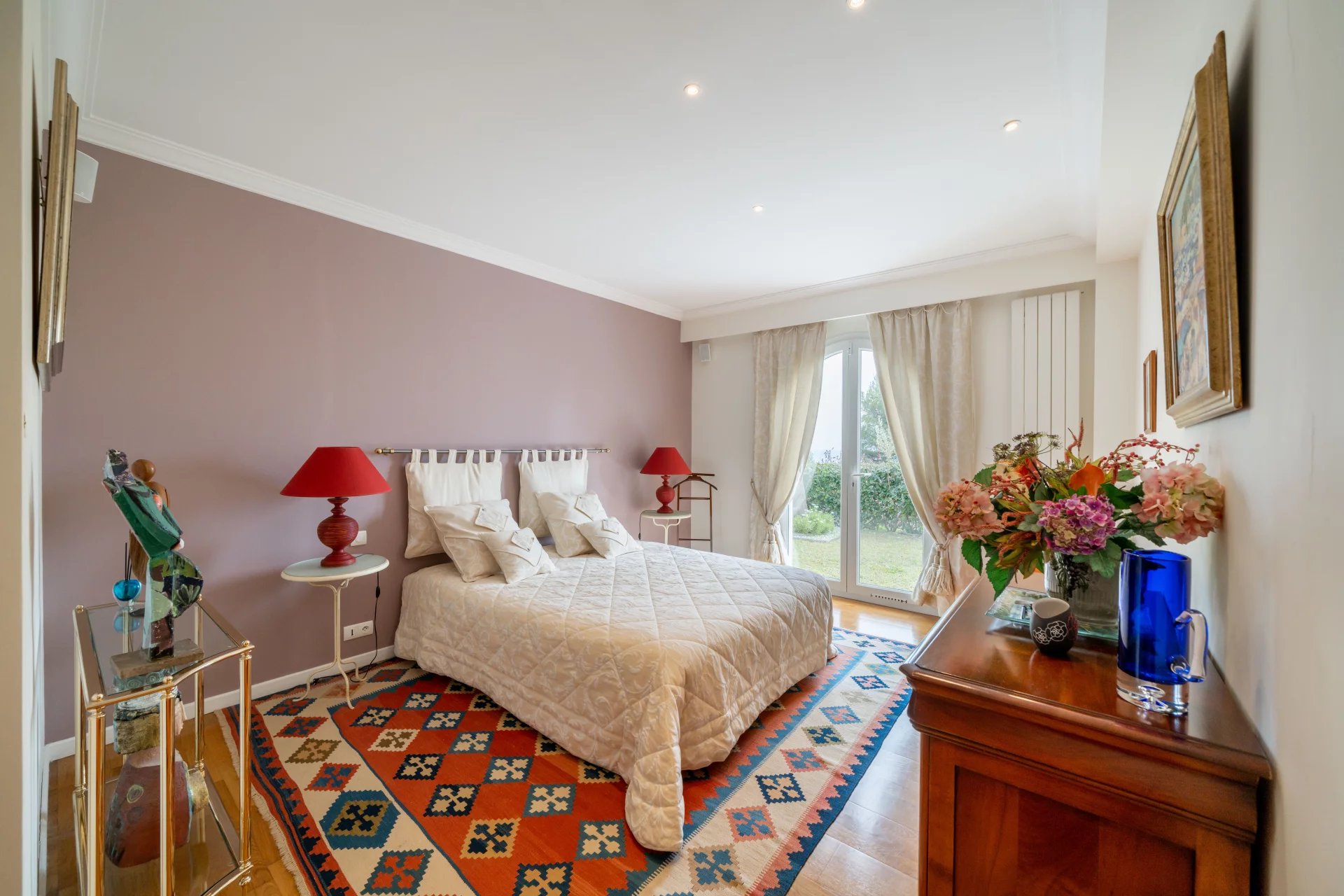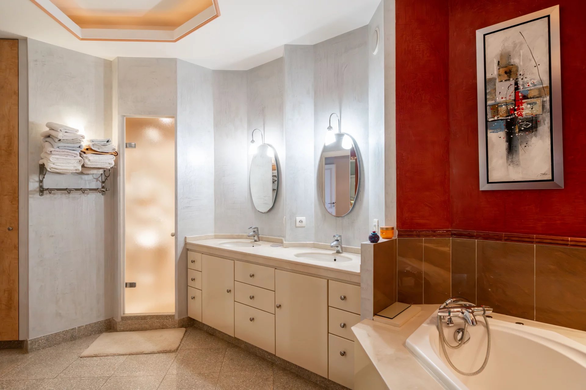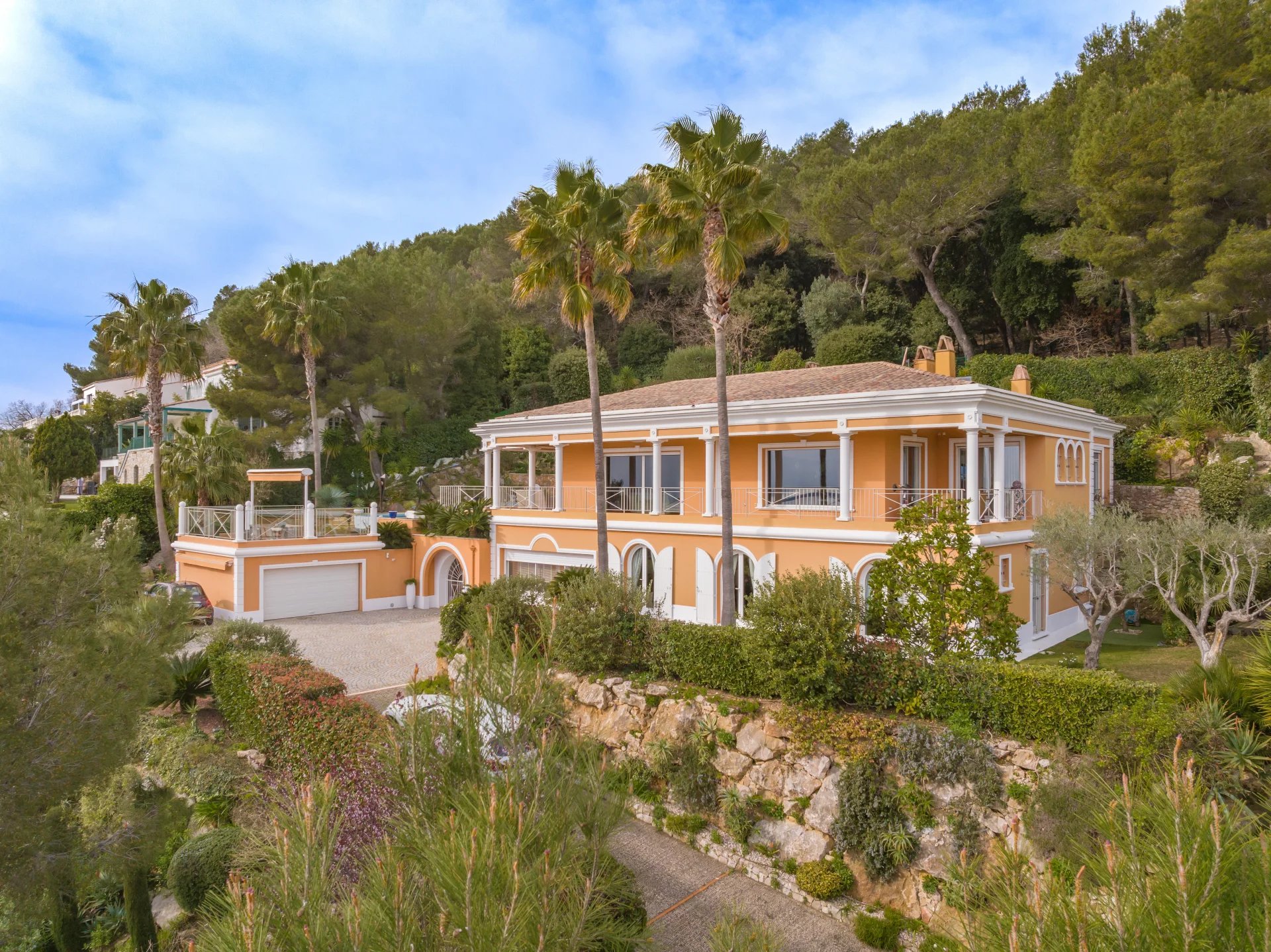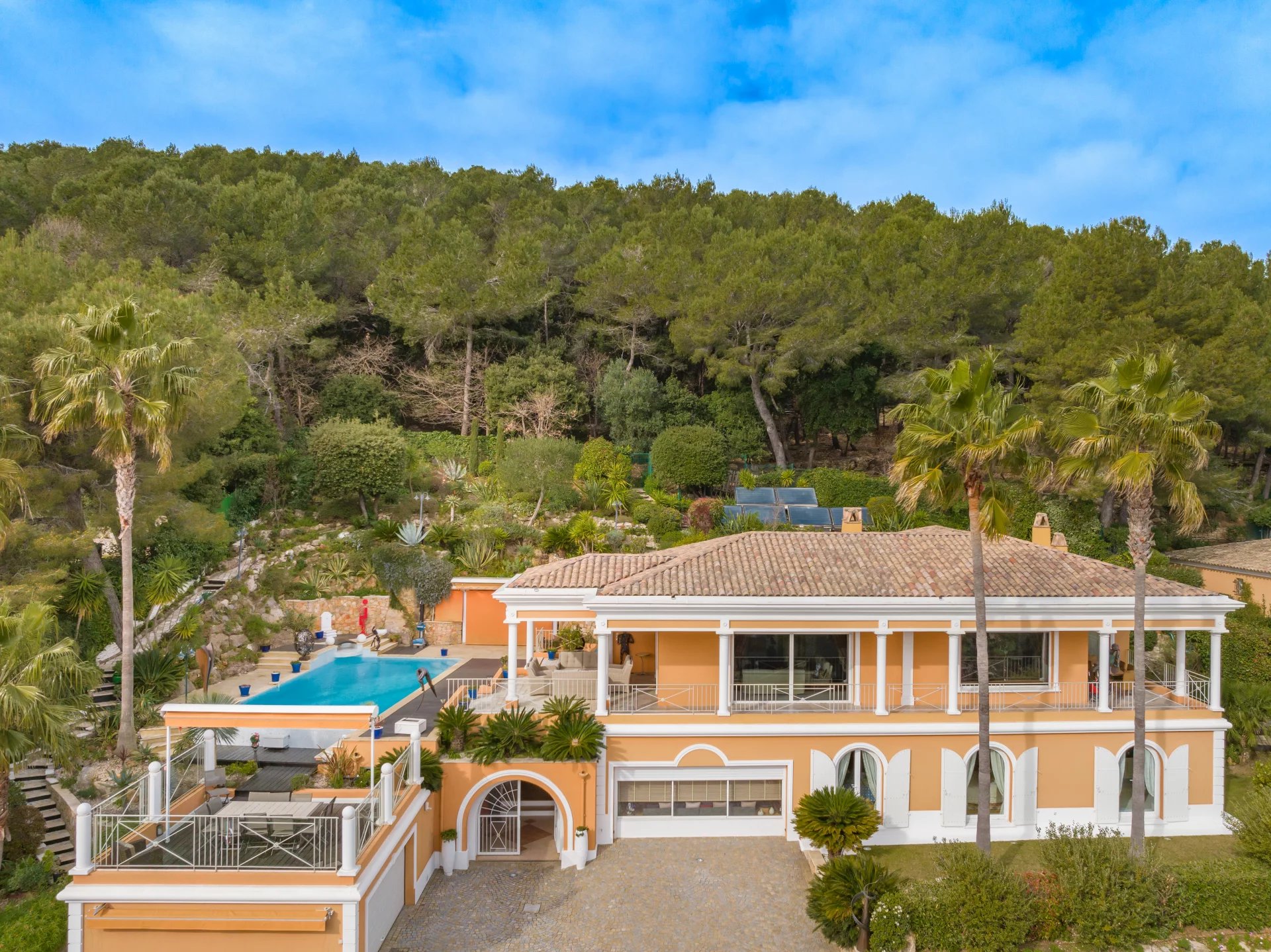 Située à Vallauris, cette élégante villa d’environ 345 m² habitables, complétée par 93 m² de surfaces annexes, s’implante sur un terrain paysager de 2 200 m², offrant une vue panoramique exceptionnelle sur la mer, les îles et les montagnes du Mercantour. La propriété se distingue par ses volumes généreux et sa luminosité, avec une vaste salle de réception, un grand salon / salle à manger, une cuisine indépendante entièrement équipée ainsi qu’un bureau. L’espace nuit comprend quatre chambres, dont une suite parentale avec dressing et salle de bains, complétées par plusieurs salles d’eau. Chaque chambre bénéficie d’une douche balnéo, apportant un confort supplémentaire. Un appartement indépendant de deux pièces vient enrichir l’ensemble, idéal pour accueillir des invités ou du personnel. Prestations • Ascenseur • Piscine à débordement • Pool house entièrement équipé • Climatisation réversible individuelle • Chauffage individuel par chaudière gaz • Production d’eau chaude par chaudière gaz et panneaux solaires • Assainissement par fosse septique • Absence de cheminée ⸻ Informations complémentaires Cette propriété rare conjugue confort, fonctionnalité et cadre de vie d’exception sur la Côte d’Azur. ⸻ Conditions de vente Le bien est vendu occupé, les occupants bénéficiant d’un droit d’usage et d’habitation viager attaché à leur personne, lequel s’éteindra automatiquement à leur décès. L’acquéreur se porte ainsi acquéreur de la nue-propriété et disposera de la pleine jouissance du bien à l’extinction de ce droit, sans indemnité ni formalité complémentaire.