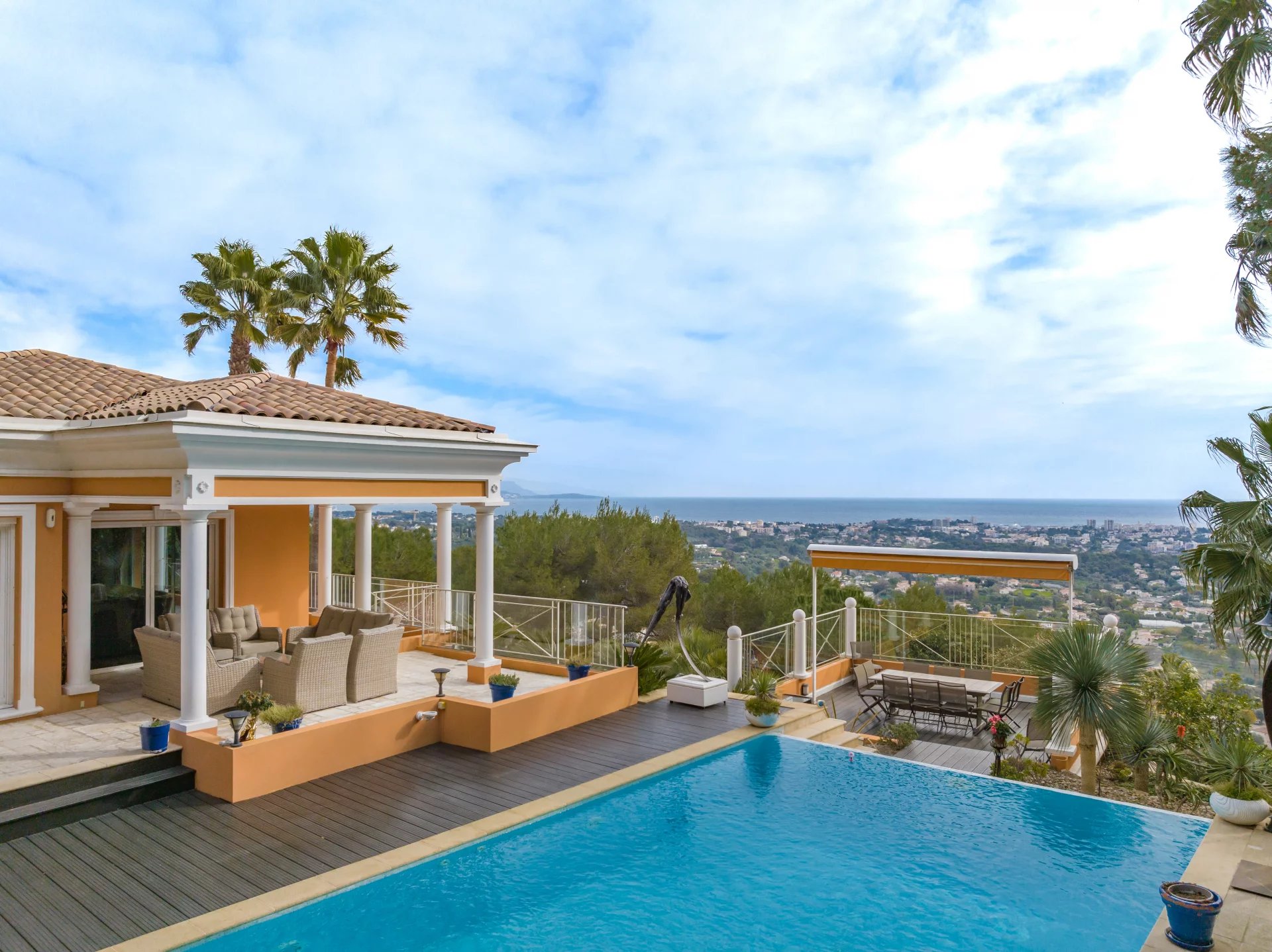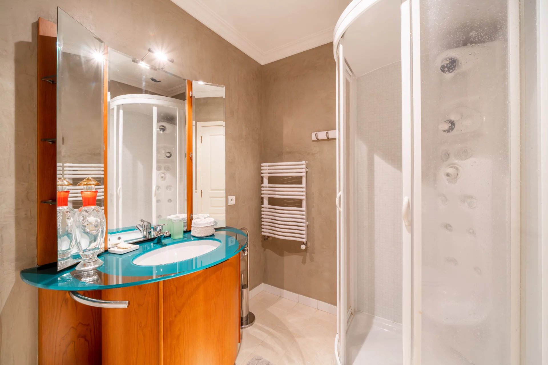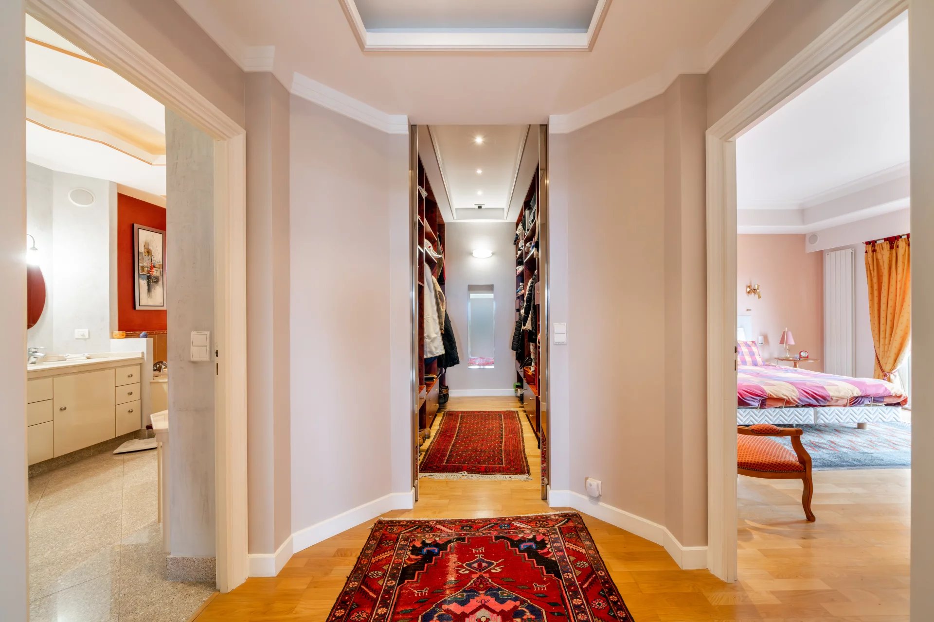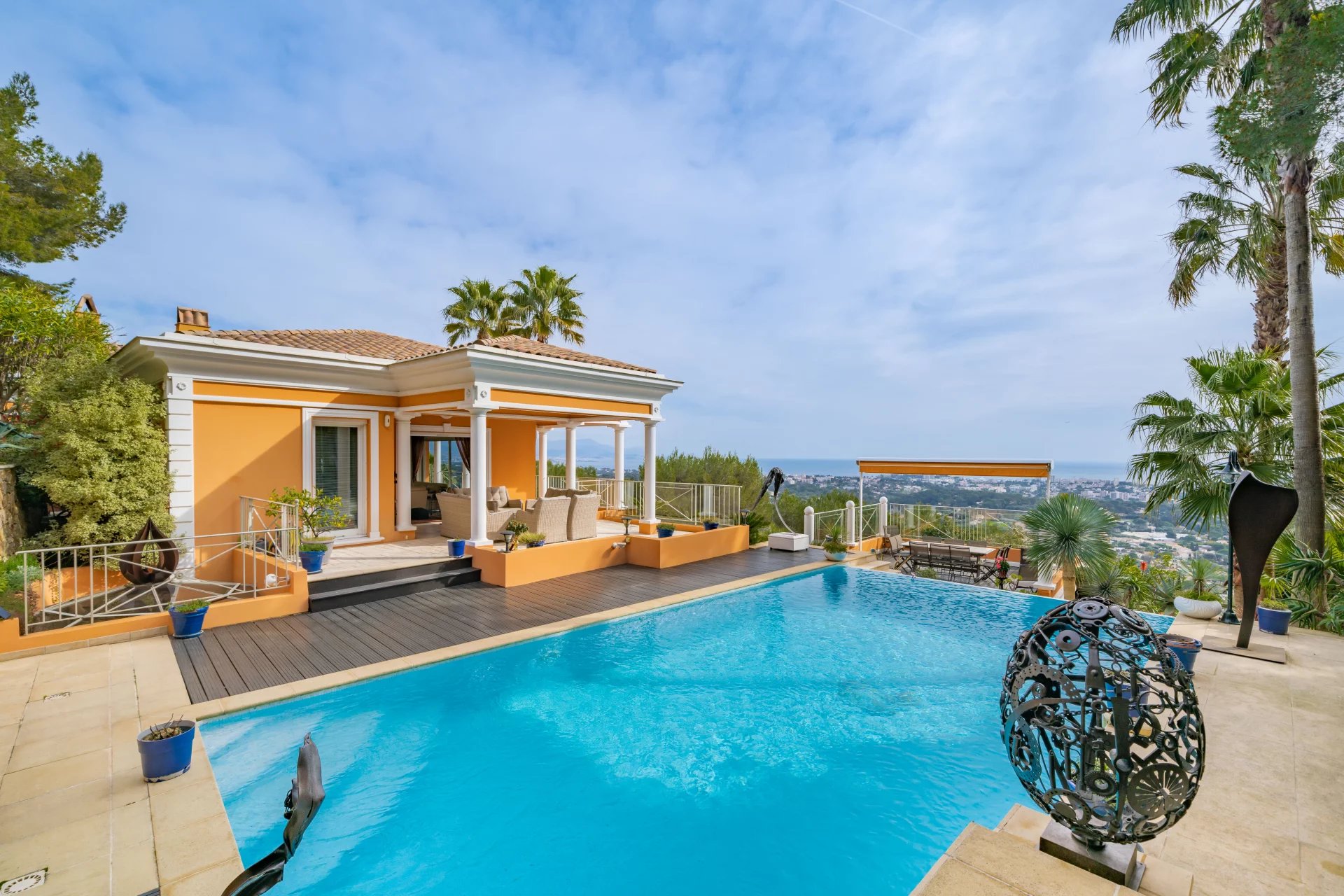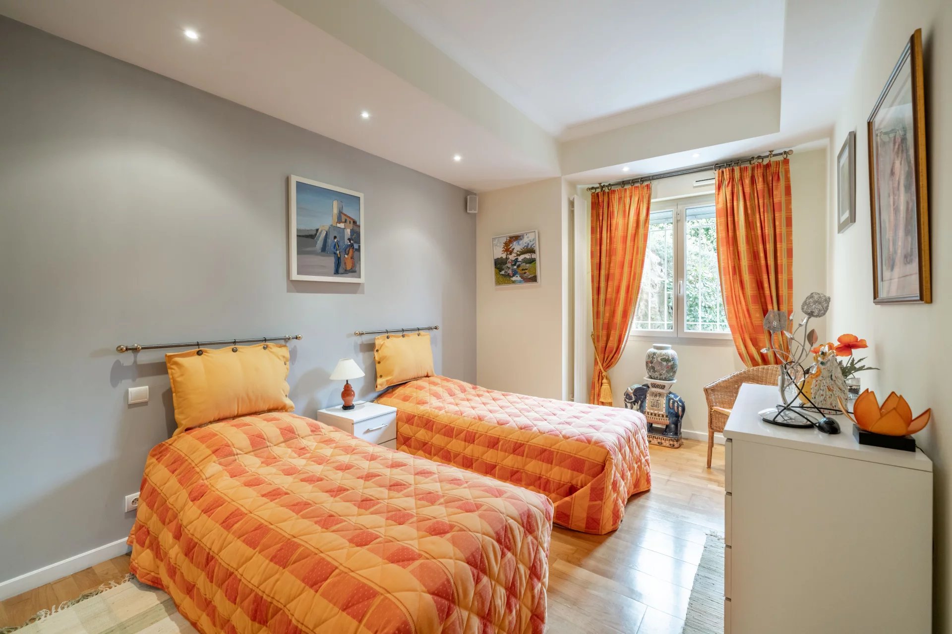 Située à Vallauris, cette élégante villa d’environ 345 m² habitables, complétée par 93 m² de surfaces annexes, s’implante sur un terrain paysager de 2 200 m², offrant une vue panoramique exceptionnelle sur la mer, les îles et les montagnes du Mercantour. La propriété se distingue par ses volumes généreux et sa luminosité, avec une vaste salle de réception, un grand salon / salle à manger, une cuisine indépendante entièrement équipée ainsi qu’un bureau. L’espace nuit comprend quatre chambres, dont une suite parentale avec dressing et salle de bains, complétées par plusieurs salles d’eau. Chaque chambre bénéficie d’une douche balnéo, apportant un confort supplémentaire. Un appartement indépendant de deux pièces vient enrichir l’ensemble, idéal pour accueillir des invités ou du personnel. Prestations • Ascenseur • Piscine à débordement • Pool house entièrement équipé • Climatisation réversible individuelle • Chauffage individuel par chaudière gaz • Production d’eau chaude par chaudière gaz et panneaux solaires • Assainissement par fosse septique • Absence de cheminée ⸻ Informations complémentaires Cette propriété rare conjugue confort, fonctionnalité et cadre de vie d’exception sur la Côte d’Azur. ⸻ Conditions de vente Le bien est vendu occupé, les occupants bénéficiant d’un droit d’usage et d’habitation viager attaché à leur personne, lequel s’éteindra automatiquement à leur décès. L’acquéreur se porte ainsi acquéreur de la nue-propriété et disposera de la pleine jouissance du bien à l’extinction de ce droit, sans indemnité ni formalité complémentaire.