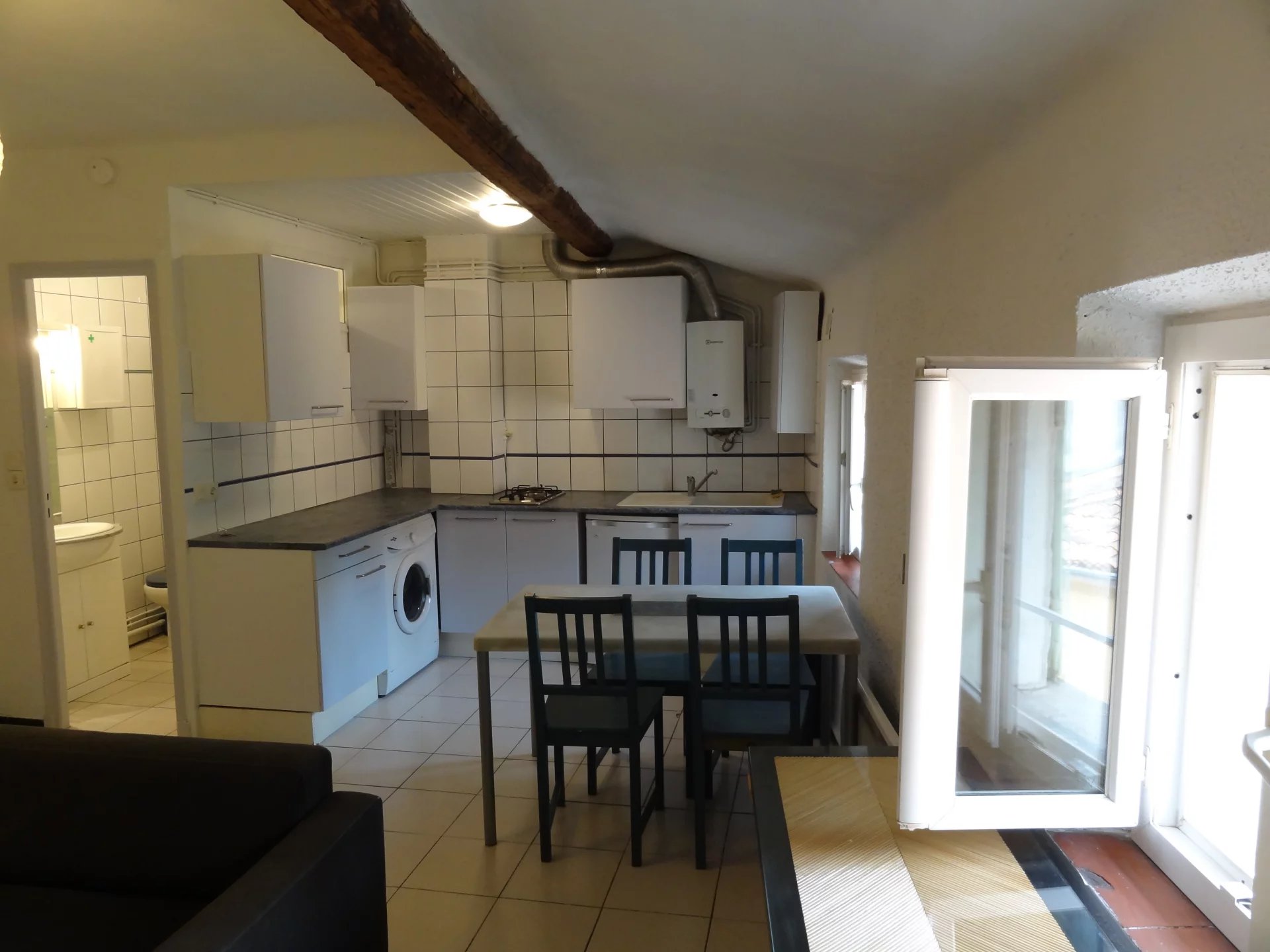 Spécial investisseur - vendu loué. Studio bis dans un petit immeuble de 3 lots dans le centre ville de La Seyne sur mer. Entrée, pièce à vivre avec coin cuisine, chambre en alcôve, salle de bain avec wc. Convention ANAH en cours jusqu'à début 2029. Loyer 319€ + 30€ de charges de copropriété.