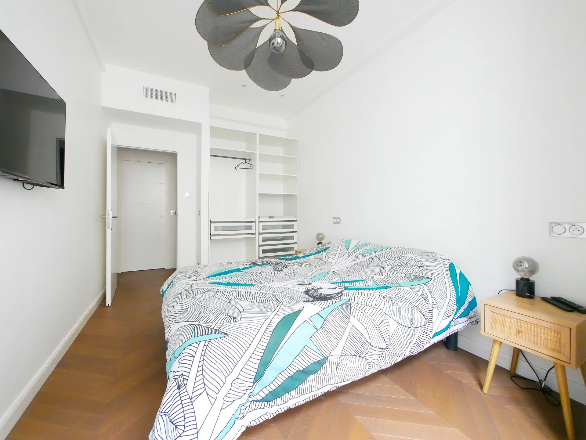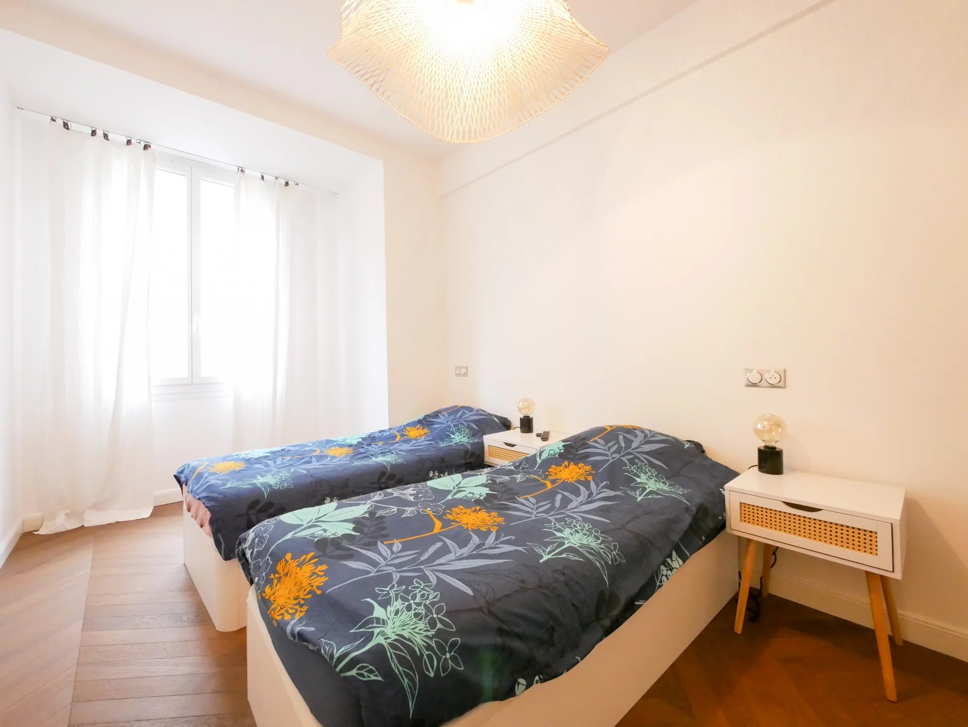 Quartier des Musiciens, découvrez ce superbe appartement 3 pièces de 77 m², situé au 2ᵉ étage au sein d’un bel immeuble ancien au calme, avec ascenseur et façade ravalée. L’appartement lumineux, traversant ouest / est, a fait l’objet d’une rénovation complète de qualité, alliant avec élégance le charme de l’ancien (moulures, parquet massif point de Hongrie, belle hauteur sous plafond) et le confort moderne. Il se compose d’une vaste pièce de vie de 39 m² avec séjour et cuisine ouverte, offrant un espace convivial idéal pour recevoir. La partie nuit, bien séparée côté cour, comprend deux grandes chambres (13,38 m² et 13,71 m²), chacune équipée de son dressing, au calme absolu. Un couloir dessert également un dressing indépendant, une salle d’eau moderne ainsi que des toilettes séparées. Un grenier à l’étage complète ce bien. Prestations et atouts : - secteur recherché, - appartement en parfait état - ascenseur - nombreux rangements - climatisation gainable Immeuble avec gardien très bien entretenu Situation idéale, à proximité immédiate du tramway Alsace-Lorraine, du centre-ville, des commerces et de la mer.