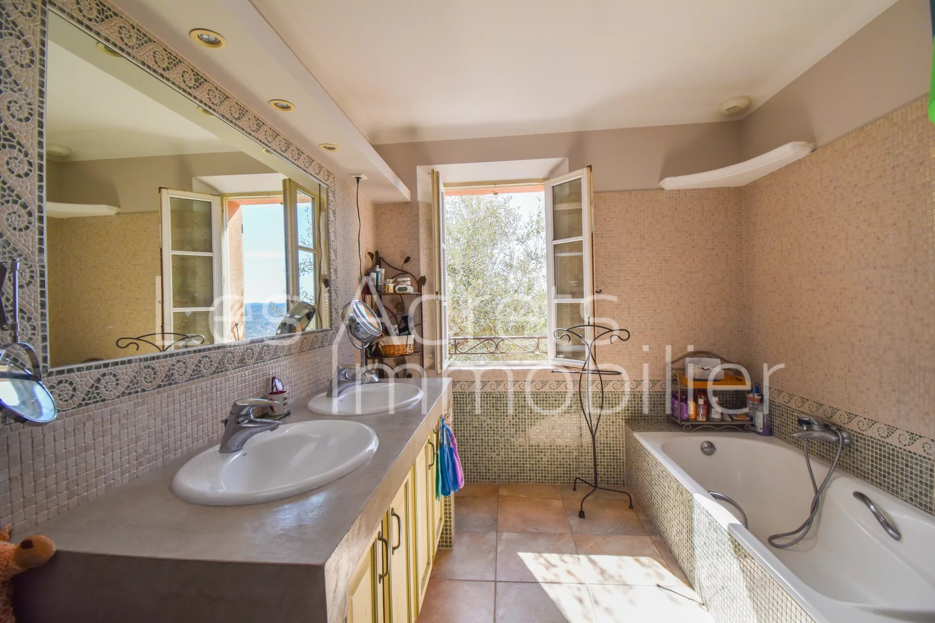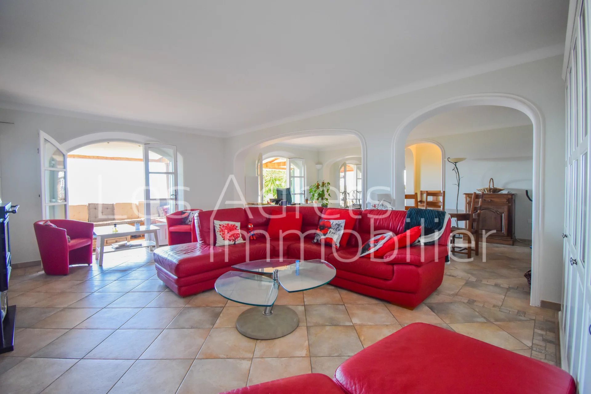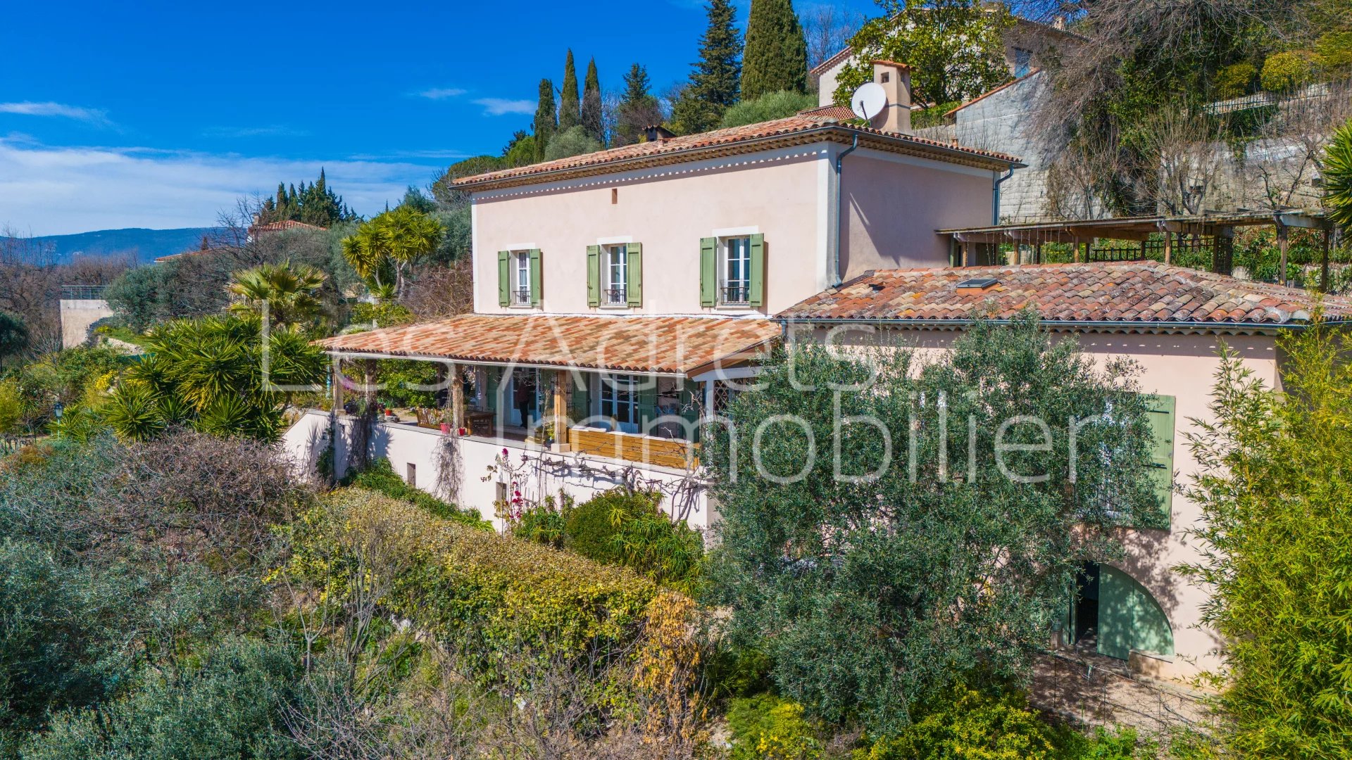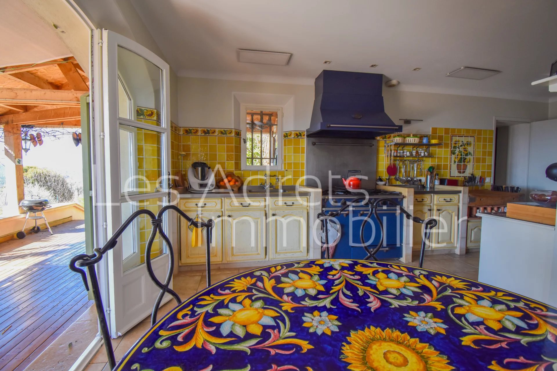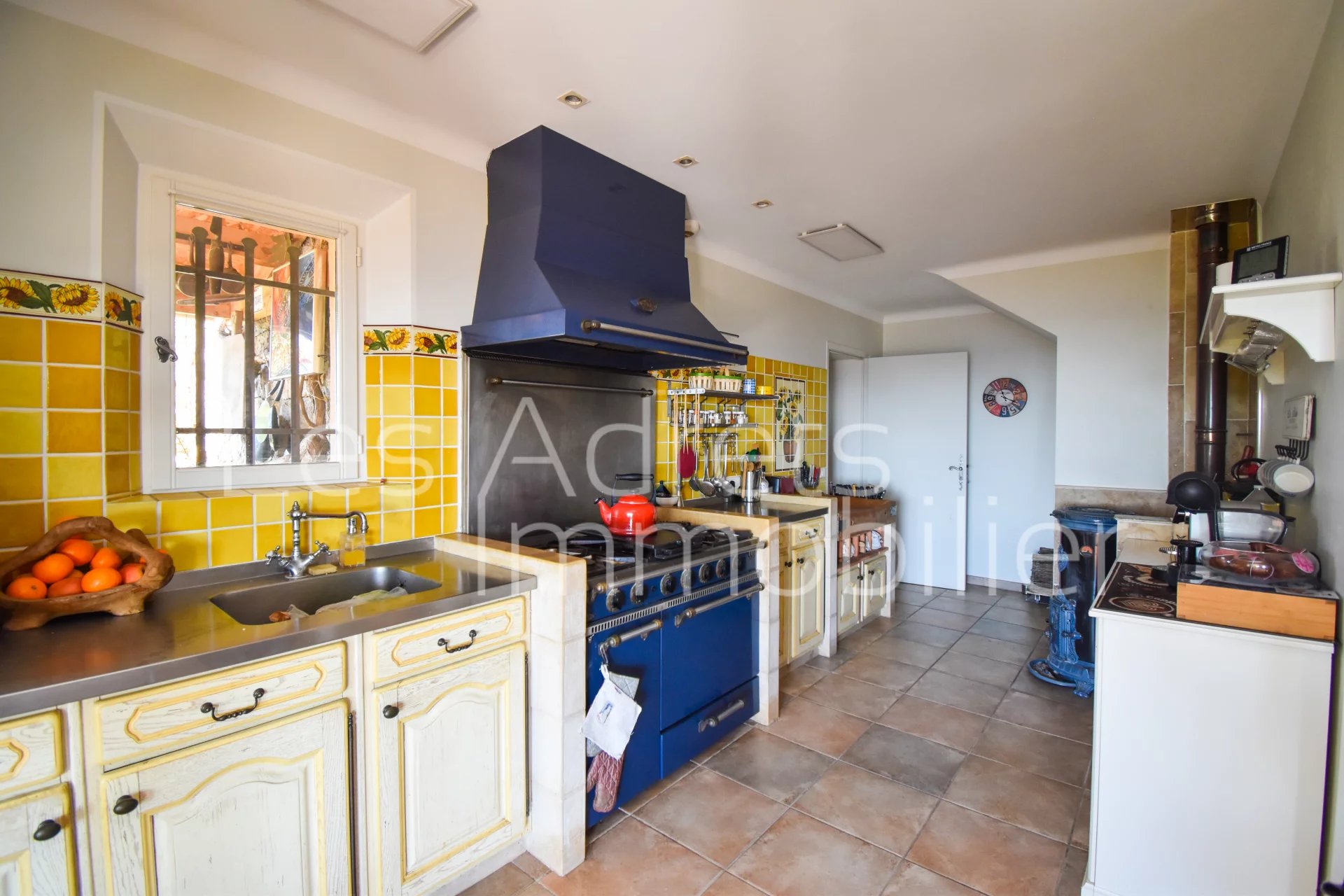 Située dans un environnement privilégié, cette maison d’environ 214 m² se trouve sur un terrain paysager de 2 680 m² en restanques, entièrement clôturé et accessible par une allée gravillonnée.