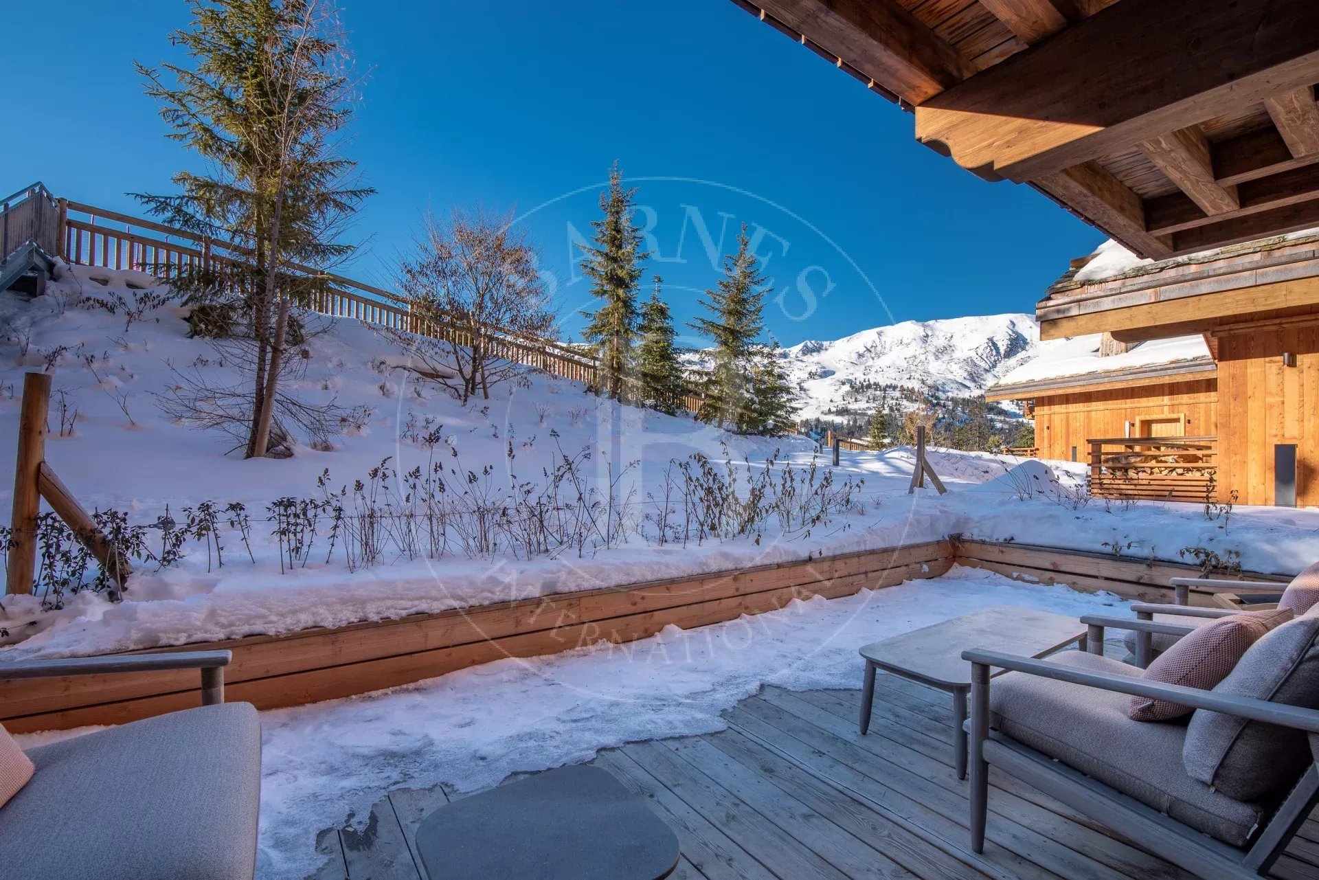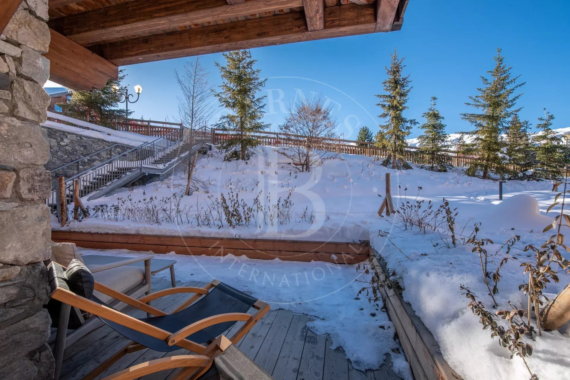 Au rez-de-jardin d'une résidence de grand standing, il offre une jolie vue sur le domaine skiable et les sommets.