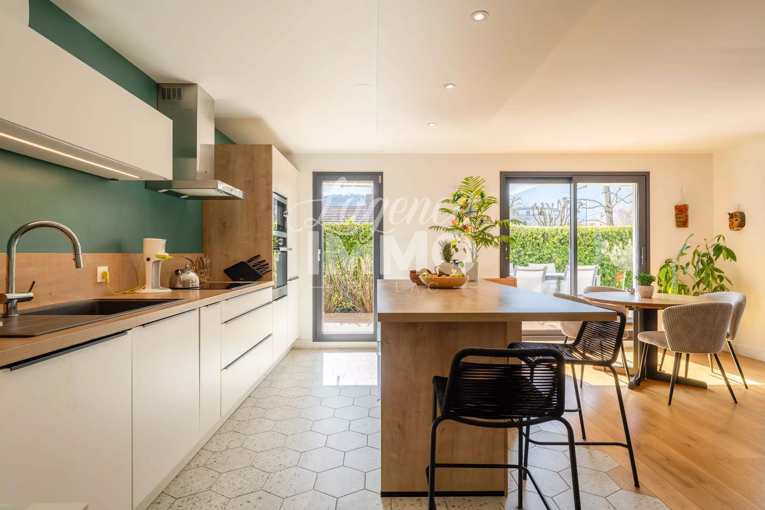 En exclusivité ! T4 CENTRE VILLE ST-JORIOZ + TERRASSE + CAVE + GRAND GARAGE Idéalement situé en plein cœur de Saint-Jorioz, au calme et à proximité immédiate de toutes les commodités, découvrez ce magnifique appartement T4 de 92,49 m² loi Carrez entièrement rénové en 2021 avec des prestations de qualité et beaucoup de goût. Situé en rez-de-jardin d’une petite résidence avec ascenseur édifiée en 1996, cet appartement lumineux offre un cadre de vie confortable et fonctionnel. Il comprend une entrée avec placard, une magnifique pièce de vie de 40.72m² avec cuisine équipée et aménagée ouverte sur le salon/séjour très lumineux avec accès à une terrasse et jardin de 140m² environ exposé sud/ouest. Côté nuit : 3 chambres dont 2 avec dressing, 1 dégagement avec double placard sur mesure, une salle d'eau et un WC séparé. En annexe, un grand garage en sous-sol de 33.87m² et une cave complètent ce bien - Un parking extérieur est réservé aux résidents ainsi qu'un local à vélos. Atouts et prestations : - Menuiseries en alu et pvc remplacées en 2021 et 2025 - Volets électriques - Store banne électrique - Grand garage de 33.87m² avec électricité - Cave - Terrasse refaite en 2024 - Nombreux rangements Le chauffage et l'eau chaude sont compris dans le montant des charges - compteurs individualisés - la chaudière a été remplacée en 2025. Situation idéale : toutes les commodités du centre-ville (écoles, crèche, commerces, médecins…) sont accessibles à quelques pas. Le lac se trouve à seulement 5 minutes en vélo, et la piste cyclable à 300 mètres. Aucun travaux à prévoir ! DPE : C