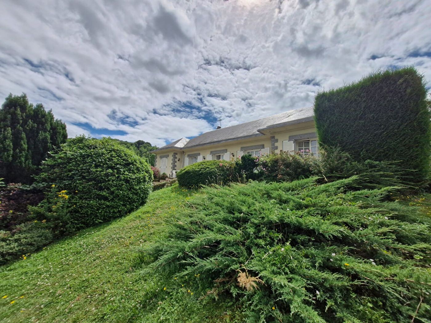 Magnifique pavillon individuel de plain-pied comprenant entrée sur séjour triple de 60 m2 avec insert, cuisine équipée, wc, salle de bains et 3 chambres. Sous-sol total pouvant recevoir 4 voitures. Bel environnement avec une jolie vue !!!!