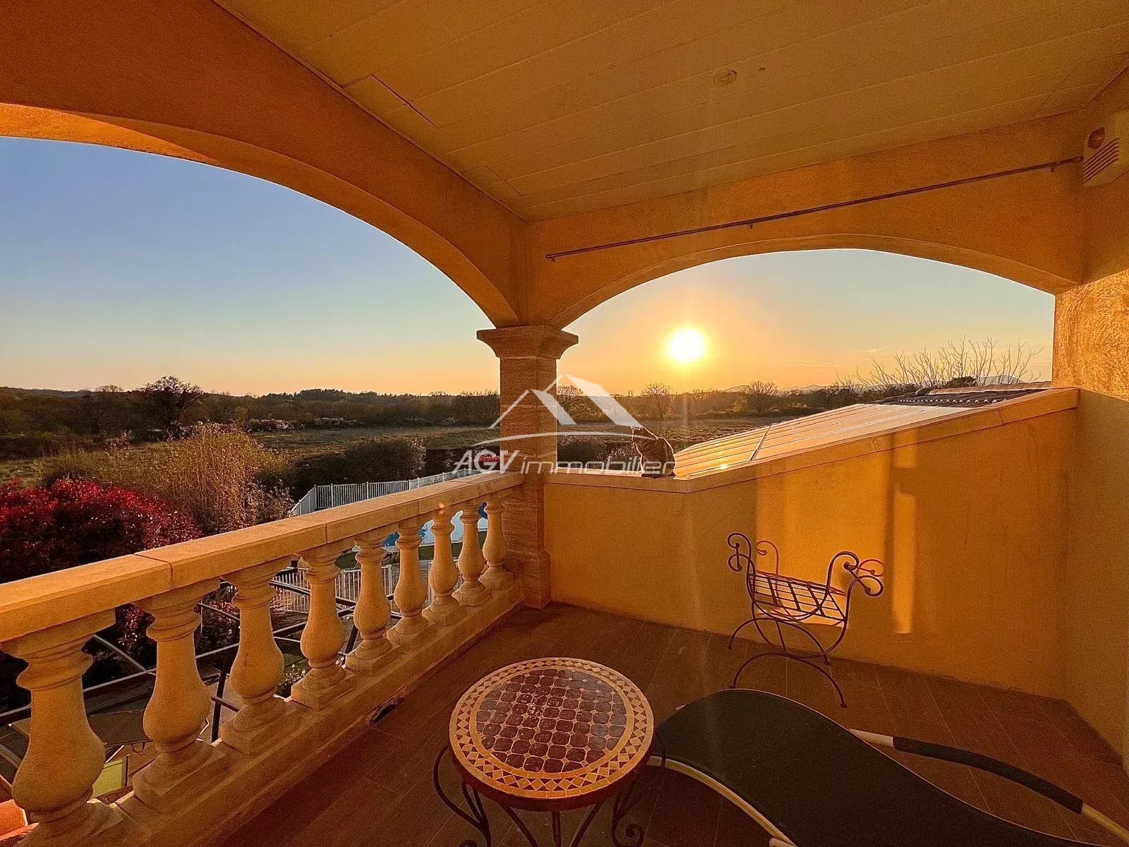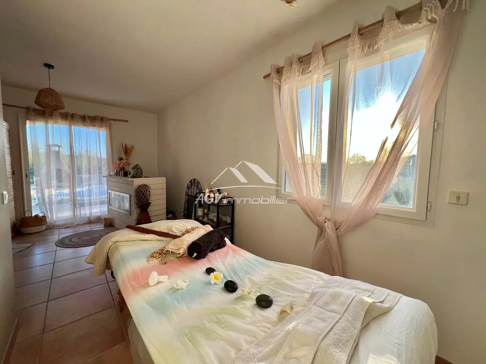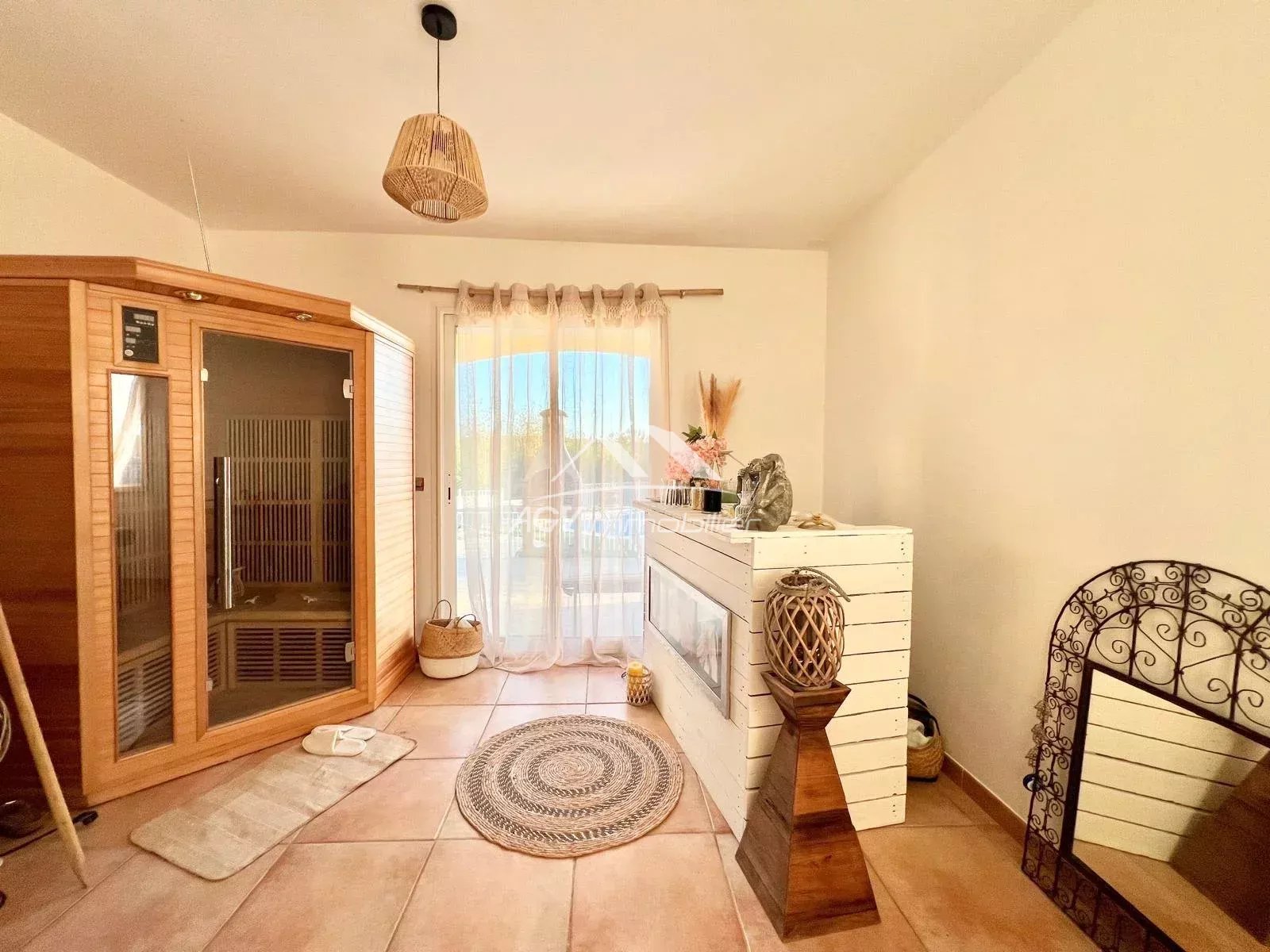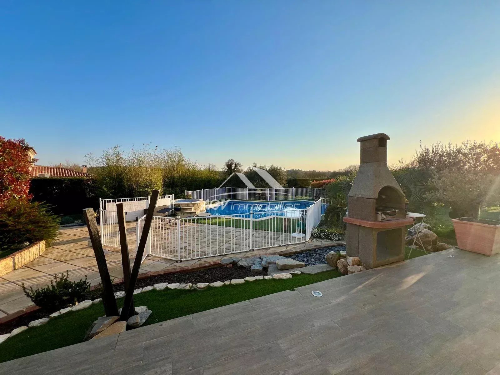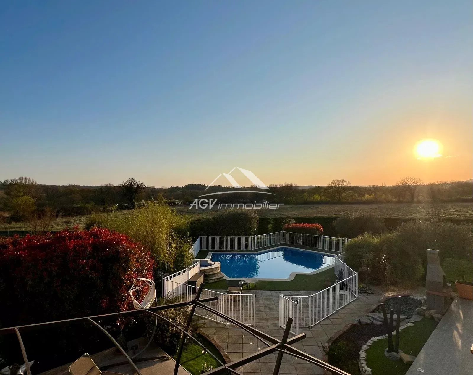 Sur 2000 m² de terrain clos et paysagé, située au calme et sans vis-à-vis, villa de 176 m² habitable surélevée d'un étage composée, au rez-de-chaussée, d'une entrée, d'une pièce de vie, d'une cuisine équipée, de 3 chambres, d'un bureau, d'une salle d'eau et d'un toilette. L'étage, quant à lui, est composé d'un palier qui dessert une salle d'eau avec un WC et deux chambres avec une terrasse privative, face à une vue dégagée sur la campagne. L'extérieur est agrémenté d'une piscine, panneaux solaires, d'un abri voiture, d'un atelier et d'un garage attenant à la maison. Chauffage au sol.