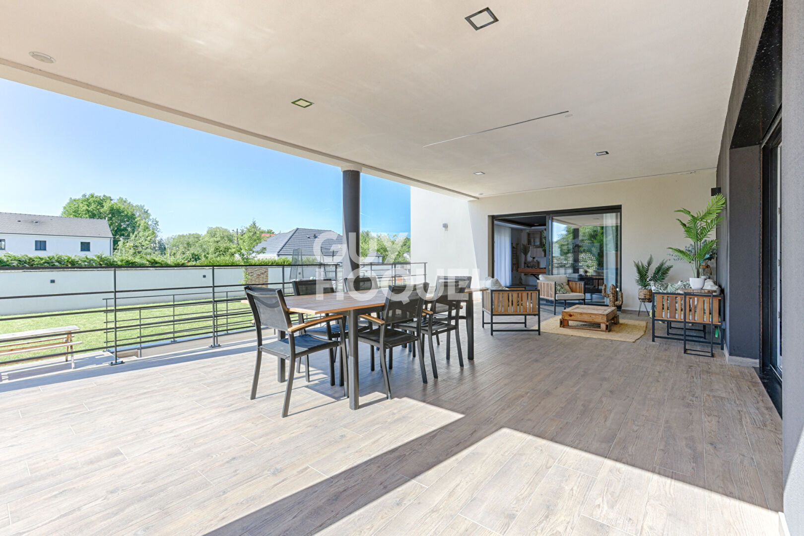 PRESTATIONS HAUT DE GAMME !A vendre, une magnifique maison récente de 7 pièces d'une surface de 200 m², située à 5 minutes de Fontenay Trésigny et de la gare avec la ligne P. Construite en 2020 avec des prestations moderne et de standing, cette maison vous propose au rez-de-chaussée une entrée de 10m² ouvrant sur un espace de vie avec séjour/salle à manger, salon et cuisine de 96m², une suite parentale avec salle d'eau privative et un wc indépendant.Au premier étage, une belle pièce palière desservant 3 vastes chambres, une salle de bain avec douche également et un wc indépendant.Le terrain de 1009 m² est agrémenté d'une sublime terrasse couverte avec jacuzzi et d'un garage double de 42m², avec 6 places de parking et une cave en sous-sol. Aucun travaux à prévoir, prestations de qualité ! Proche des écoles Groupe Scolaire de l'Abbaye et École Maternelle de l'Abbaye, ainsi que des commerces tels que boulangeries, boucherie, pharmacie, bureau de poste et restaurants.