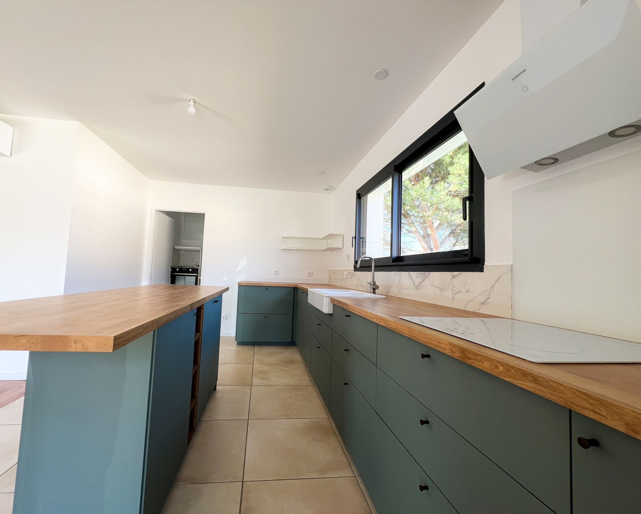 Elle se compose d'une entrée ouvrant sur une grande pièce de vie lumineuse avec cuisine ouverte, offrant un espace convivial pour toute la famille. La cuisine donne également accès à un cellier pratique pour le rangement.