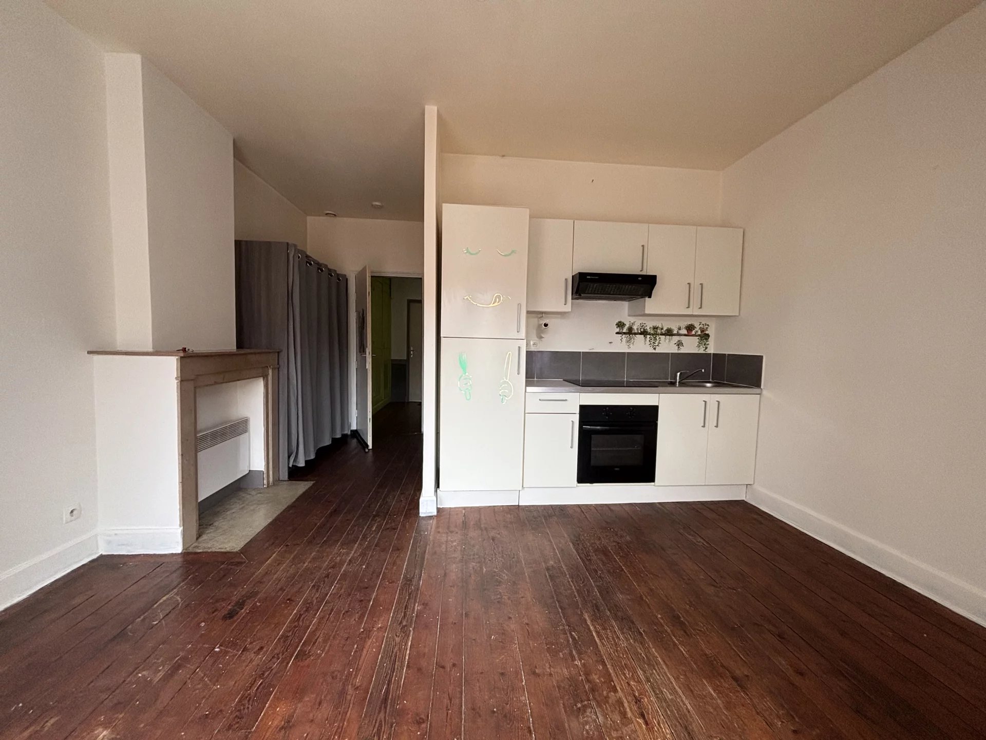 En hyper centre de Cambrai Garantie visale exigée Studio de 23m2 situé au 2nd étage d'un immeuble sans ascenseur. Comprenant entrée, couloir, pièce de vie avec cuisine équipée, salle de bain, wc. Chauffages électriques, compteurs individuels Loyer 400 euros/mois + 30 euros/mois. Caution : 400 euros Frais agence : 212 euros Visites possibles sur dossiers : xO6x71x34x36x4O Vivien Baivier rsac Lille 818095044