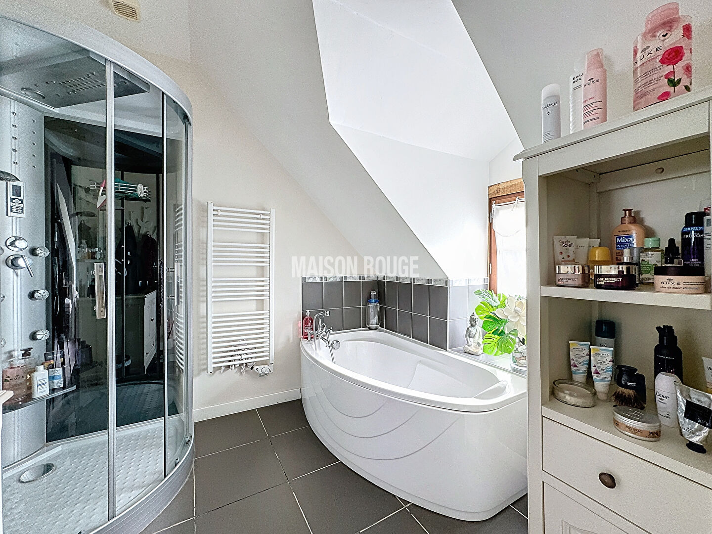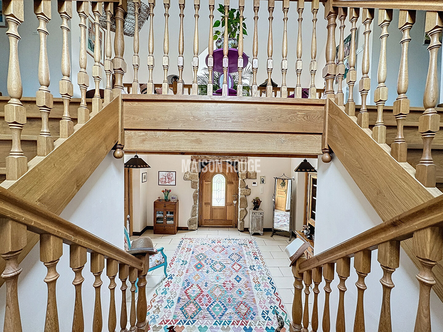 Coup de coeur assuré au coeur d'un écrin de nature ! Nichée dans un environnement préservé, entre deux crêtes boisées au confluent de l'Arguenon et de la Rosette, cette propriété de charme située à Jugon-les-Lacs incarne à la perfection l'authenticité et l'élégance. Maison Rouge vous présente cette superbe longère entièrement rénovée avec des prestations haut de gamme. Dès l'entrée, le ton est donné : un majestueux hall au plafond cathédrale baigné de lumière vous accueille et vous guide vers une cuisine spacieuse, aménagée et équipée avec soin. Le salon, chaleureux et raffiné, s'articule autour d'un poêle à bois, invitant à des moments de détente en toute convivialité. A l'étage, un élégant escalier en bois mène à un espace nuit pensé pour le confort absolu. Vous y découvrirez une somptueuse suite parentale au plafond cathédrale, dotée d'un dressing, d'une salle de bains avec douche et baignoire, ainsi que de toilettes privatives. Deux autres chambres, dont une avec salle d'eau et WC, complètent ce niveau, garantissant intimité et bien-être à chacun. En complément, une ravissante maison d'amis indépendante reprend harmonieusement le style de la propriété principale. Elle offre une cuisine fonctionnelle, un séjour chaleureux avec poêle à bois, une salle de bains et des toilettes séparées. A l'étage, deux chambres accueillent famille et invités dans un cadre confortable. A l'extérieur, tout a été pensé pour profiter pleinement des lieux : un garage neuf pouvant accueillir trois véhicules, une cuisine d'été ouverte avec espace détente, et un magnifique terrain paysager qui sublime l'ensemble. Un bien rare, idéal pour les amoureux de nature et d'authenticité, à découvrir sans tarder. ? Visionnez la vidéo pour une immersion complète dans ce lieu d'exception. Prix FAI : 524 000 euros dont 4.80 % honoraires TTC à la charge de l'acquéreur.