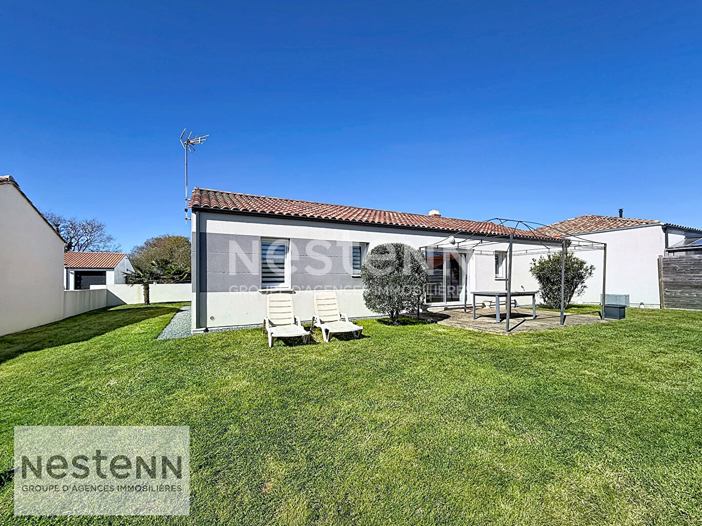 A VENDRE - MAISON RECENTE DE PLAIN PIED Dans un quartier calme à proximité du bourg de la Garnache, en Vendée, vous serez séduit par cette maison de plain-pied parfaitement entretenue. La construction aux normes RT 2012 offre une pièce à vivre très lumineuse de 42 m² avec cuisine totalement aménagée et équipée. Un dégagement dessert une chambre avec dressing et salle d'eau privative, une seconde chambre avec placard, toilettes avec lave-mains, salle d'eau avec douche à l'italienne. Vous profiterez facilement de la terrasse bien exposée, accès depuis une baie à galandage du séjour. Le garage de 26 m² est carrelé avec porte automatisée et accès sur l'arrière de la parcelle. Le terrain de 520 m² est clos et paysagé sans vis à vis et dispose d'un abri de jardin et d'une réserve d'eau. L'état est impeccable et une isolation supplémentaire des combles a été réalisée en 2021. Pour plus de renseignements, contactez l'agence NESTENN Challans BEAUVOIR au 02.51.49.75.04 (5.28 % honoraires TTC à la charge de l'acquéreur.)