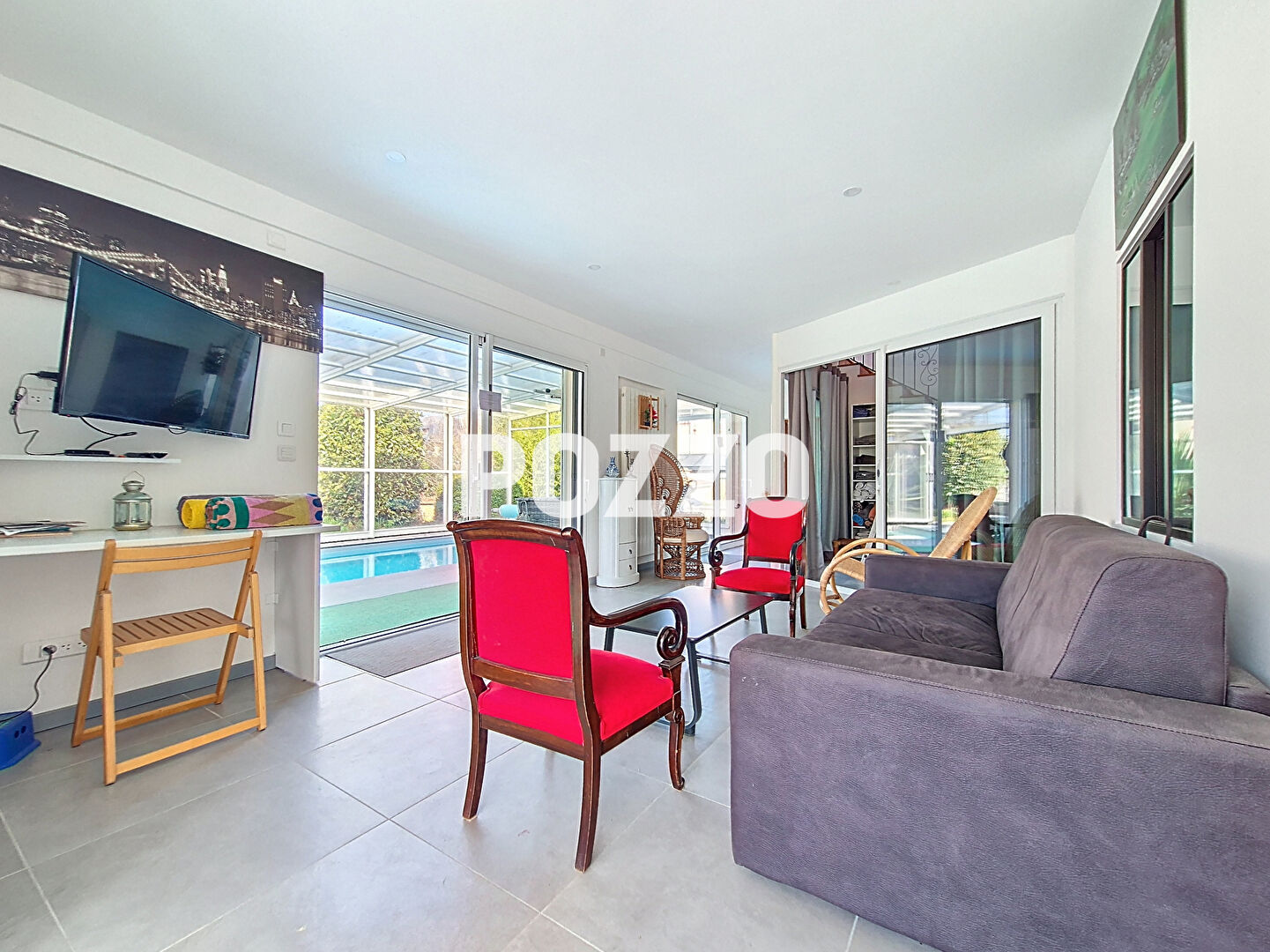 Maison de 7 pièces de 227 m² à vendre à Ouistreham, située sur un terrain de 763 m². La propriété s'étend sur deux niveaux : A l'étage : une entrée dessert une salle à manger avec cheminée, une cuisine américaine aménagée et équipée, ainsi qu'un vaste séjour prolongé par un balcon. Cet étage comprend également une chambre avec balcon privatif, une salle de bains avec W.C., ainsi qu'une seconde chambre avec salle d'eau et W.C. attenants. Au rez-de-jardin : un séjour avec poêle et accès direct à la piscine, une cuisine et une troisième chambre avec salle d'eau et W.C. attenants viennent compléter cet espace. Une pompe à chaleur assure un confort optimal toute l'année, et grâce à son exposition plein sud, la maison bénéficie d'une belle luminosité. Enfin, vous disposerez d'un garage fermé et d'une cave, offrant un maximum de commodités. Pour plus d'informations, contactez l'agence POZZO Immobilier à Courseulles-sur-Mer.
