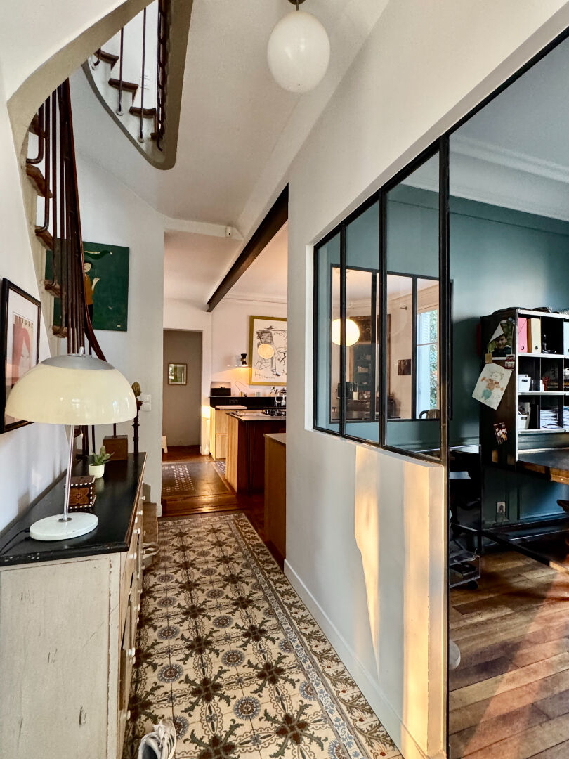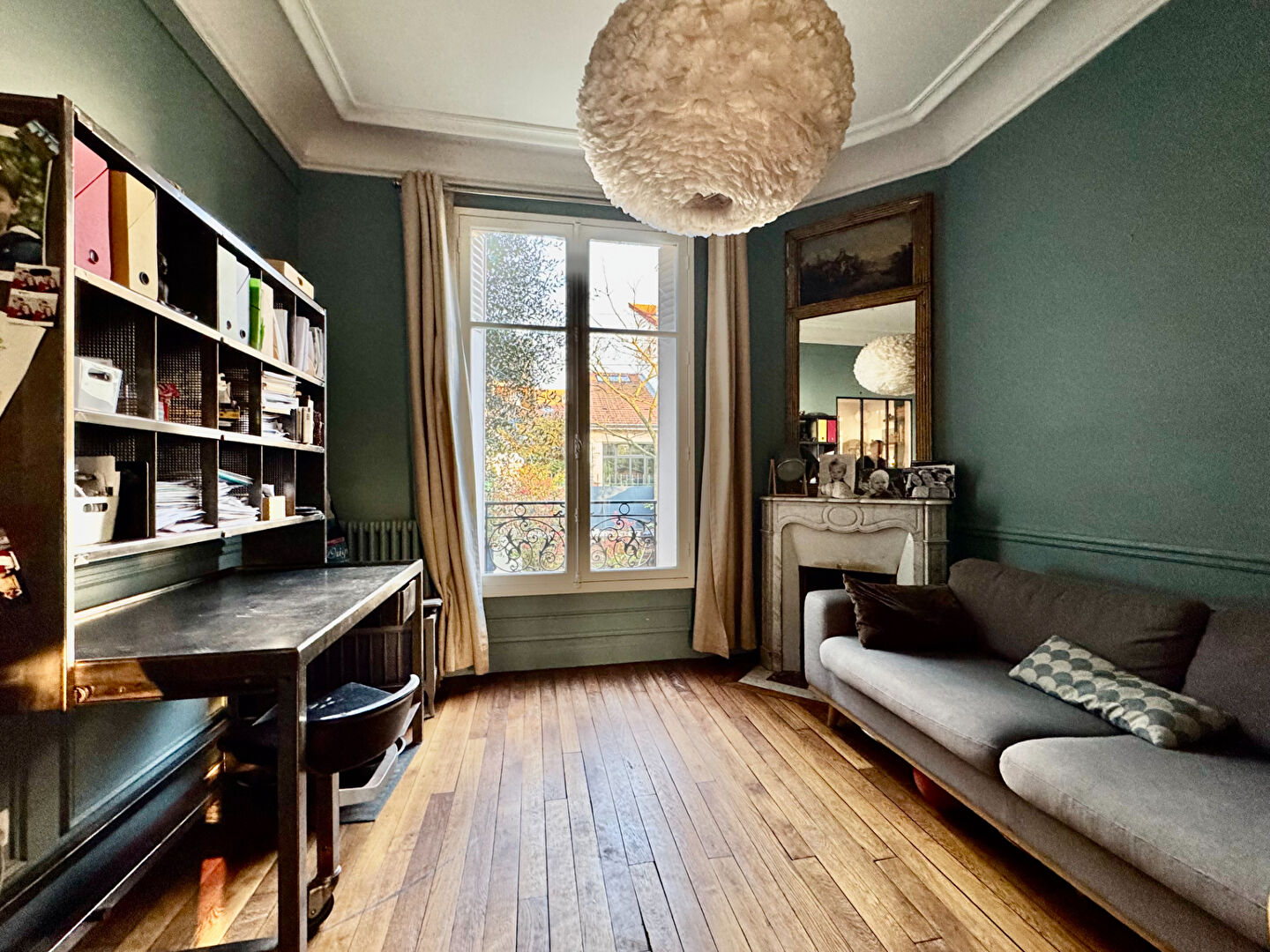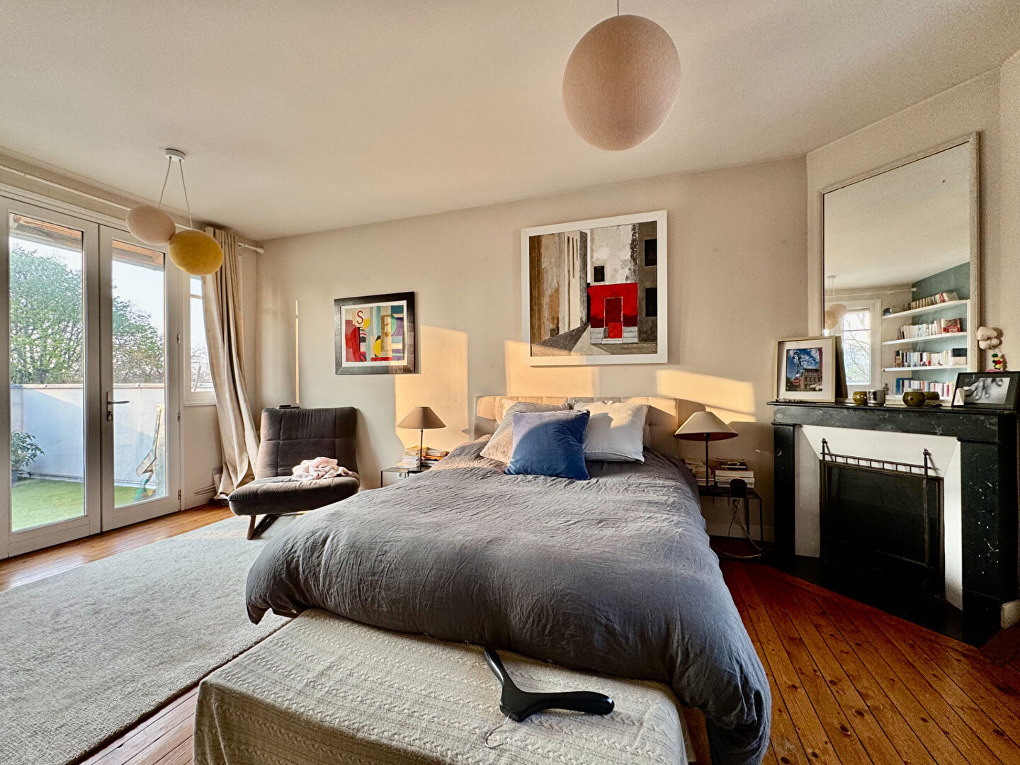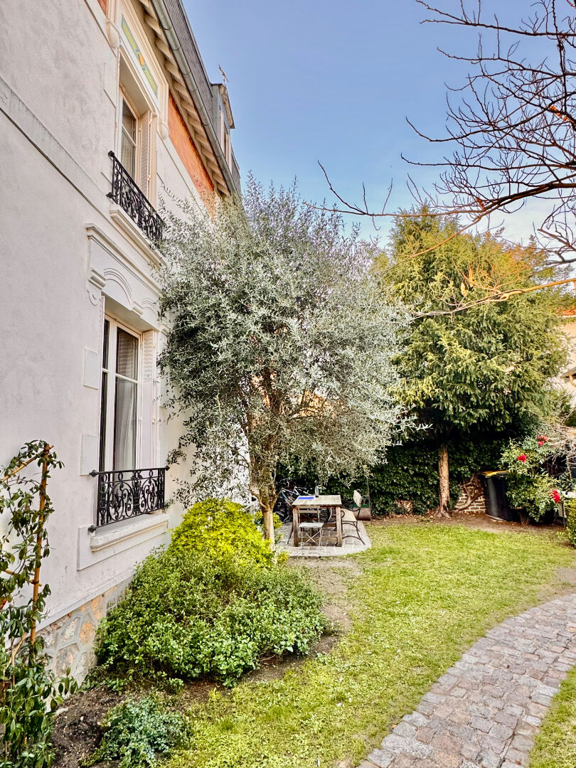 BOIS-COLOMBES mairie Belle maison ancienne de caractère, agrandie en 2016, offrant un cadre de vie exceptionnel au coeur d'une voie pavillonnaire calme et verdoyante. Alliant le charme de l'ancien à des prestations contemporaines, elle vous séduira par ses matériaux chaleureux et sa luminosité omniprésente. Le rez-de-chaussée comprend: une entrée avec rangements, une salle TV, une spacieuse cuisine équipée avec coin repas, un salon de 40 m² avec cheminée entièrement ouvert sur le jardin grâce à de larges baies vitrées, sans vis à vis. A l'étage, 4 grandes chambres, une salle d'eau, une salle de bains et des WC séparés. Le second étage est aménagé en une suite parentale avec une grande chambre, dressing, salle de bains et WC, une terrasse de 40 m² avec vue sur jardin, sous-sol total. Jardin sans vis à vis avec une dépendance composée d'une pièce de vie avec coin cuisine et une salle d'eau avec WC, idéale pour recevoir . (3.50 % honoraires TTC à la charge de l'acquéreur.)
