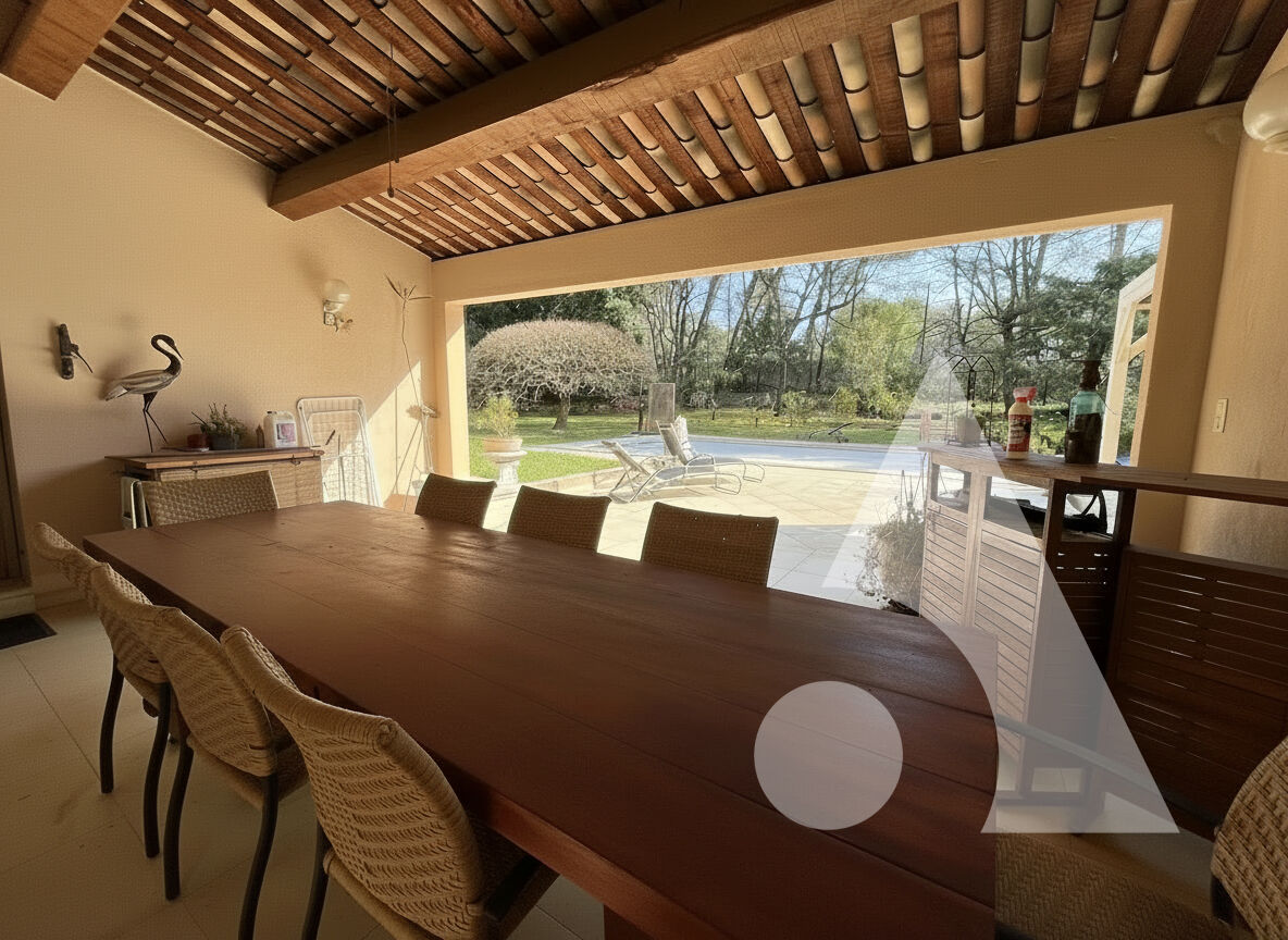 Superbe propriété de 210 m² nichée au coeur d'un environnement exceptionnel offrant calme absolu intimité totale et qualité de vie rare Dès les premiers instants le charme opère avec un vaste séjour baigné de lumière sublimé par une magnifique cheminée véritable coeur de la maison pensé pour des moments chaleureux et conviviaux La cuisine fonctionnelle avec accès direct au garage double de 39 m² complète parfaitement cet espace de vie confortable et pratique au quotidien La maison propose une vraie vie de plain-pied avec une élégante suite parentale et son dressing deux chambres supplémentaires une salle d'eau ainsi qu'un WC indépendant A l'étage l'espace se prolonge avec deux belles chambres une salle de bain un débarras et un espace bureau idéal pour le télétravail ou un coin détente Les prestations sont au rendez-vous avec climatisation réversible dans toutes les chambres double vitrage PVC avec moustiquaires panneaux solaires interphone et portail électrique pour un confort optimal en toute saison A l'extérieur le coup de coeur est immédiat avec un terrain de 12 207 m² offrant un cadre naturel privilégié dont 6 000 m² clôturés et éclairés pour une parfaite tranquillité deux terrasses couvertes dont une équipée d'un conduit idéale pour installer un barbecue et une seconde abritant confortablement le salon de jardin La propriété se distingue par sa superbe piscine de 9,5 x 4,5 m chauffée par pompe à chaleur et sécurisée par un rideau roulant électrique ainsi qu'un terrain de boule idéale pour profiter pleinement des beaux jours Un système d'arrosage automatique alimenté par forage vient parfaire cet extérieur pensé pour allier confort et sérénité Un bien rare aux prestations complètes qui séduira les amoureux d'espace de nature et de tranquillité à la recherche d'un véritable havre de paix Pour toute demande de visite ou information, Contactez Cheyenne Duran au 07 45 10 74 22 / cduran@sixiemeavenue.com ou Pierre Mas au 07 85 81 93 76 / pmas@sixiemeavenue.com . Cheyenne DURAN (EI) Agent Commercial - Numéro RSAC : 988 263471 - DRAGUIGNAN.