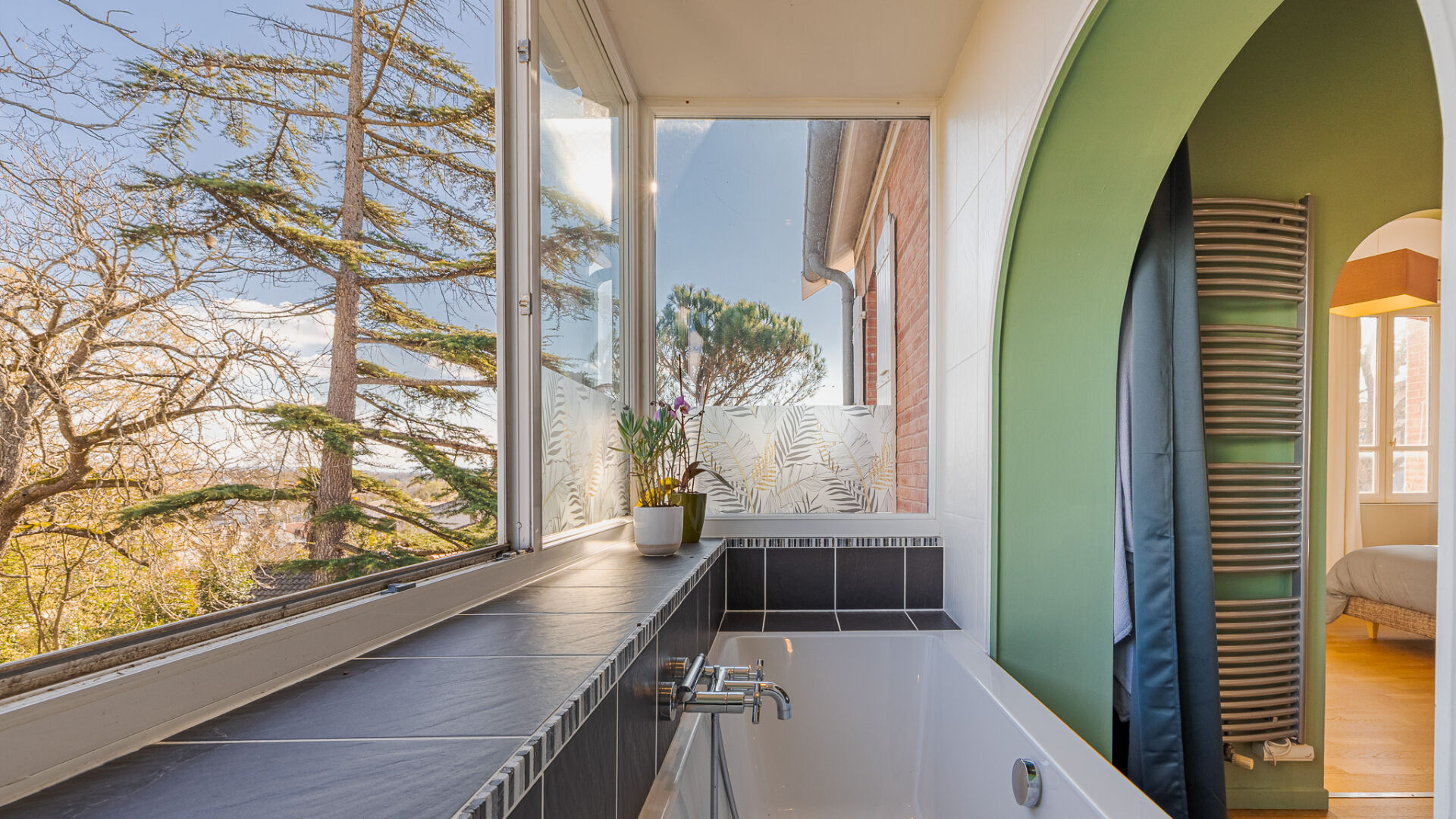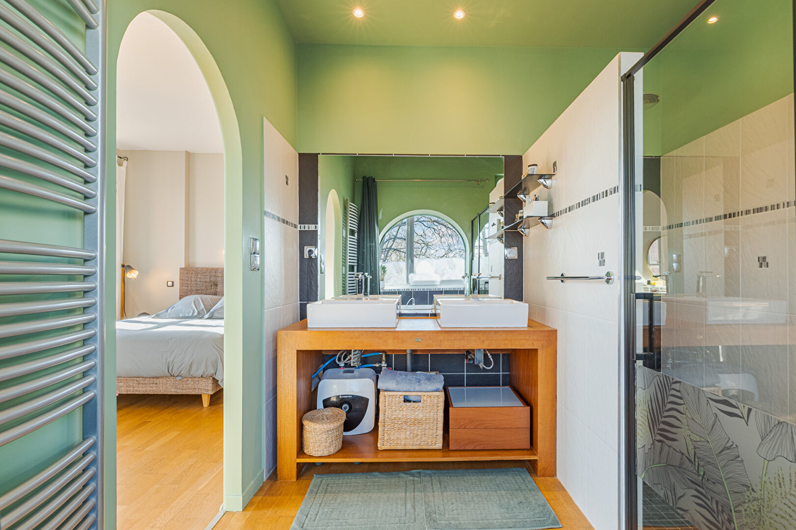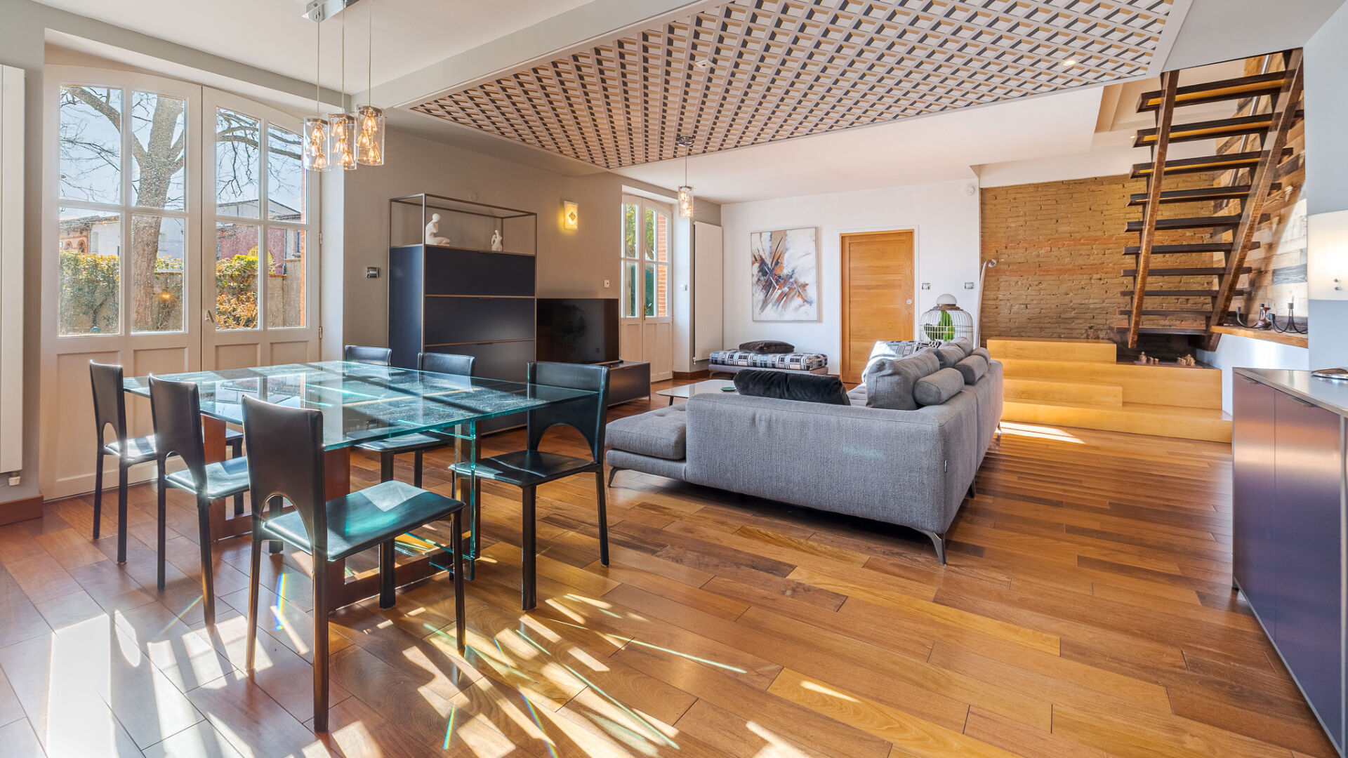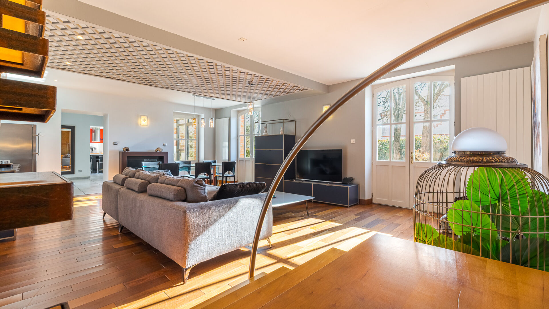 Exclusivité et visite virtuelle immersive 3D disponible sur demande ! La Villa "Bois Fleury", demeure historique de Villeneuve-Tolosane, bâtie sur une parcelle de 1023 m² parfaitement aménagée et développant 190 m² , vous propose au rez-de-chaussée : un sas véranda de 7 m², une belle entrée avec dressing, une grande cuisine de 30 m² aménagée et équipée d'une plancha intérieure Teppanyaki, un salon/salle-à-manger de 46 m² , un WC et un cellier. A l'étage vous trouverez : deux belles chambres de 13 et 15 m² ayant une salle d'eau commune, des WC indépendants, un bureau de 15 m² donnant sur un espace sport en véranda de presque 7 m² et en enfilade une belle suite parentale de 22,5 m² avec sa salle de bains avec WC de 6,5 m². L'étage dispose d'une belle vue sur les Pyrénées. Le jardin est agréablement arboré, vous disposez d'une terrasse et d'un garage de 34 m² indépendant et d'un magnifique espace aménagé pour garer les voitures. La villa a été entièrement rénovée avec des matériaux de qualité par des artisans locaux, chauffe-eau thermodynamique, électricité refaite, isolation des combles et du plafond de l'étage, menuiseries bois double vitrages, combles aménageables si vous le souhaitez . (4.00 % honoraires TTC à la charge de l'acquéreur.) Anne BOUGNOTTEAU (EI) Agent Commercial - Numéro RSAC : 834 410 847 - TOULOUSE.