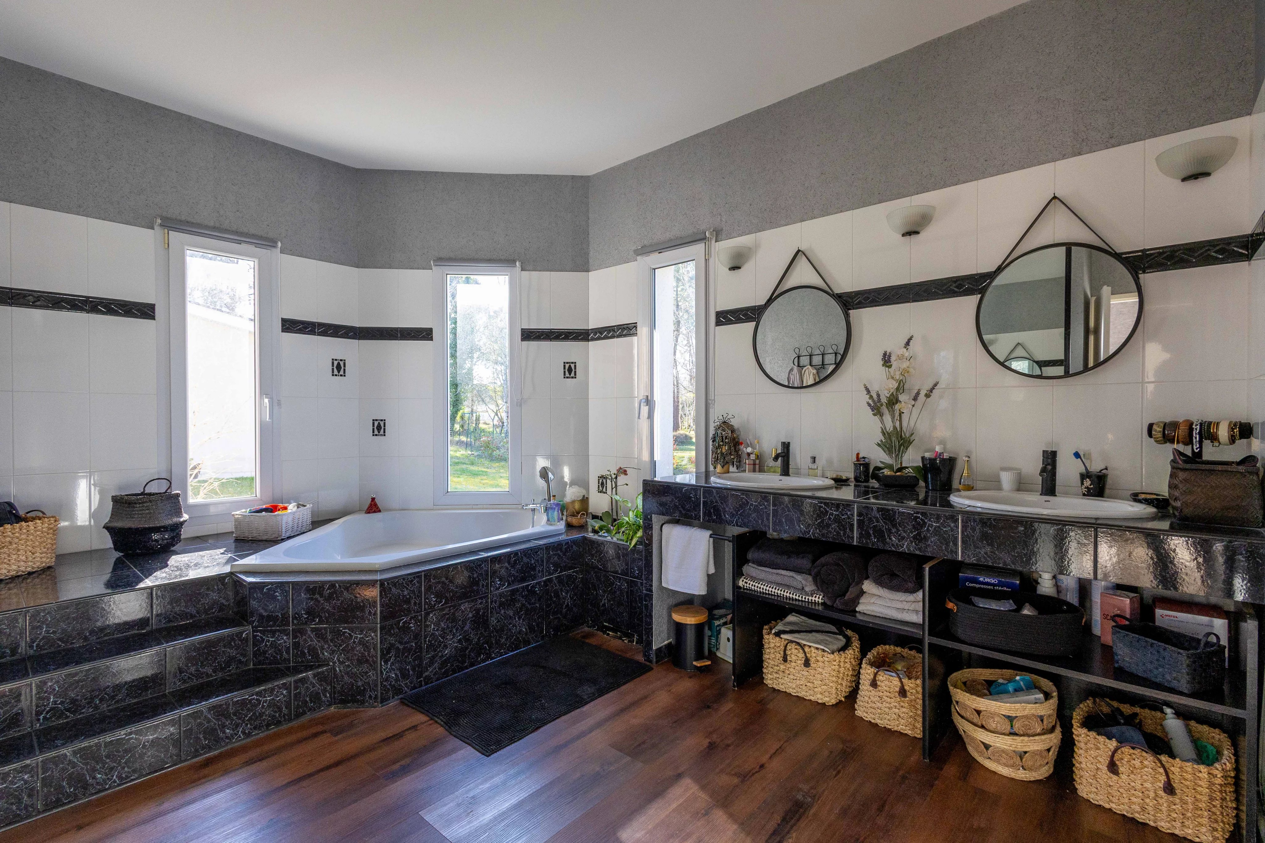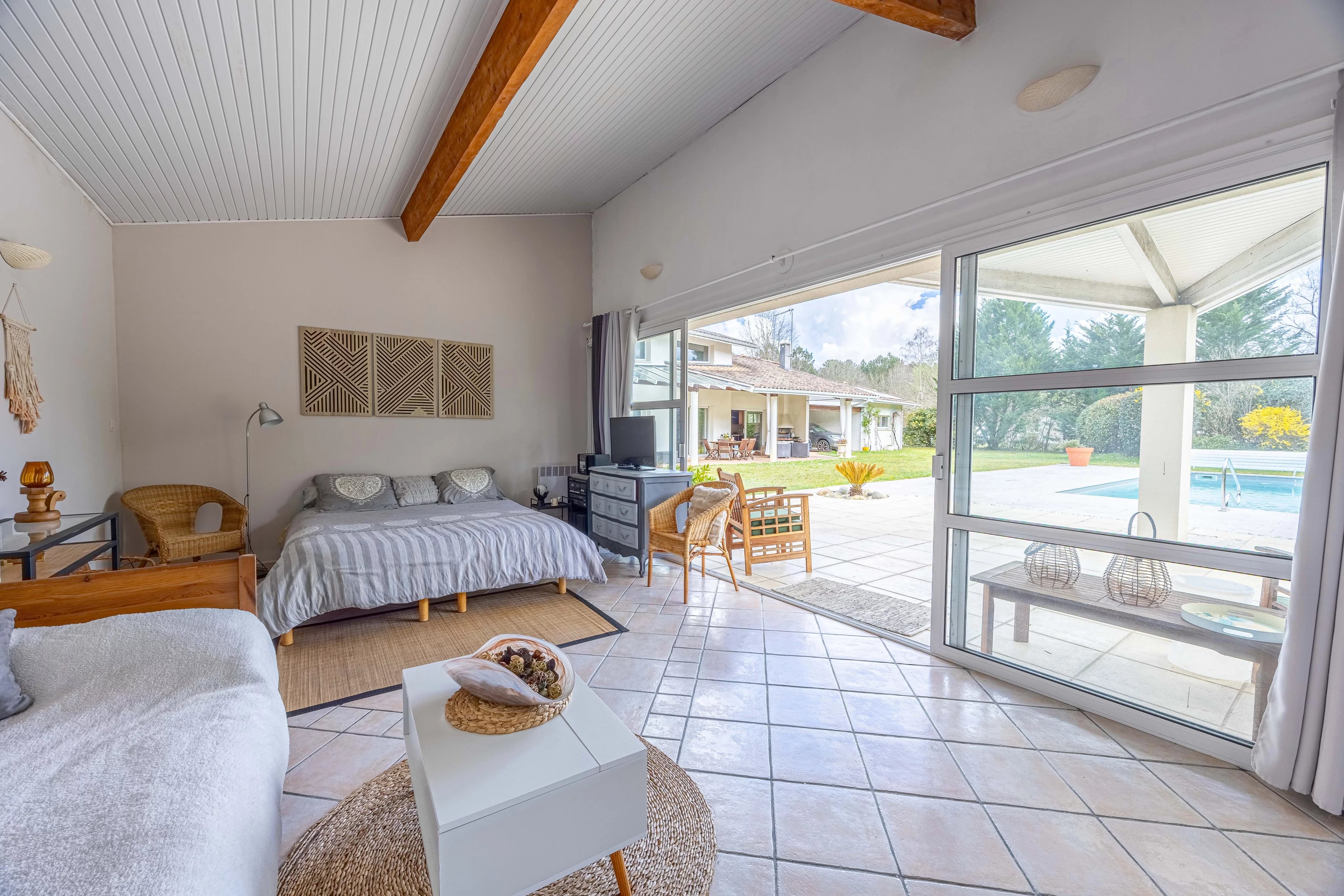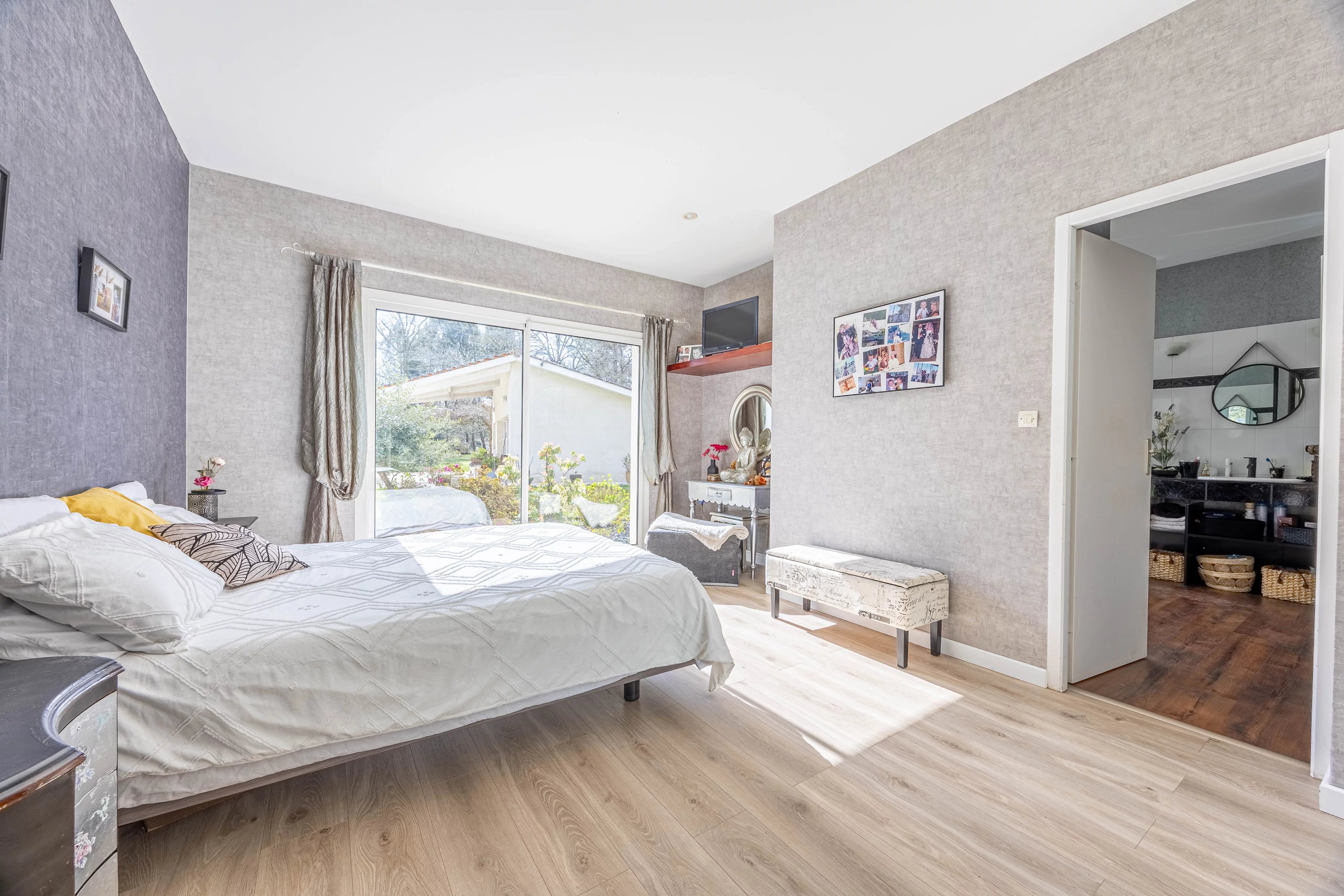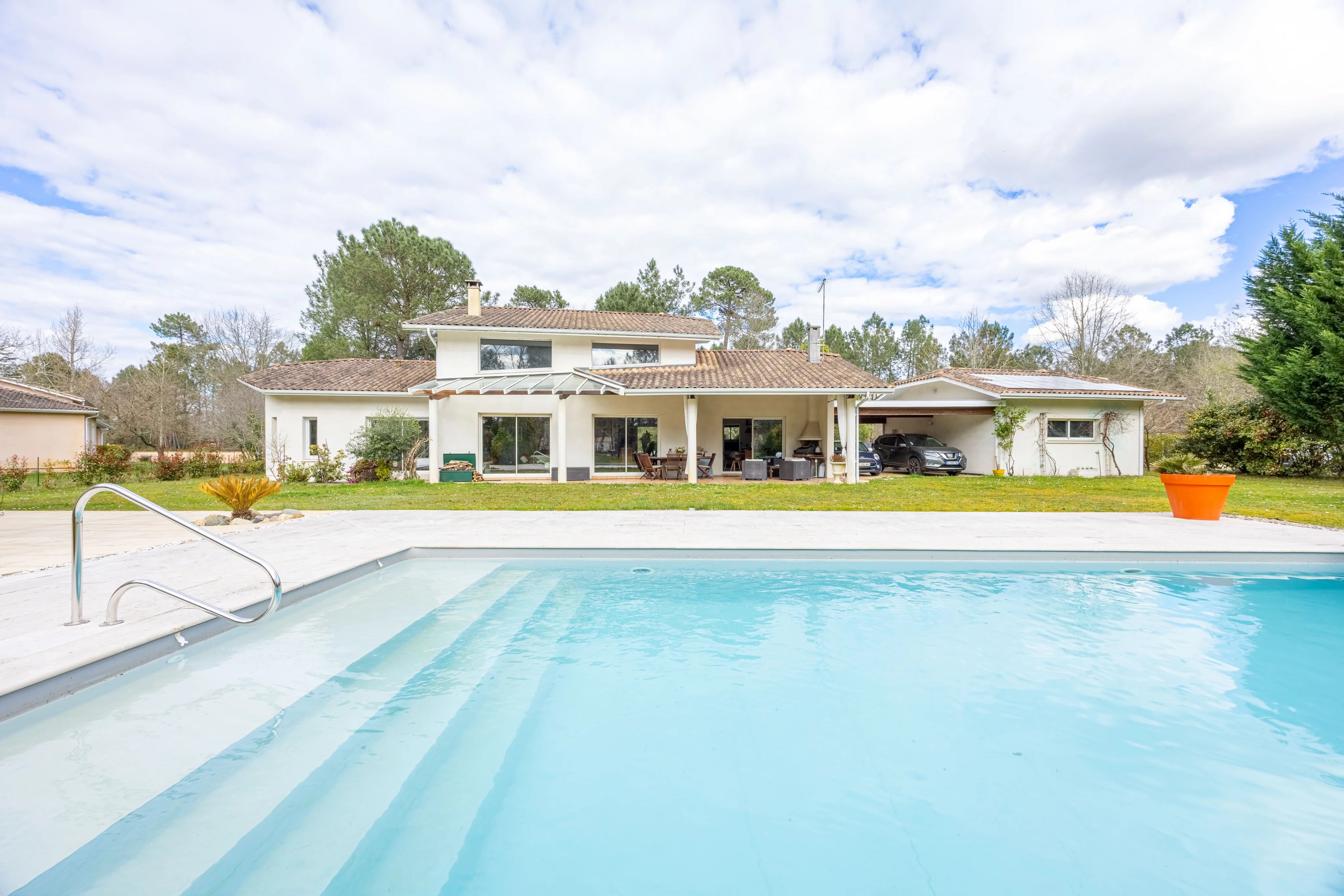 Située dans un environnement calme et privilégié à Cestas, à proximité de Bordeaux, découvrez cette villa d’architecte aux volumes exceptionnels, implantée sur une magnifique parcelle arborée de plus de 5 000 m². Une propriété rare offrant espace, confort et prestations de qualité. La villa Cette villa d’exception d’environ 240m² habitables se distingue par sa superbe pièce de vie d’environ 80 m² hors cuisine, baignée de lumière et idéale pour la vie de famille et la réception. Elle est équipée d’un système d’aspiration et de volets roulants centralisés, apportant un confort supplémentaire au quotidien. Rez-de-chaussée • Entrée • Grand salon / séjour • Cuisine indépendante • 2 chambres avec salle de bains et salle d’eau privative • WC • Cellier Étage • Mezzanine avec bureau et espace billard (transformable facilement en grande chambre supplémentaire. Voir devis en agence) • Chambre en duplex avec salle d’eau privative • WC • Accès terrasse Confort et équipements • Panneaux photovoltaïques • Aspiration et volets centralisés • Maison lumineuse aux beaux volumes Extérieurs et dépendances La propriété offre un cadre de vie privilégié : • Piscine chauffée • Grand jardin arboré avec boulodrome et deux abris de jardin • Studio indépendant d’environ 35m² (location, famille, profession libérale) • Double garage • Abri voiture • Bassin paysagé • Arrosage intégré sur puit foré Le tout sur un terrain exceptionnel d’environ 5 001 m². Localisation Cestas – secteur recherché Accès rapide Bordeaux – écoles et commodités à proximité. Les PLUS - Maison d’architecte - Pièce de vie 80 m² - Terrain 5000 m² - Piscine chauffée - Studio indépendant - Double garage - Panneaux Photovoltaïques - 3 belles suites lumineuses avec accès direct sur l’extérieur
