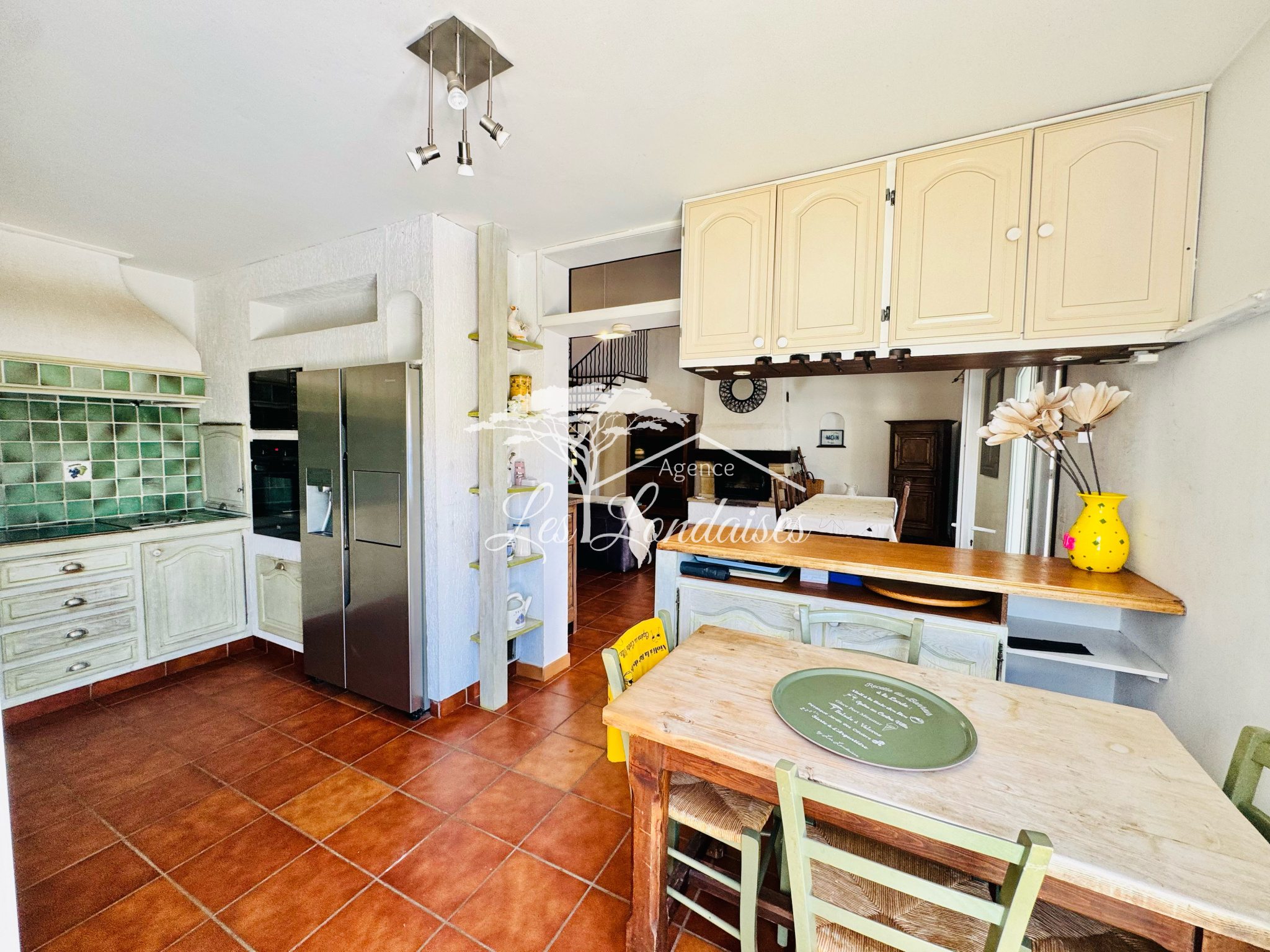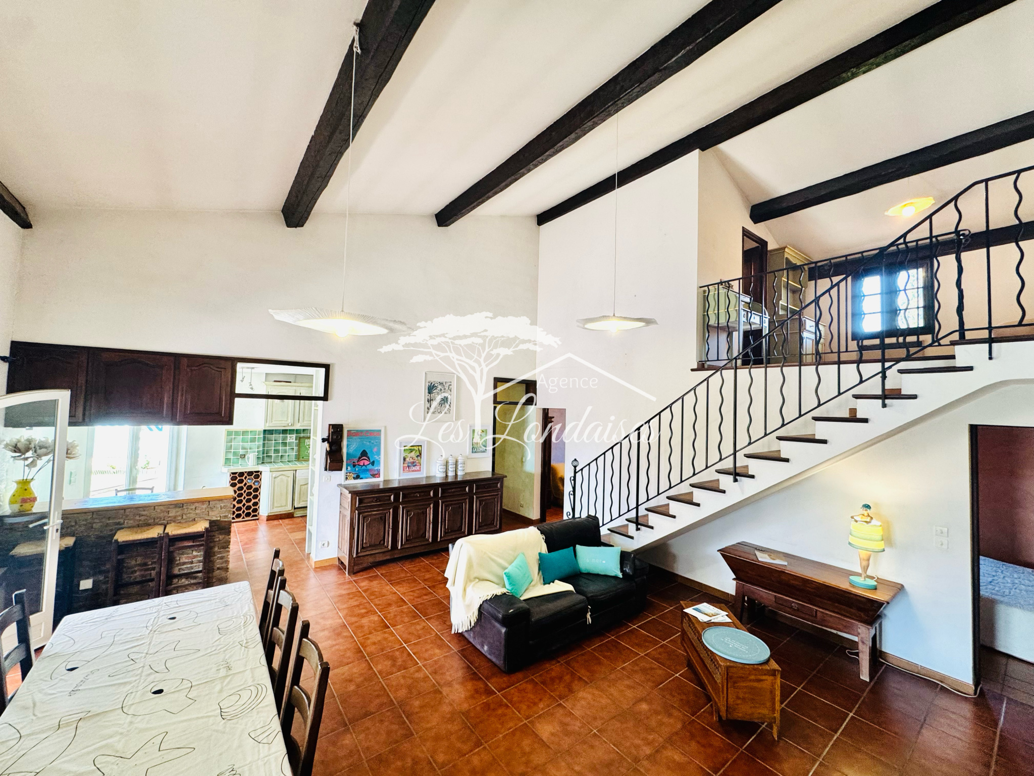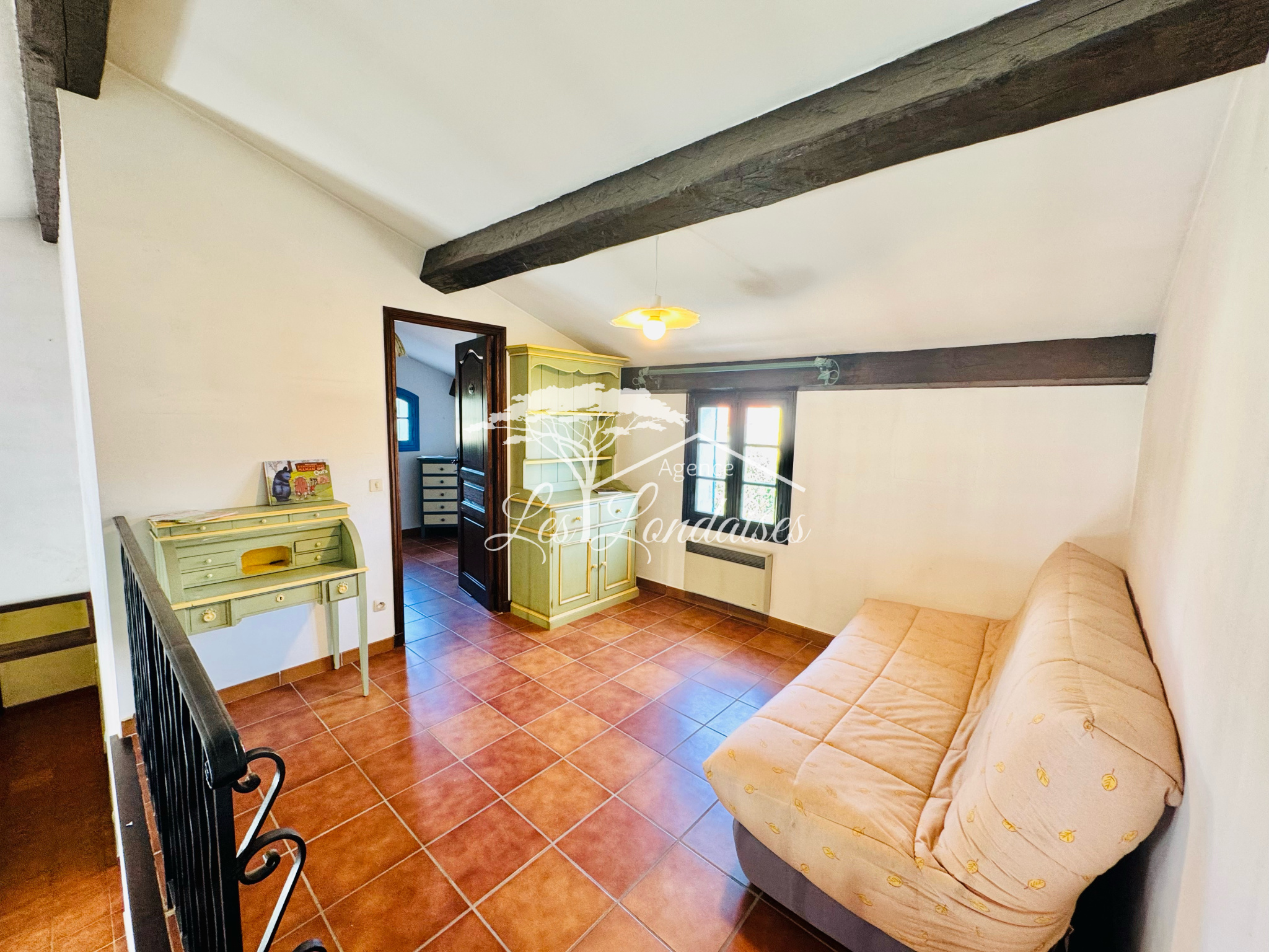 Vous trouverez également : o Une cuisine provençale équipée o Trois chambres confortables dont une avec climatisationo Une salle de bain o Un WC indépendant. Une mezzanine accessible par un escalier maçonné complète la superficie de vie et offre un espace supplémentaire idéal pour un bureau et une quatrième chambre climatisée.