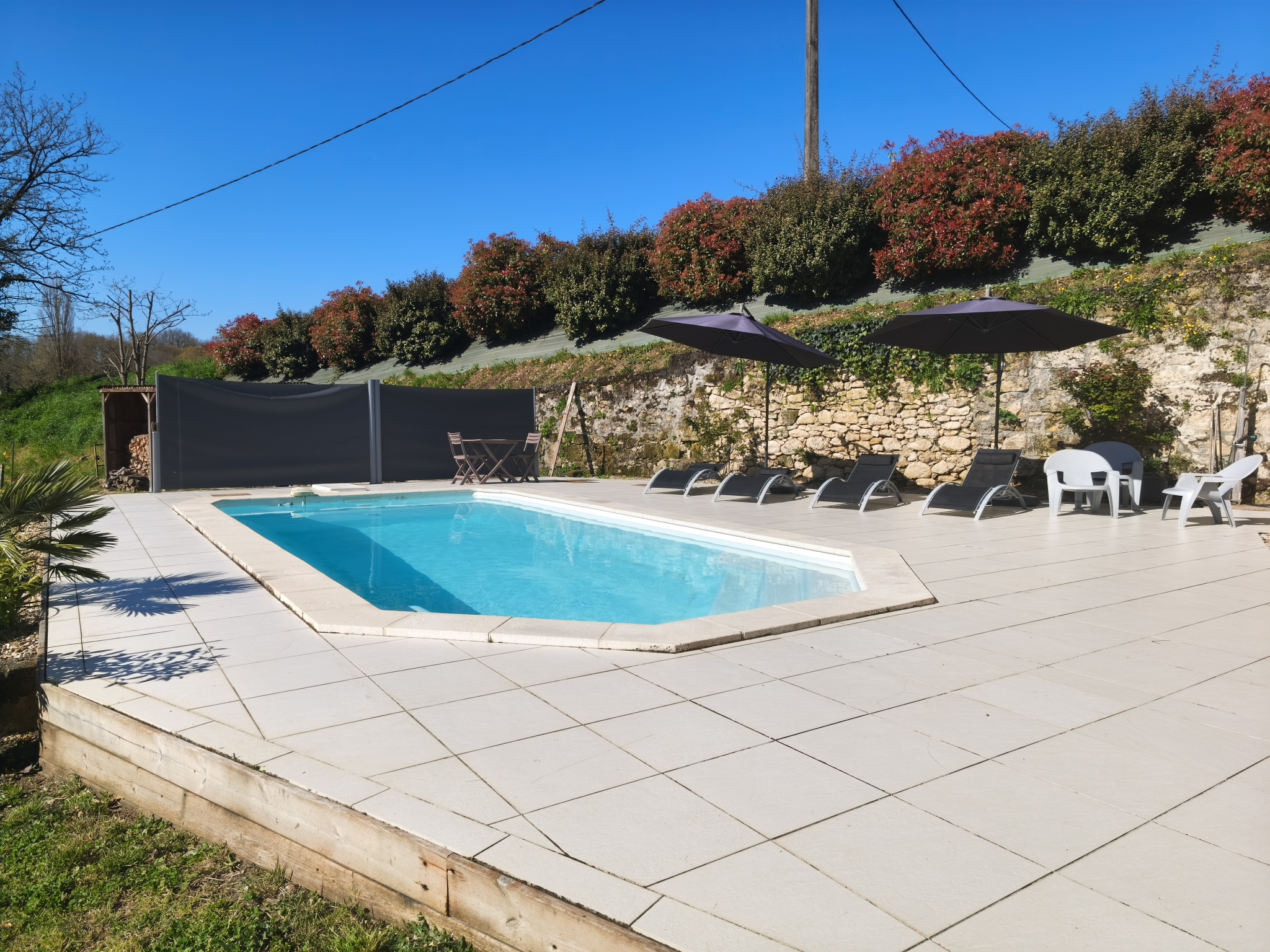 La dépendance : vous trouverez un espace de vie de 30m2 donnant sur la piscine - une cuisine, une buanderie, un atelier et le pool house.
