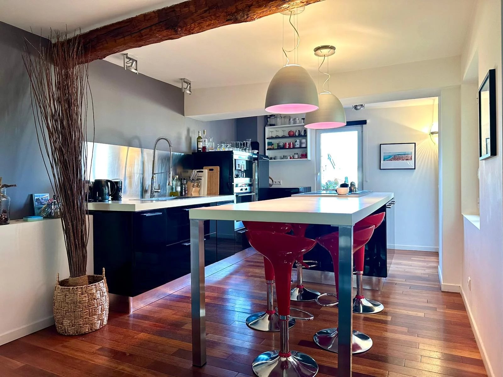 Vous serez séduit par son séjour lumineux, chaleureux et parfaitement agencé, ouvert sur une cuisine haut de gamme entièrement meublée, sublimée par un élégant îlot central.