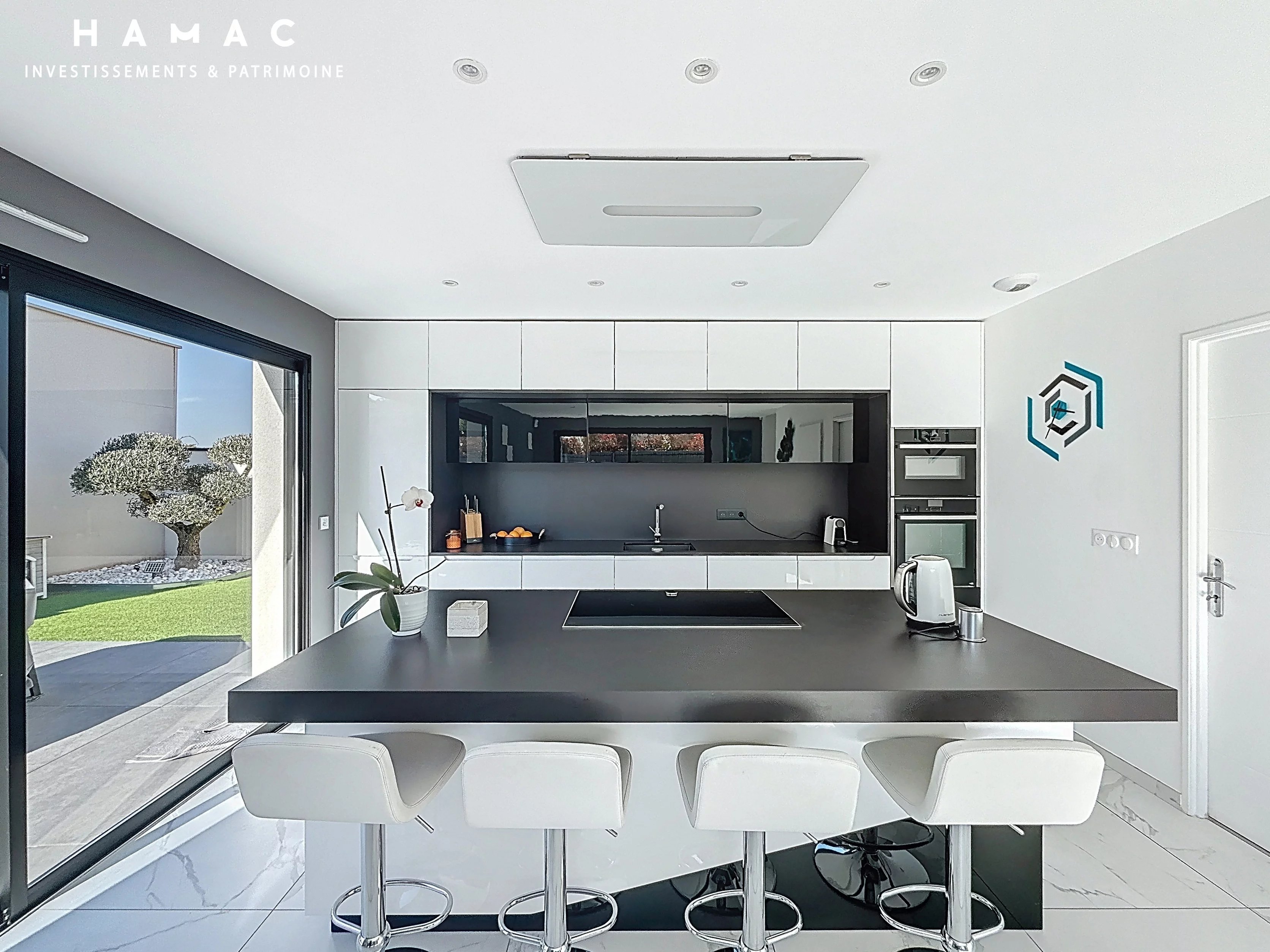 Côté équipements, la maison répond aux attentes actuelles avec des prestations de qualité : climatisation réversible par pompe à chaleur, volets roulants électriques, menuiseries aluminium… Un bien moderne, fonctionnel et économe.