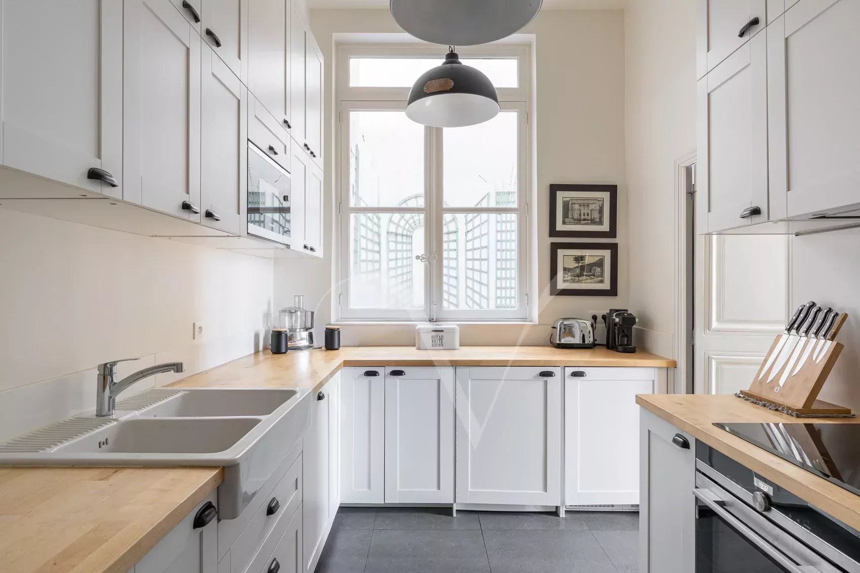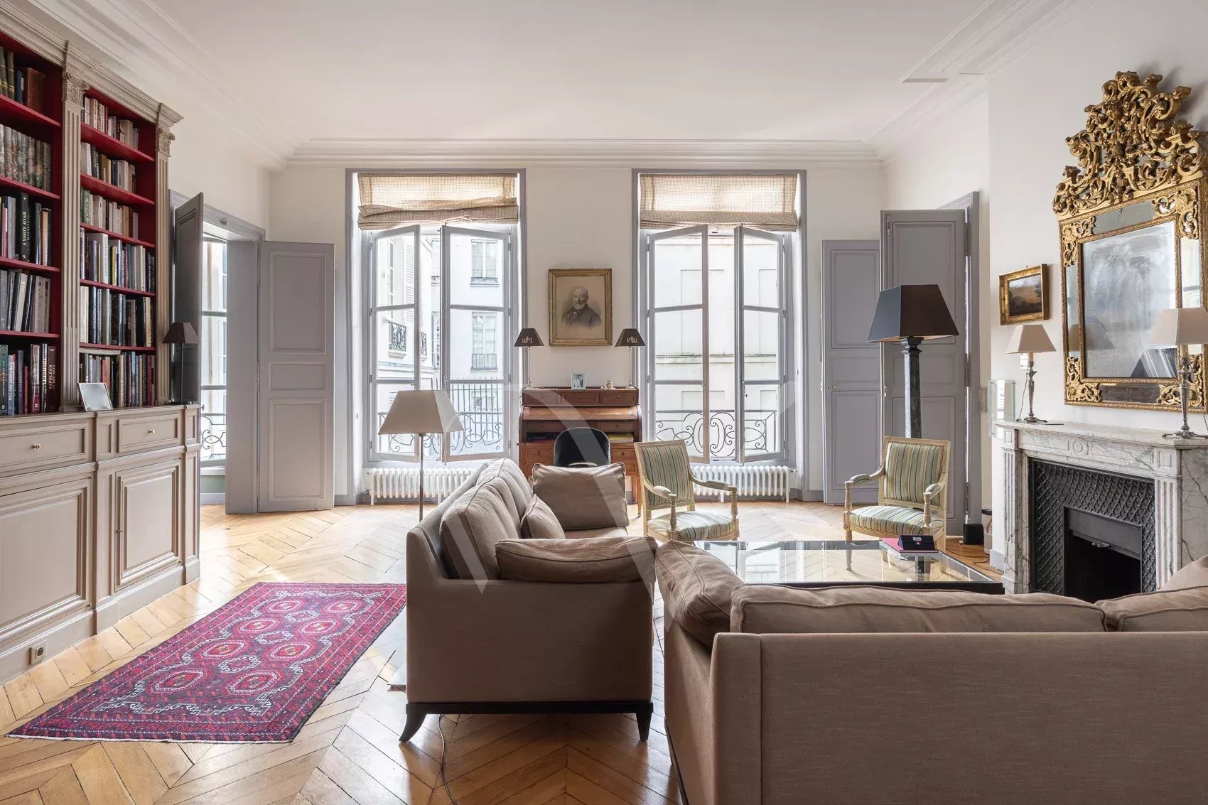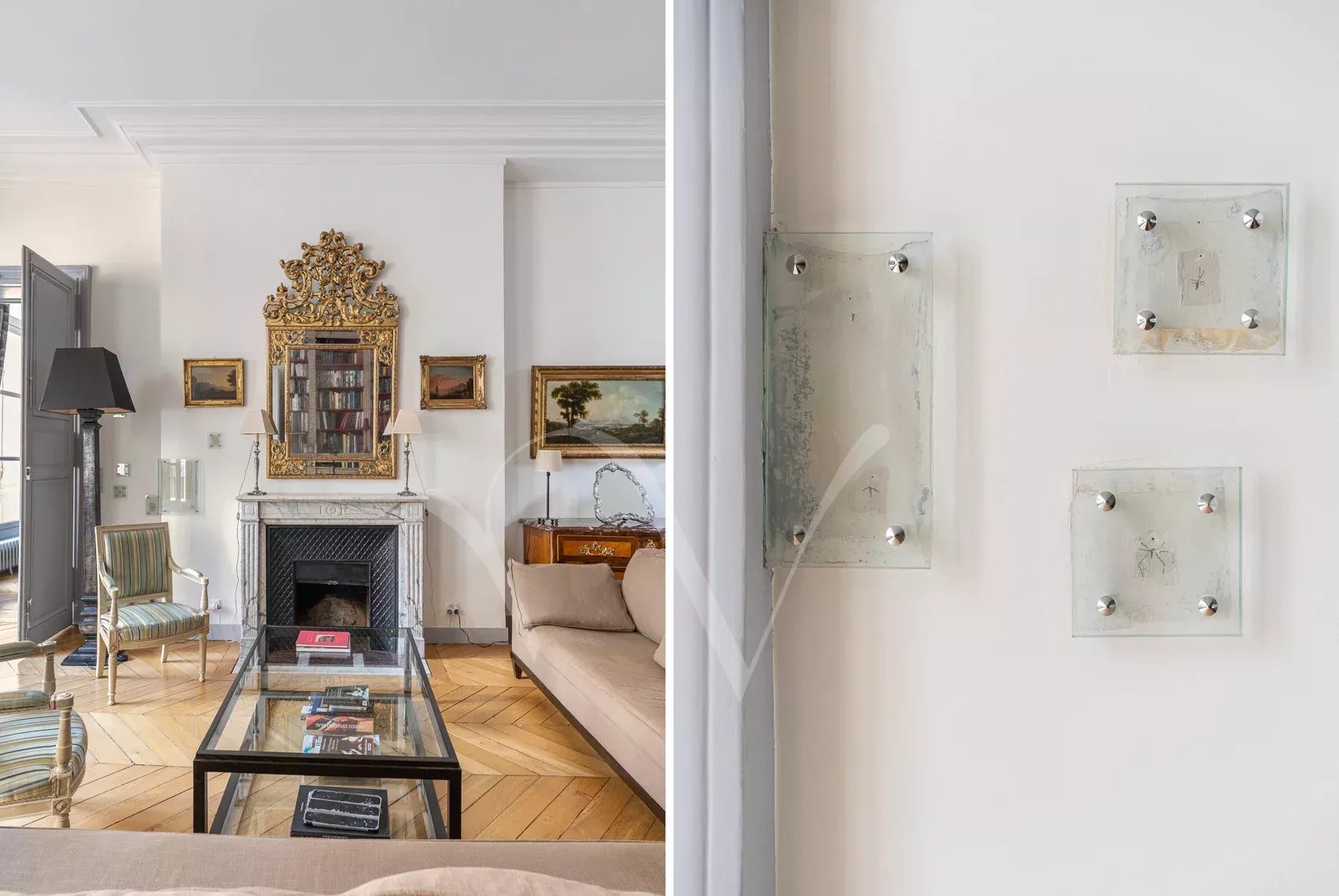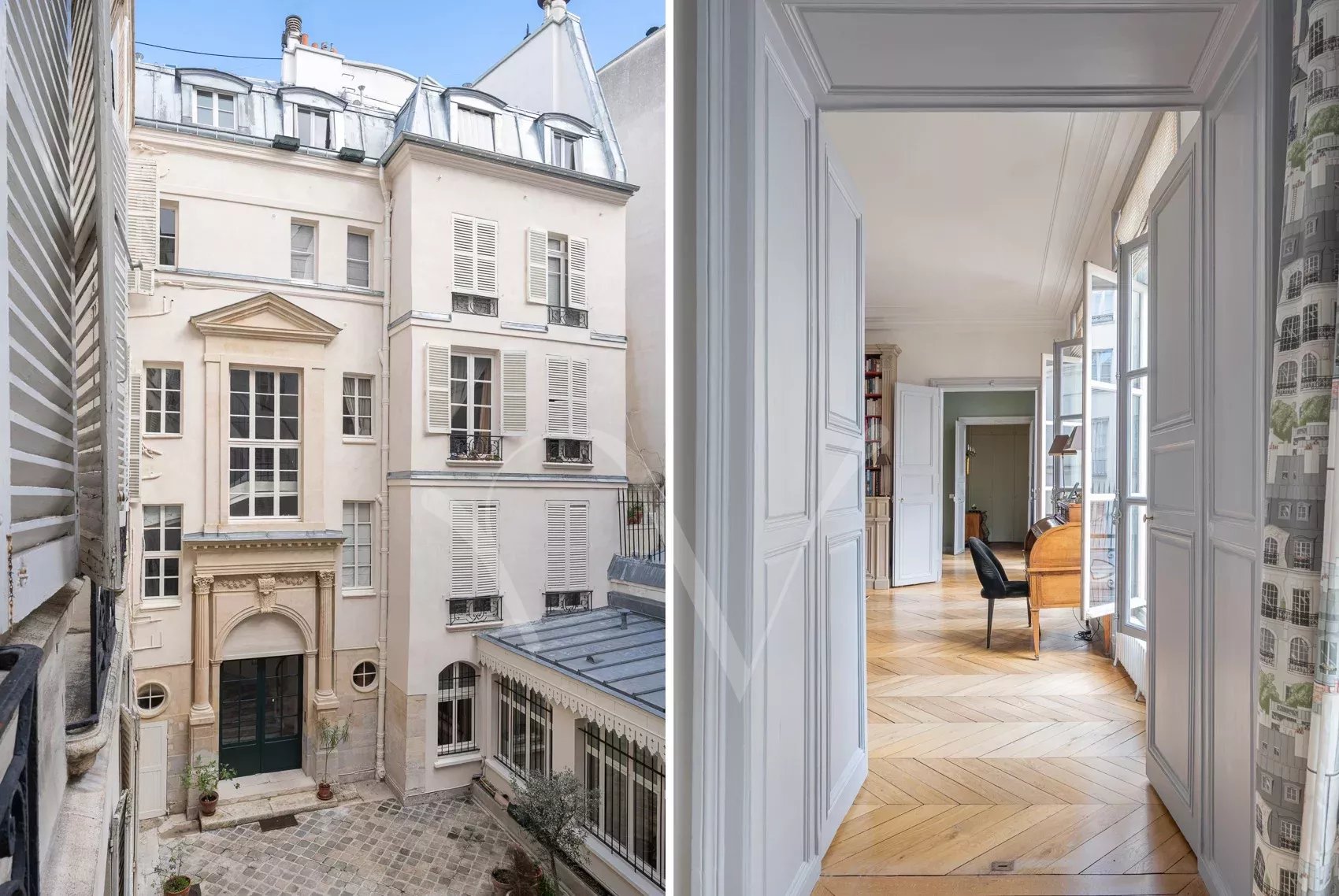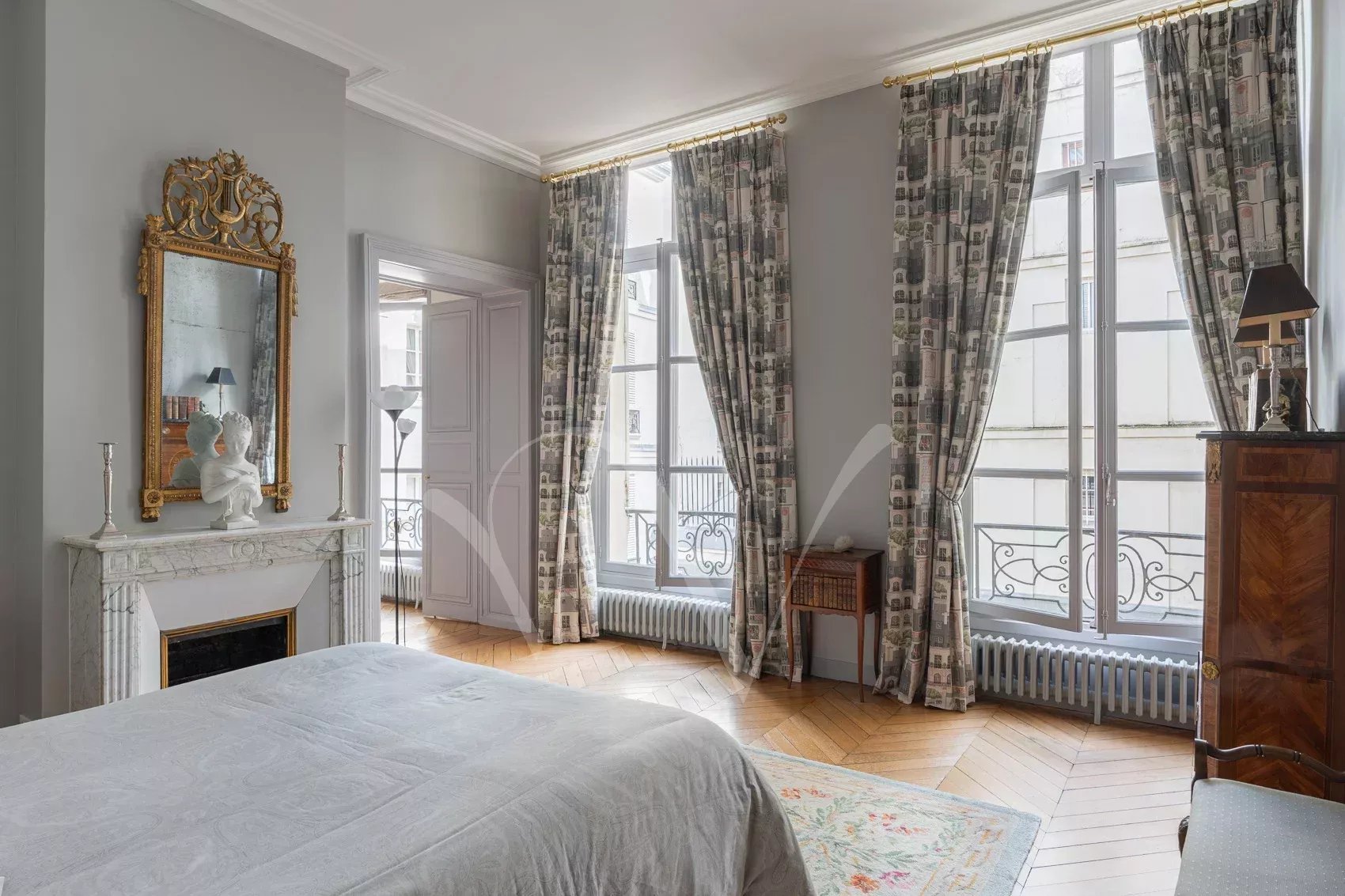 Après avoir traversé la ravissante cour pavée d’un bel immeuble du XVIIe siècle récemment ravalé, on découvre à l’étage noble accessible par escaliers un appartement de 150 m² à la hauteur sous plafond de 3,75 m. Dès l’entrée, se distingue une ambiance charmante : celle d’un appartement aux pièces en enfilade, à la fois intime et très parisien. Les volumes sont majestueux sans ostentation, la lumière douce, le calme absolu. Ancien atelier de Dora Maar, figure emblématique de la rive gauche, l’appartement conserve une aura singulière. Dans le salon, protégés avec soin, demeurent des dessins réalisés par Picasso sur les murs, traces précieuses d’un passé artistique unique, intégrées au décor avec une discrétion presque confidentielle. L’entrée ouvre vers une salle à manger attenante à la cuisine et un petit bureau, puis un salon élégant carré avec bibliothèque et cheminée. L’espace nuit comprend une grande chambre principale ainsi que deux chambres supplémentaires, accompagnées d’une salle de bains complète avec baignoire et douche, et de toilettes séparées. Un appartement rare, chargé d’histoire et de silence, dans l’un des secteurs les plus recherchés de Saint-Germain-des-Prés. On peut y découvrir de petits dessins de Picasso sur les murs du salon, protégés au cours des années.