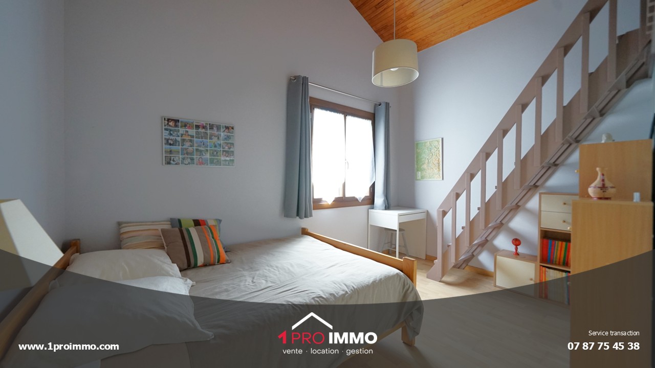 A l'étage : un degagement, 3 chambres dont une avec mezzanine, une salle de bains et un WC.
