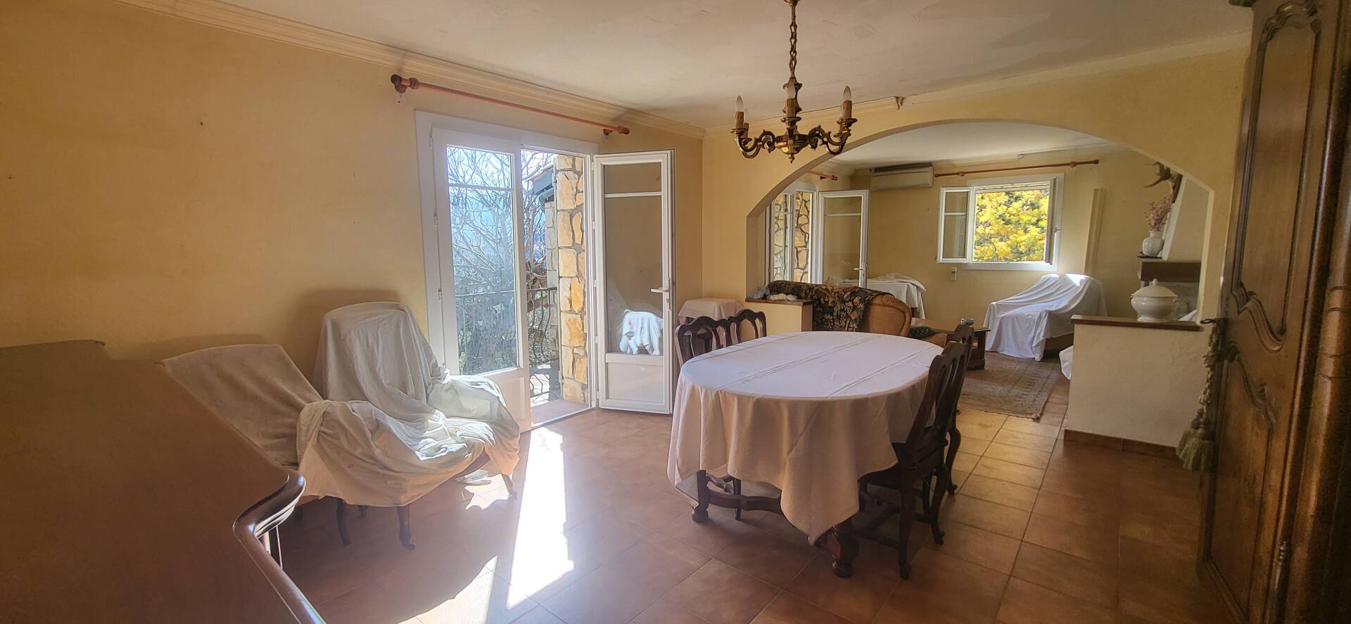 Exclusivité : Dans un secteur verdoyant et calme, en position dominante et orientée sud, Grande et belle villa en pierre d'environ 142m² à moderniser, comprenant spacieux dégagement, salon-séjour de 37m² avec cheminée insert, grande cuisine indépendante avec coin repas et donnant sur terrasse, cellier, 2 belles chambres de plain-pied, salle d'eau, toilettes. A l'étage : 2 chambres, salle d'eau-wc. Garage de 20m², 2 charmants petits cabanons en pierre faisant office de rangement, vide sanitaire aménagée en cave. Terrain clos et arboré de 1350m²piscinable. Véritable opportunité à saisir, excellente qualité de construction Montant estimé des dépenses annuelles d’énergie pour un usage standard entre 1 510 € et 2 110 € (prix moyens des énergies indexés sur les années 2021,2022,2023 abonnements compris). "Les informations sur les risques auxquels ce bien est exposé sont disponibles sur le site Géorisques www.georisques.gouv.fr". Soumis à OLD