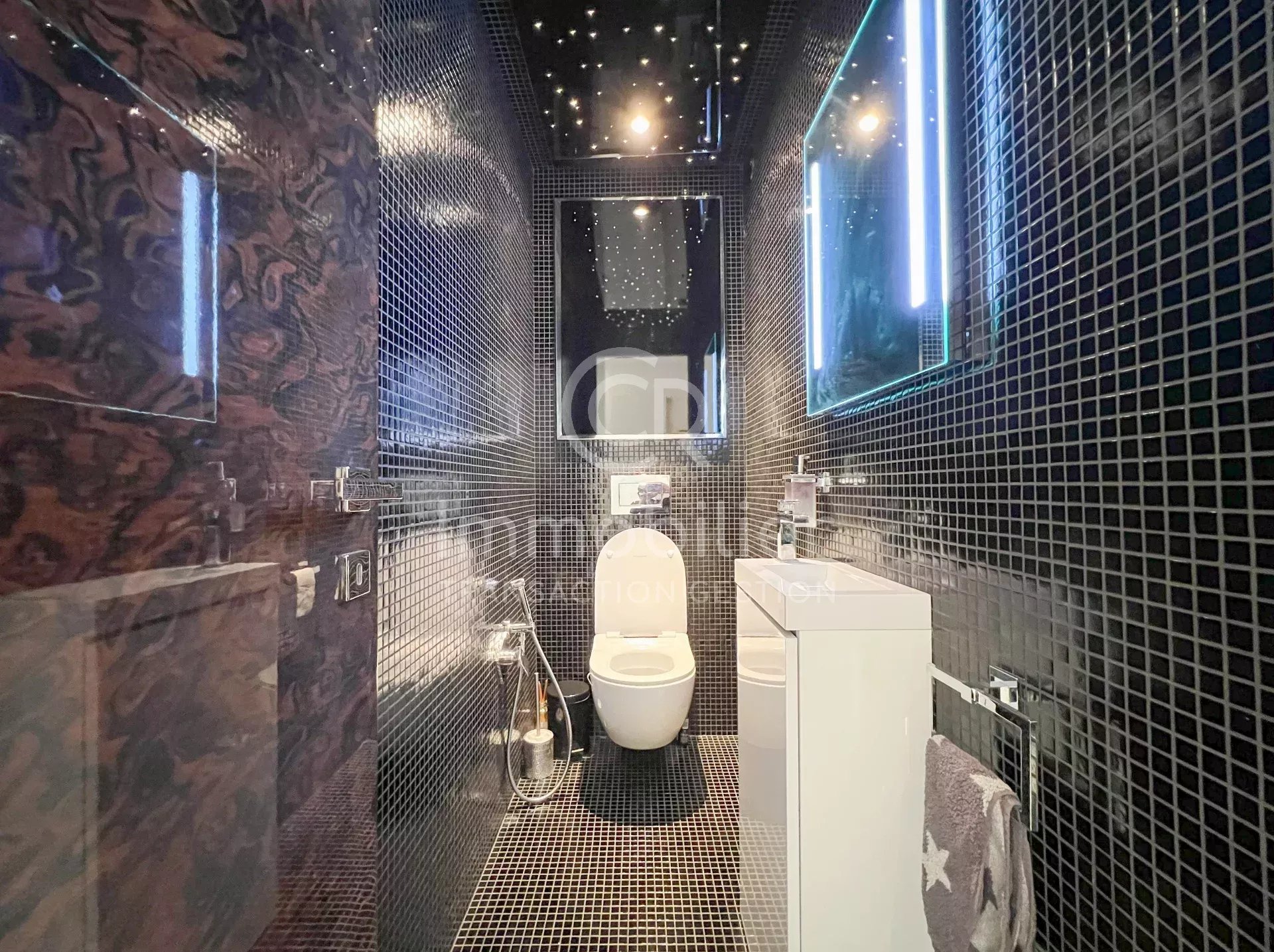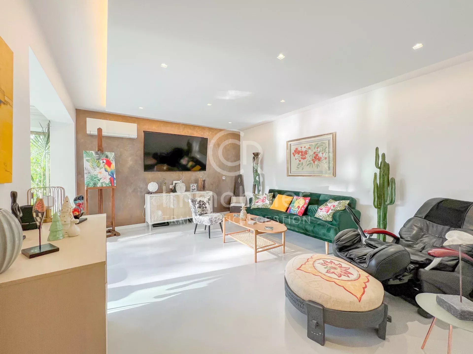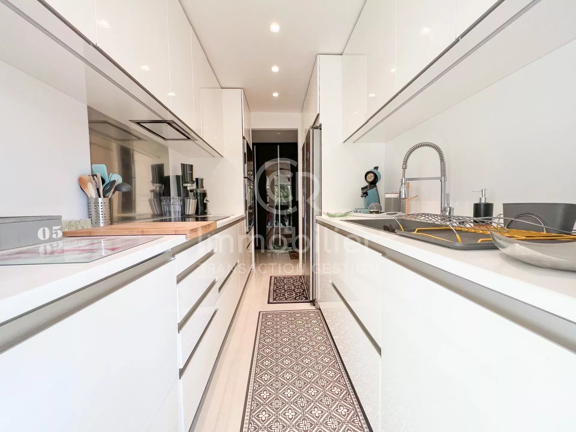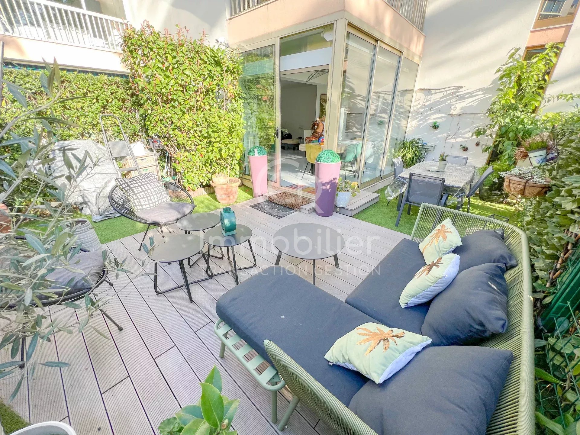 CANNES - Secteur PICAUD/BAS CROIX DES GARDES Venez découvrir la rénovation haut de gamme que vous offre ce magnifique appartement 3 pièces de 82,28m² habitable (74,02m² Carrez) en rez-de-jardin dans une résidence recherchée du secteur. Idéalement située à deux pas des plages et des transports en communs, la résidence comprend des espaces verts, un gardien, une piscine extérieure, une piscine intérieure chauffée, un sauna et un hammam! L'appartement situé dans un bâtiment de deux étages seulement, se compose d'une belle entrée avec placards intégrés sur-mesure, un salon/séjour/salle à manger ouvert sur le jardin d'environ 35m², une cuisine indépendante avec matériaux hauts de gamme, une chambre en suite avec salle d'eau + WC ( avec fonction hammam dans la douche), une seconde chambre avec salle de bains attenante, un WC séparé. L'appartement est vendu avec une cave et un garage privé. Places de stationnement collectives dans la résidence. Charges: 495€/mois (eau chaude, eau froide, chauffage, gardien, parc, 2 piscines, sauna, hammam!)