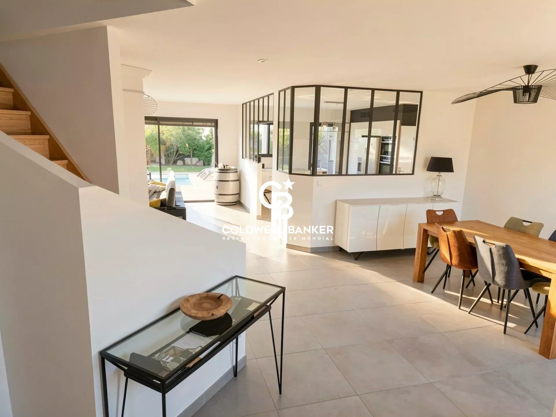 Votre agence Coldwell Banker Immoba Realty à Andernos vous propose : Au cœur d’un secteur calme et recherché, cette villa contemporaine de construction récente, aux prestations haut de gamme, offrant 200 m² de surface habitable. Implantée sur un terrain de 800 m², elle propose un cadre de vie aussi confortable que fonctionnel. Dès l’entrée, vous serez séduit par une vaste pièce de vie lumineuse de 56 m², largement ouverte sur la terrasse et la piscine, créant une harmonie parfaite entre intérieur et extérieur. La cuisine, spacieuse, aménagée et équipée, est sublimée par une élégante verrière type atelier, apportant cachet et convivialité, et se complète d’un cellier/buanderie. Le rez-de-chaussée accueille une superbe suite parentale avec dressing et salle d'eau, une seconde chambre, une salle d’eau ainsi que des toilettes indépendants. À l’étage, l’espace nuit se prolonge avec deux chambres supplémentaires, un bureau idéal pour le télétravail, une salle de bain, une salle vidéo dédiée à vos moments de détente et un toilette séparé. À l’extérieur, profitez d’un espace conçu pour le bien-être avec piscine chauffée, pergola bioclimatique, terrain de pétanque, jardin aménagé et deux dépendances de type atelier d’environ 20 m². Un garage attenant vient parfaire ce bien aux prestations soignées, idéal pour une vie de famille alliant confort, modernité et tranquillité. Elle bénéficie des garanties décennale et dommages-ouvrage. Informations techniques : DPE : A (26.3 kWhEPh/m²/an) - GES : A (1.4 KgCO²/m²/an) Prix du bien: 1 096 000 €, les honoraires de l'agence à la charge de l'acquéreur 31 950 TTC soit 3 % TTC sont inclus. Prix net vendeur : 1 065 000 € Consultez l'état des risques de ce bien sur géorisques.gouv Pour plus d'information, contactez Christine HAUER. RSAC n°494 327 679. RCP n° 25032648. Retrouvez tous nos biens sur IMMOBA.