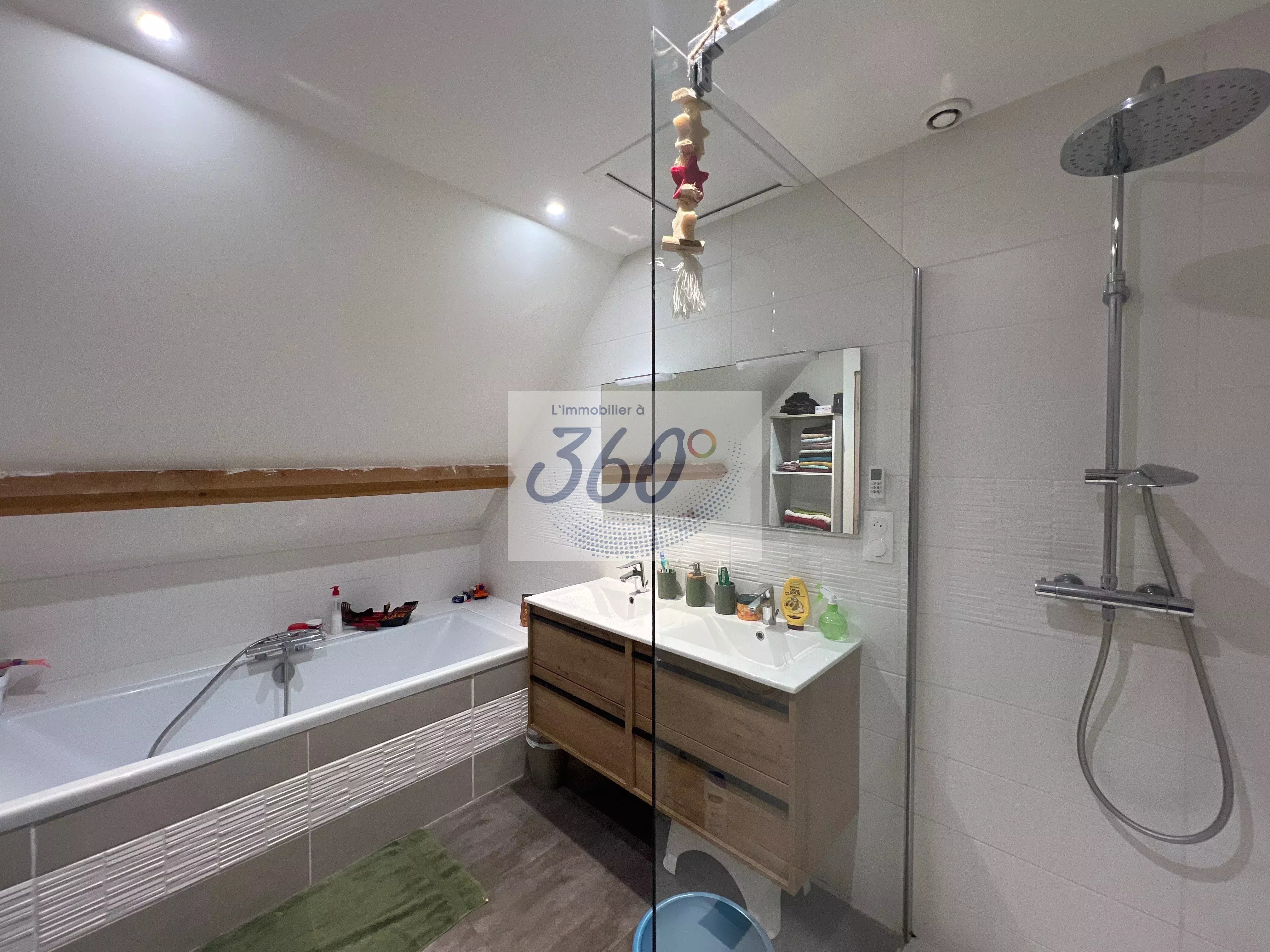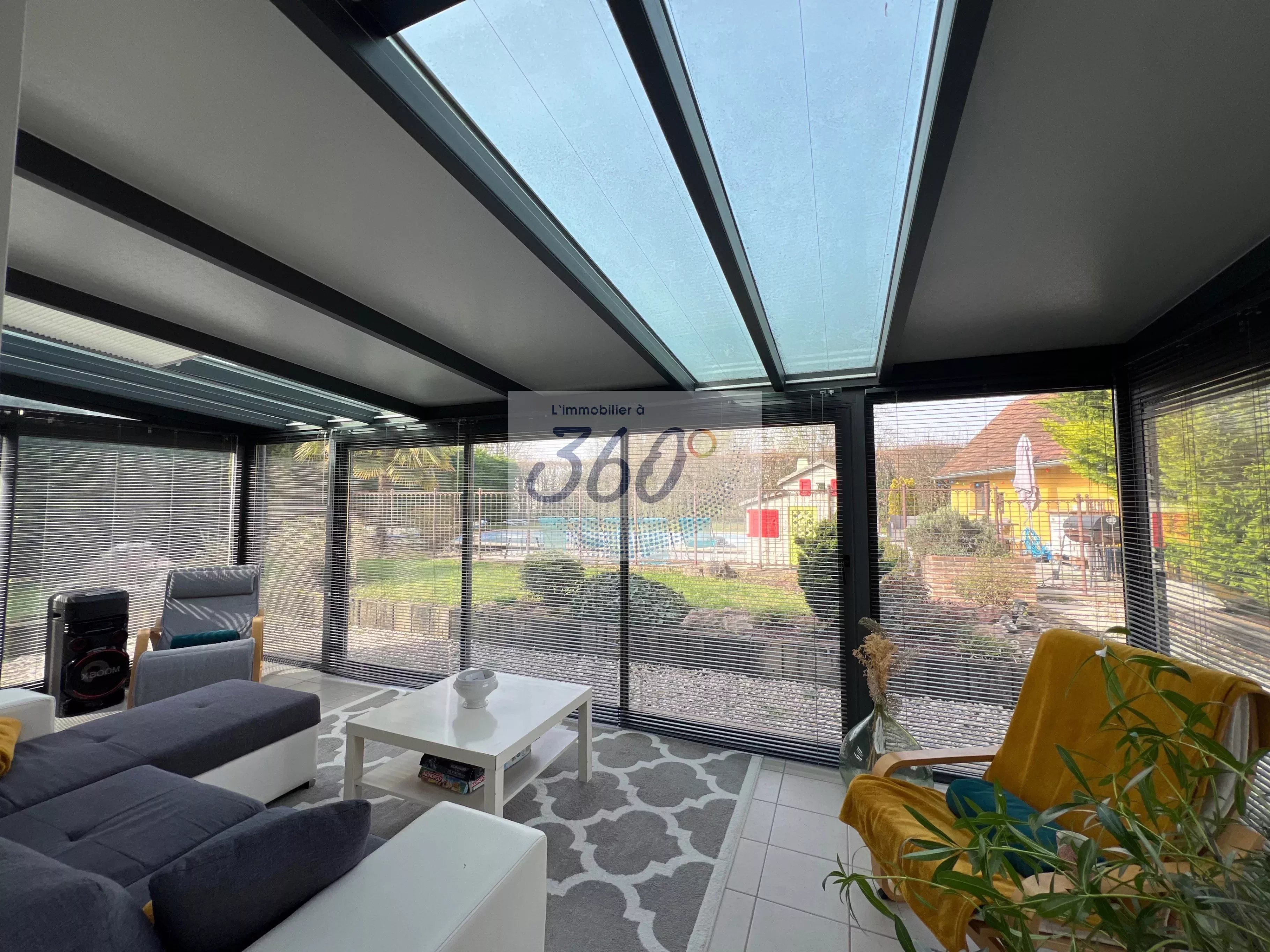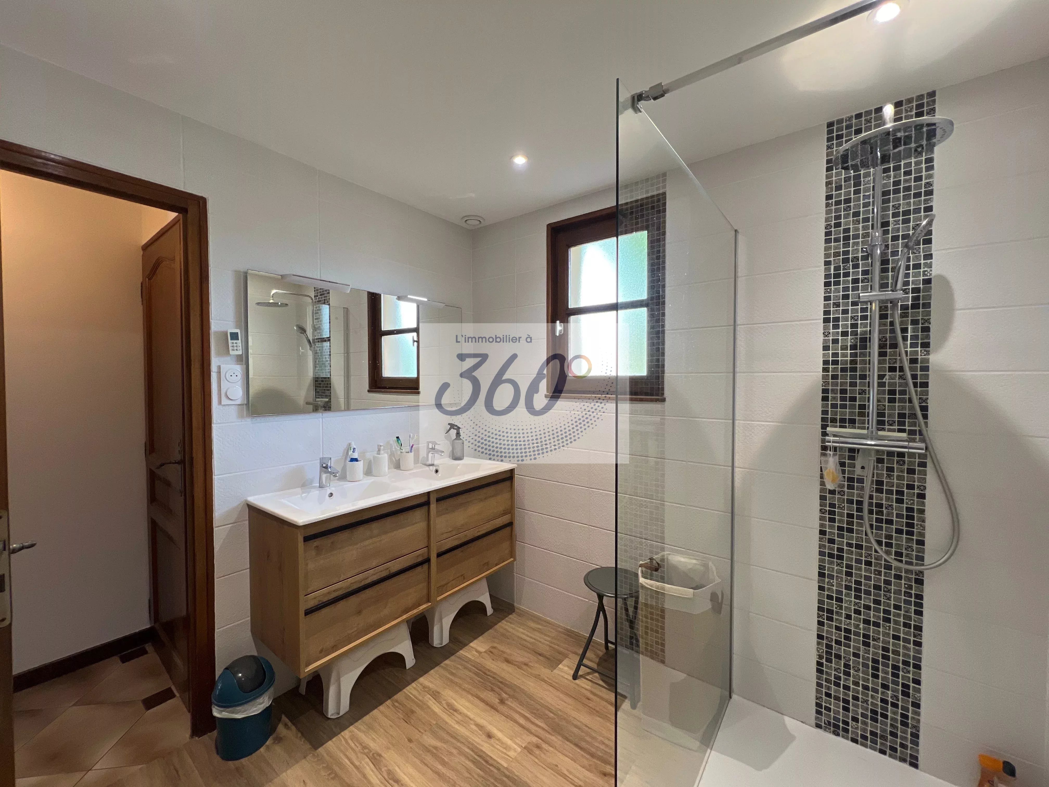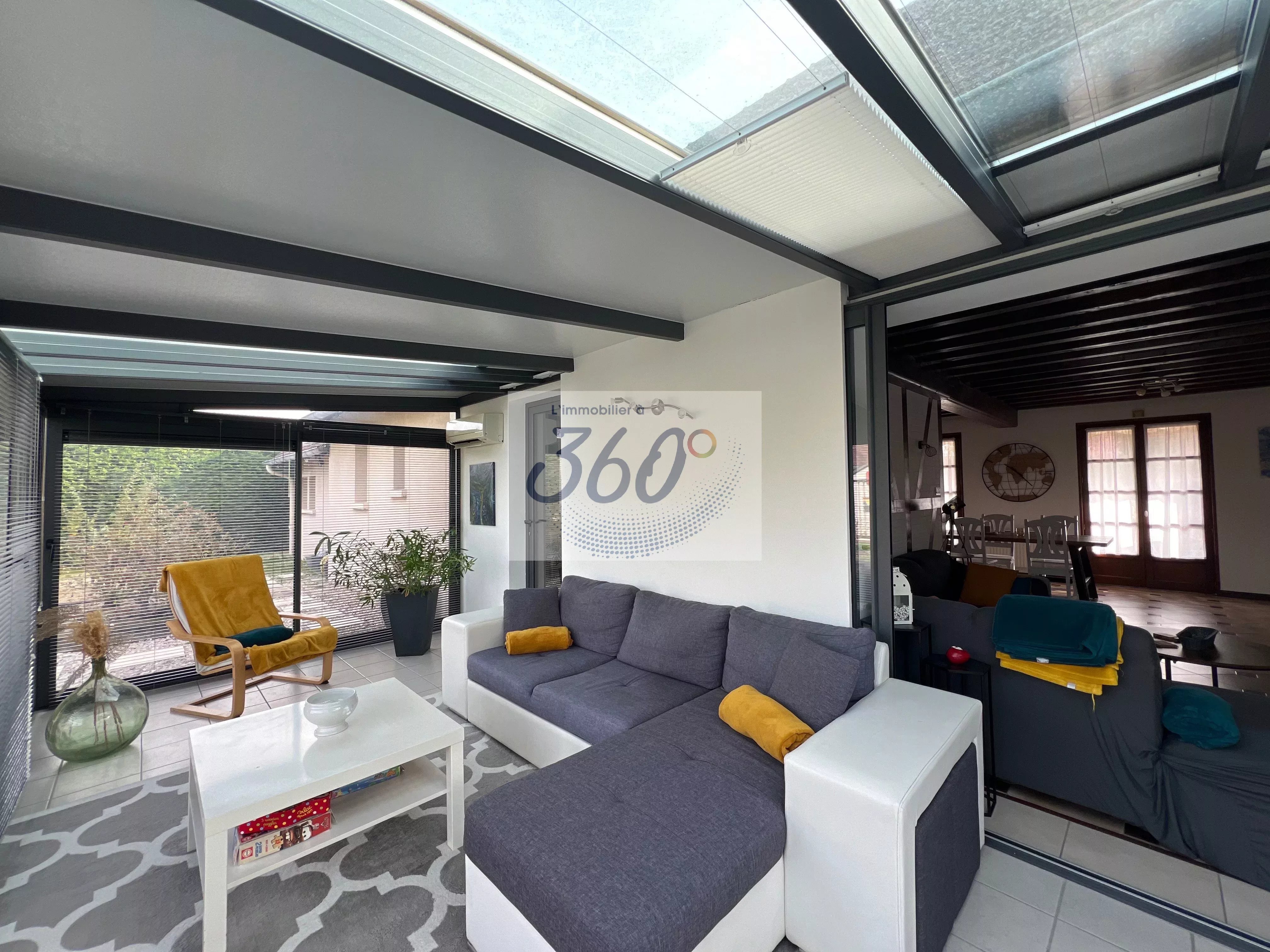 Au rez-de-chaussée, vous découvrirez une agréable pièce de vie lumineuse équipée d’un insert bois, offrant un espace chaleureux et convivial. Elle s’ouvre sur une superbe véranda lumineuse, climatisée par une climatisation réversible, véritable prolongement de la maison pour profiter de chaque saison.