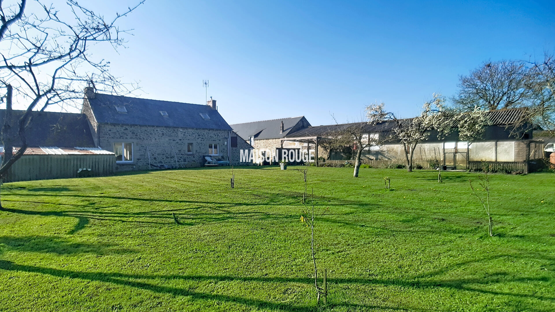 Nichée dans un environnement calme et verdoyant, cette propriété de caractère offre un cadre de vie privilégié à la campagne, idéal pour les amoureux de nature, de grands espaces et de projets à développer. Implanté sur un terrain de plus de 6 700 m², dont plus de 3 300 m² de terrain agricole, parfaitement adapté à l'accueil de chevaux ou à tout autre projet d'élevage, cet ancien corps de ferme en pierres se compose de plusieurs bâtis offrant de nombreuses possibilités. La maison principale, en partie rénovée, s'ouvre sur une vaste pièce de vie lumineuse, chaleureusement rénovée, prolongée par une cuisine aménagée et équipée. Une arrière-cuisine ainsi que des WC indépendants complètent le rez-de-chaussée. A l'étage, un palier dessert trois chambres aménagées sous les combles, ainsi qu'une salle d'eau avec WC. Indépendant, le gîte entièrement rénové constitue un véritable atout, que ce soit pour un projet touristique ou pour accueillir famille et amis. Il se compose d'un salon-séjour avec cuisine ouverte aménagée et équipée. A l'étage, un palier dessert deux chambres, chacune disposant de sa salle d'eau privative, garantissant confort et intimité. La propriété dispose également de dépendances en pierres d'environ 300 m², dont environ 160 m² aménageables, offrant un potentiel exceptionnel pour des projets d'extension, de création de logements ou d'activité professionnelle. Un hangar fermé d'environ 140 m², équipé d'une porte automatisée, complète cet ensemble et permet de répondre à de nombreux usages (stockage, activité artisanale ou agricole). Un garage d'environ 36 m², un appentis, deux puits ainsi qu'un poulailler viennent parfaire les prestations. Une propriété rare, alliant authenticité, tranquillité et fort potentiel d'évolution, idéale pour concrétiser un projet de vie à la campagne, au plus proche de la nature. Prix FAI : 408 720 euros dont 4.80 % honoraires TTC à la charge de l'acquéreur. Laure PENAULT (EI) Agent Commercial - Numéro RSAC : 897 819 025 - SAINT BRIEUC.