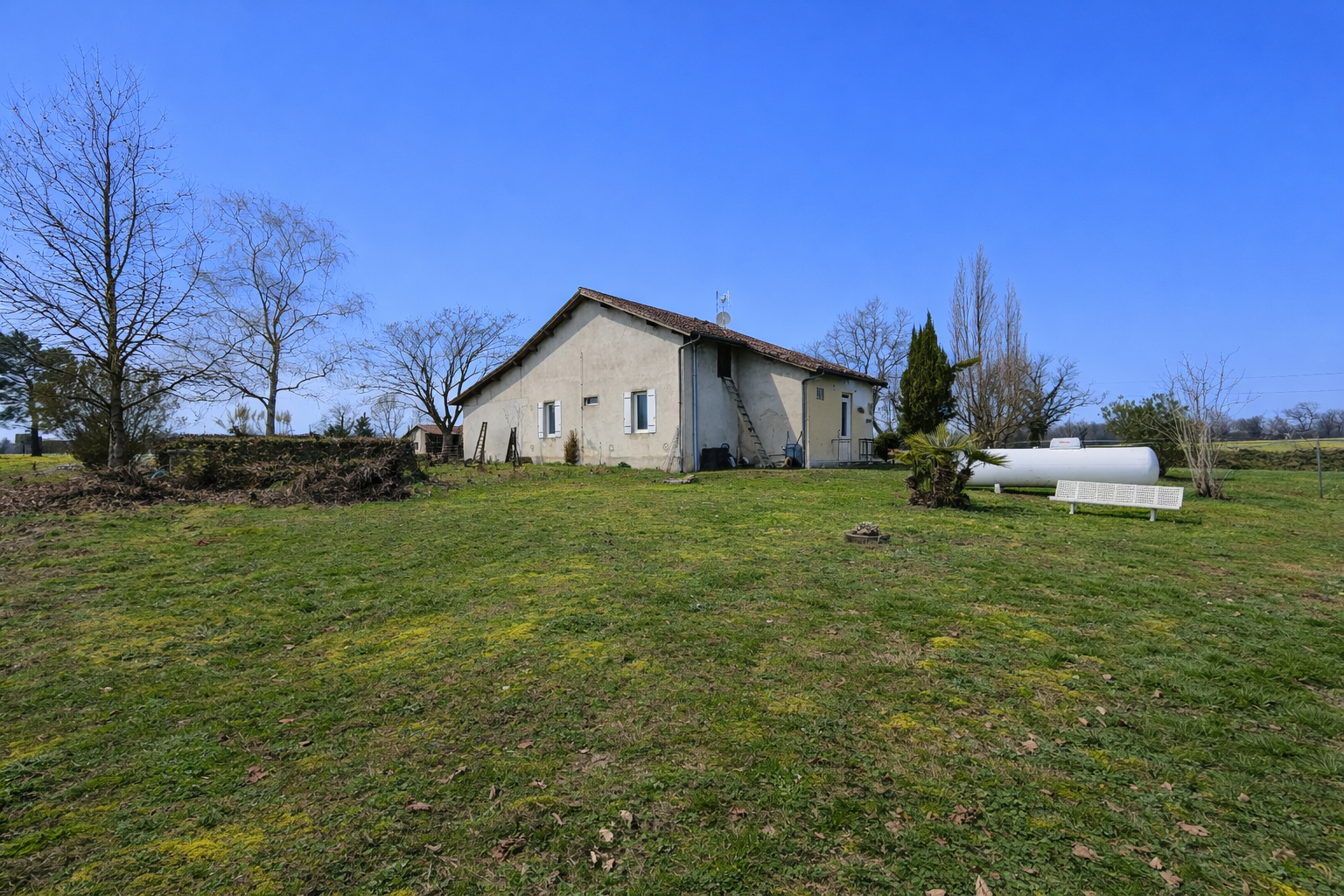 Situé à 15 minutes des arènes de Mont de Marsan et 10 du grand moun dans un village au sud-est de Mont de Marsan, se présente à la vente dans cette annonce une très sympathique maison de campagne édifiée sur un terrain de 2074 m² avec une belle vue dégagée au sud ! A distance de toute route passante, au calme, elle offre un bel espace de vie de plain-pied.. En effet, elle a été rénovée il y a quelques années comme cela se voit sur les photos. Sa disposition intérieure est la suivante avec tout d'abord un petit coin entrée qui ouvre sur le séjour carrelé. Celui -ci donne sur une cuisine aménagée et équipée, qui est elle-même épaulée par un cellier-buanderie attenant. Pour le couchage, une première chambre donne directement sur le séjour. Celle -ci est actuellement utilisée en complément du salon qui sert de salle à manger. On accède au deux autres par un dégagement qui délimite la zone nuit et permet également d'accéder à une sympathique salle d'eau avec une grande douche italienne !! De grands combles aménageables permettront un éventuel agrandissement de façon aisée. Devant le grand garage de 28 m², se trouve un porche de 16 m² qui pourra permettre de mettre deux voitures mais également servir de terrasse couverte pour les repas en extérieur. La campagne vous attend avec cette belle maison au prix contenu de 170 000 euros. Alors si vous avez l'esprit champêtre, contactez-nous pour plus d'informations. DPE D, Prix 170 000 euros, réf 2975