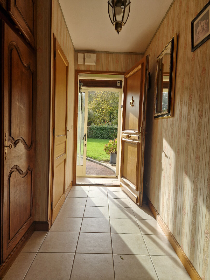 Proche de MOYAUX. Environnement calme et non isolé. Maison de plain pied sur sous-sol total. En très bon état. Portail Electrique avec portillon. Bien isolé thermiquement, faible conso énergétique, isolation par les combles en plus. Petite véranda d'entrée, entrée avec placard, séjour salon cheminée insert, cuisine aménagée et équipée, couloir desservant 3 chambres dont une avec une possibilité de salle d'eau privative, salle d'eau douche, WC. Sous-sol en partie carrelé comprenant, atelier, cave, garage, pièce de rangement. Terrain d'environ 3878 m². (5.00 % honoraires TTC à la charge de l'acquéreur.)
