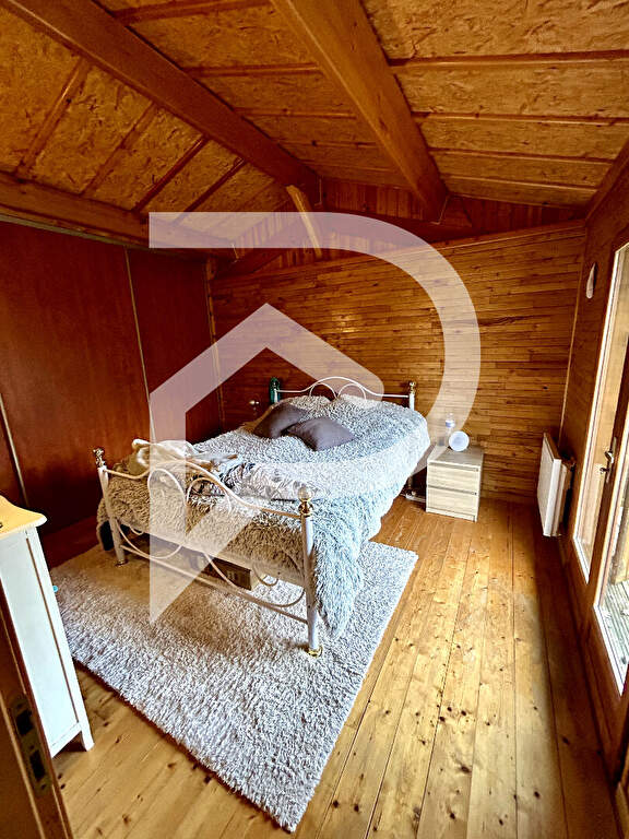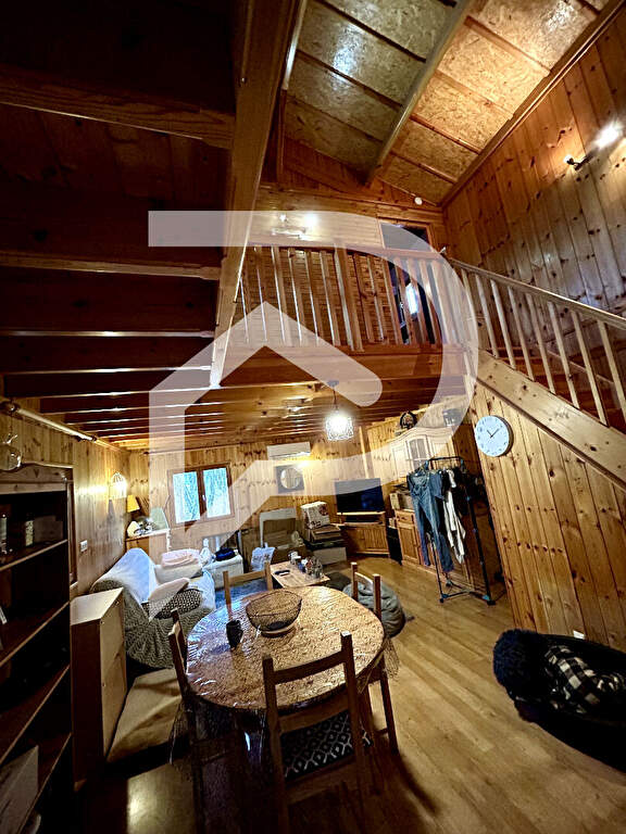 CUBJAC - Ce charmant chalet de type T3, entièrement meublé, propose un cadre chaleureux et très calme. Il offre, au rez-de-chaussée, une terrasse couverte, un séjour cosy, une cuisine séparée équipée et aménagée, et WC. A l'étage, une salle d'eau, deux chambres dont une équipée d'un grand placard ainsi qu'une baie vitrée donnant accès au balcon. A l'extérieur, un chenil et un jardin non clos permet de profiter de la nature environnante. Disponible à partir du 31 Mars .