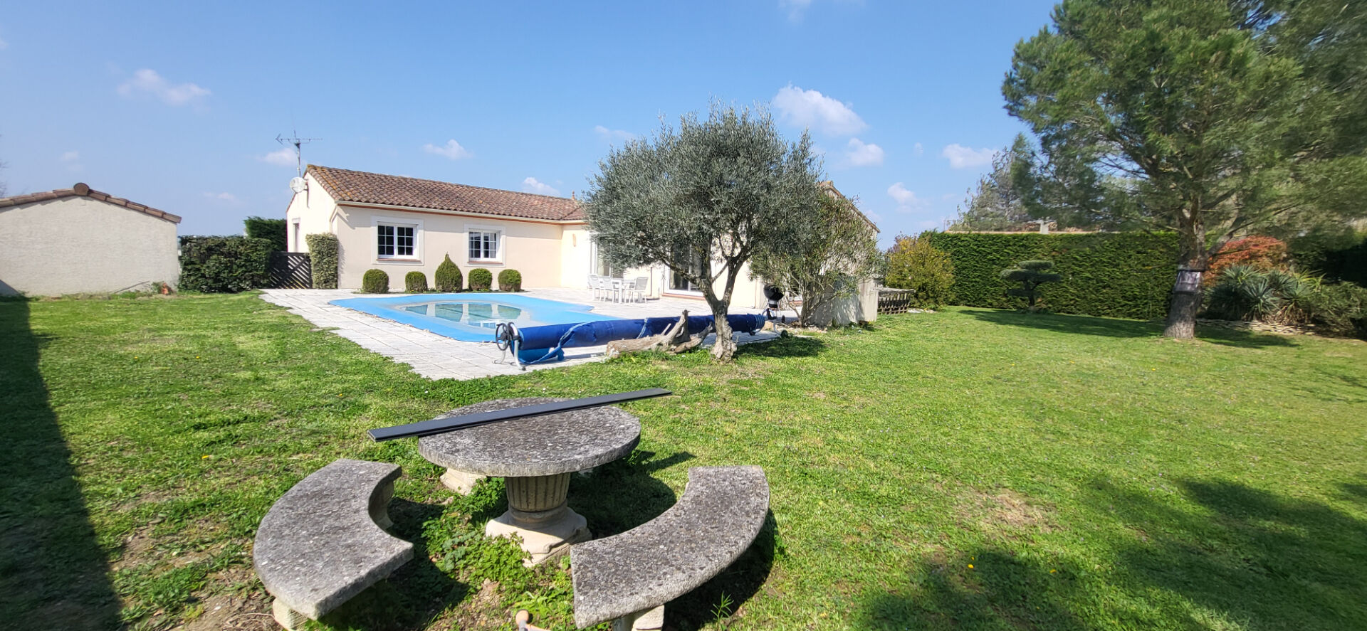 A seulement 10 minutes de Carcassonne, découvrez une maison rare alliant confort, luminosité et tranquillité. Située dans un village avec commodités, cette maison de plain-pied 4 faces développe environ 150 m² habitables sur un superbe terrain plat de 1 129 m². Dès l'entrée, vous serez séduit par ses volumes généreux et sa luminosité exceptionnelle grâce à son exposition et à l'absence de vis-à-vis. Elle se compose d'un vaste séjour lumineux, d'une cuisine entièrement équipée, de 4 chambres avec dressings, salle de bains complète , 'une buanderie fonctionnelle ainsi que d'un double garage. le terrain offre de nombreuses possibilités : piscine déjà en place, deux accès indépendants, et la possibilité de stationner facilement un camping-car. Cette maison réunit tous les critères recherchés : plain-pied, environnement calme, belles surfaces, luminosité et prestations complètes. Un bien idéal pour une famille souhaitant profiter du confort d'une maison spacieuse tout en restant proche de Carcassonne. Contactez-nous dès maintenant pour organiser une visite et découvrir tout le potentiel de ce bien. Marie FERNANDEZ (EI) Agent Commercial - Numéro RSAC : - .