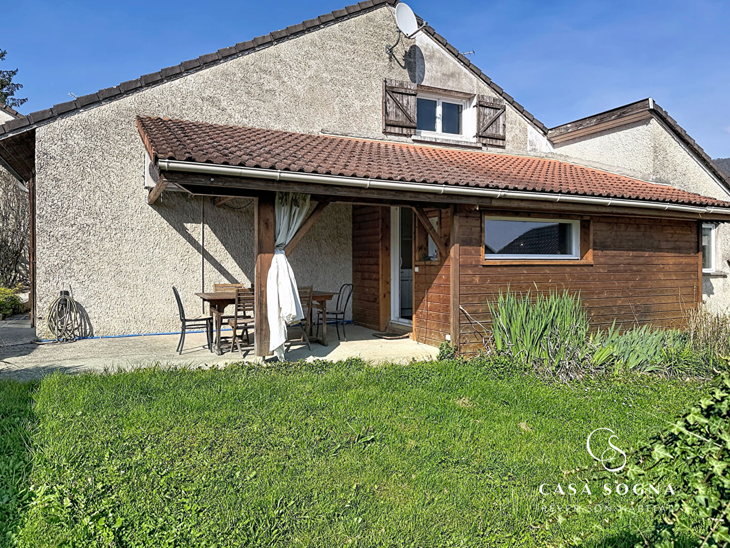 CASA SOGNA vous présente une maison familiale avec jardin et beaux volumes à Lagnieu (01150), à seulement 10 minutes d'Ambérieu-en-Bugey. Située dans un environnement résidentiel calme, au sein d'un ancien lotissement en copropriété sans charges, cette maison mitoyenne construite en 1972 développe une surface habitable généreuse de presque 119 m², sur une parcelle de 581 m², et offre un cadre de vie idéal pour une famille en quête de confort et de fonctionnalité. Dès l'entrée, vous serez séduits par des espaces bien pensés comprenant des rangements et des toilettes indépendantes, menant à un salon chaleureux équipé d'un poêle à granulés. Celui-ci s'ouvre sur un vaste espace séjour/salle à manger baigné de lumière grâce à de larges baies vitrées, offrant une agréable continuité avec les extérieurs. La cuisine semi-ouverte, entièrement aménagée et équipée, s'intègre harmonieusement à l'espace de vie et bénéficie d'un cellier chaufferie attenant, apportant un confort d'organisation au quotidien et un accès direct à la terrasse. Le rez-de-chaussée propose également une belle salle d'eau rénovée avec une douche à l'italienne, ainsi que deux chambres, dont une agréable chambre parentale avec son dressing privatif. A l'étage, une grande mezzanine ouverte offre de nombreuses possibilités d'aménagement : espace bureau, coin détente ou salle de jeux selon vos besoins. Vous y trouverez également un grenier attenant idéal pour le stockage, ainsi qu'un espace nuit composé d'une grande pièce desservant une chambre en enfilade, permettant d'envisager un espace enfant, un bureau ou une chambre supplémentaire selon vos usages. A l'extérieur, vous profiterez d'un cadre de vie particulièrement agréable avec une grande terrasse sans vis-à-vis accessible depuis les pièces de vie, prolongée par un jardin spacieux et bien exposé. Une seconde terrasse accueille une véritable cuisine d'été équipée d'un four à pain/pizza, idéale pour partager des moments conviviaux en famille ou entre amis. Un garage ainsi qu'une place de stationnement privative viennent compléter les prestations de ce bien. Cette maison offre de beaux volumes, une configuration fonctionnelle et un fort potentiel d'aménagement, le tout dans un secteur recherché à proximité des commodités et des axes principaux. Copropriété sans charges. Visite virtuelle sur demande ! Prix: 249 000 euros Honoraires Agence inclus à la charge du vendeur. DPE: E / GES: C Prix moyens des énergies indexés sur les années 2021, 2022, 2023 (abonnements compris): entre 3370 euros et 4570 euros. Les informations relatives aux risques auxquels ce bien est exposé sont disponibles sur le site www.georisques.gouv.fr Pour toute information complémentaire ou pour organiser une visite, contactez Linda Ikhlef au 06 31 34 57 37 Agent immobilier immatriculé RCS 988 786 299 www.casa-sogna.immo 16 Rue Alexandre Bérard, 01500 Ambérieu-en-Bugey Copropriété de 11 lots.