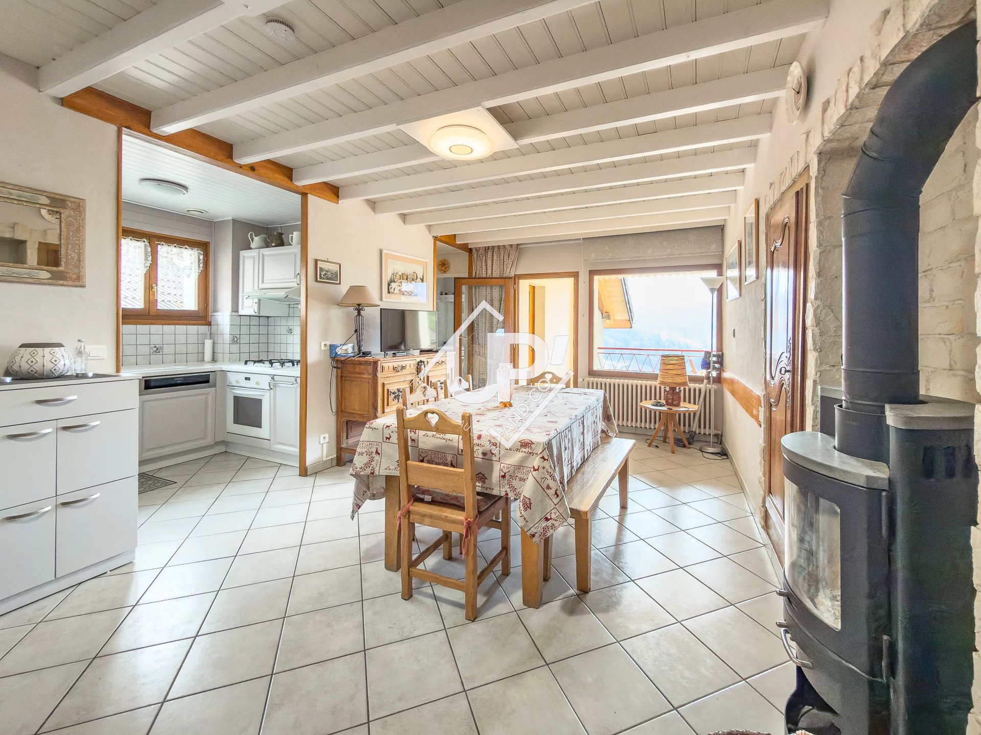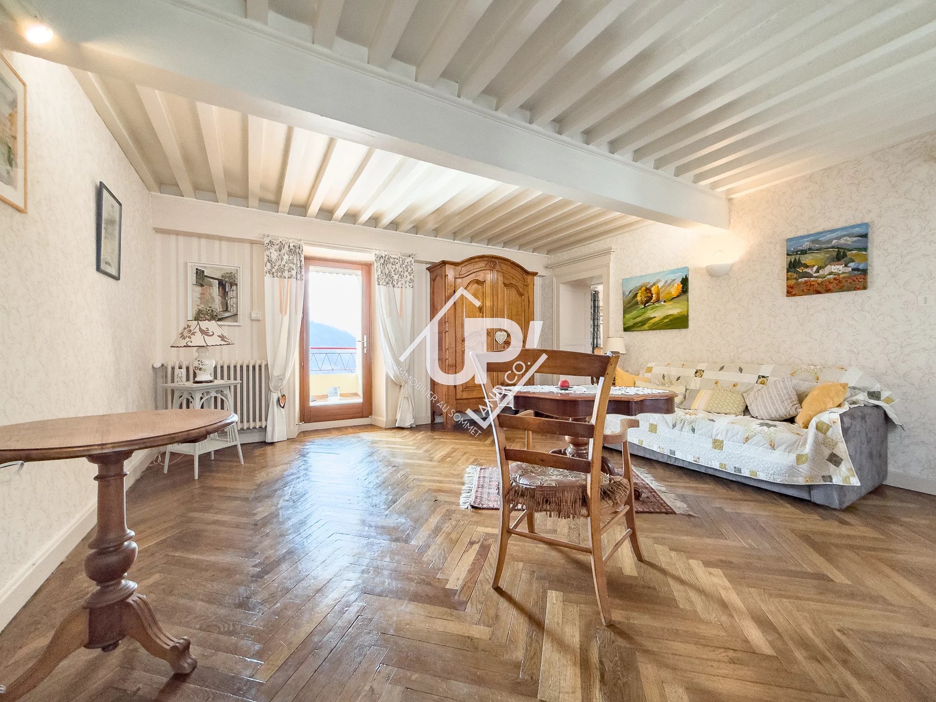 Situé en plein centre du village de Manigod, au sein d’une maison de ville pleine de caractère, découvrez cet appartement d’environ 86 m² offrant un cadre de vie authentique et privilégié. Il se compose d’un séjour lumineux avec cuisine équipée, d’un salon chaleureux, de deux chambres, d’une salle de douche ainsi que d’un WC séparé. L’ensemble est fonctionnel et agréable à vivre, idéal pour une résidence principale comme secondaire. Vous serez séduit par sa grande terrasse de 13 m², exposée sud-est, offrant une vue dégagée sur les montagnes environnantes, parfaite pour profiter des beaux jours en toute tranquillité. Un cellier accessible depuis la terrasse vient compléter cet espace extérieur. Le plus : des combles aménageables de plus de 70 m², offrant un fort potentiel d’agrandissement (travaux déjà chiffrés), idéal pour créer un espace supplémentaire selon vos envies. En annexes, vous bénéficierez d’une cave spacieuse de 24 m² ainsi que d’un jardin plat de 378 m² en partie privative, un véritable atout pour profiter de la nature au quotidien. La copropriété est composé de 7 lots dont 2 lots d'habitation. Cela vous assure des charges maîtrisées. Nichée au cœur des Aravis, la station-village de Manigod séduit par son authenticité, son ambiance familiale et son accès direct au domaine skiable de La Clusaz. Été comme hiver, elle offre un large éventail d’activités (ski, randonnée, VTT…) tout en conservant le charme et la tranquillité d’un village de montagne préservé. Commerces, écoles et services sont accessibles à pied, un véritable confort au quotidien. Un bien rare alliant emplacement central, potentiel d’évolution et qualité de vie exceptionnelle. À visiter sans tarder !
