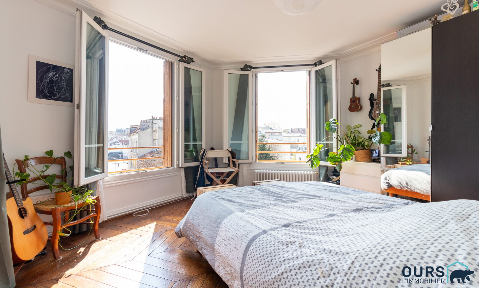 Lumineux et en parfait état intérieur, hauteur sous plafond, grandes fenêtres et parquet massif.