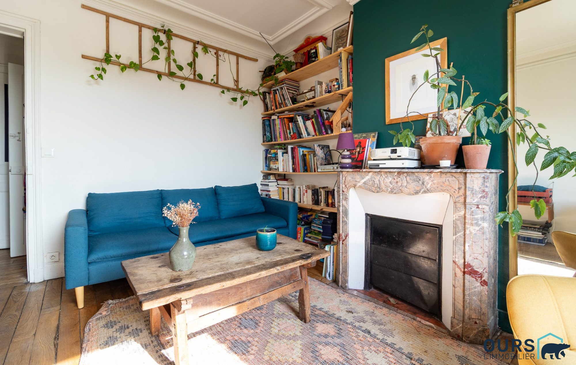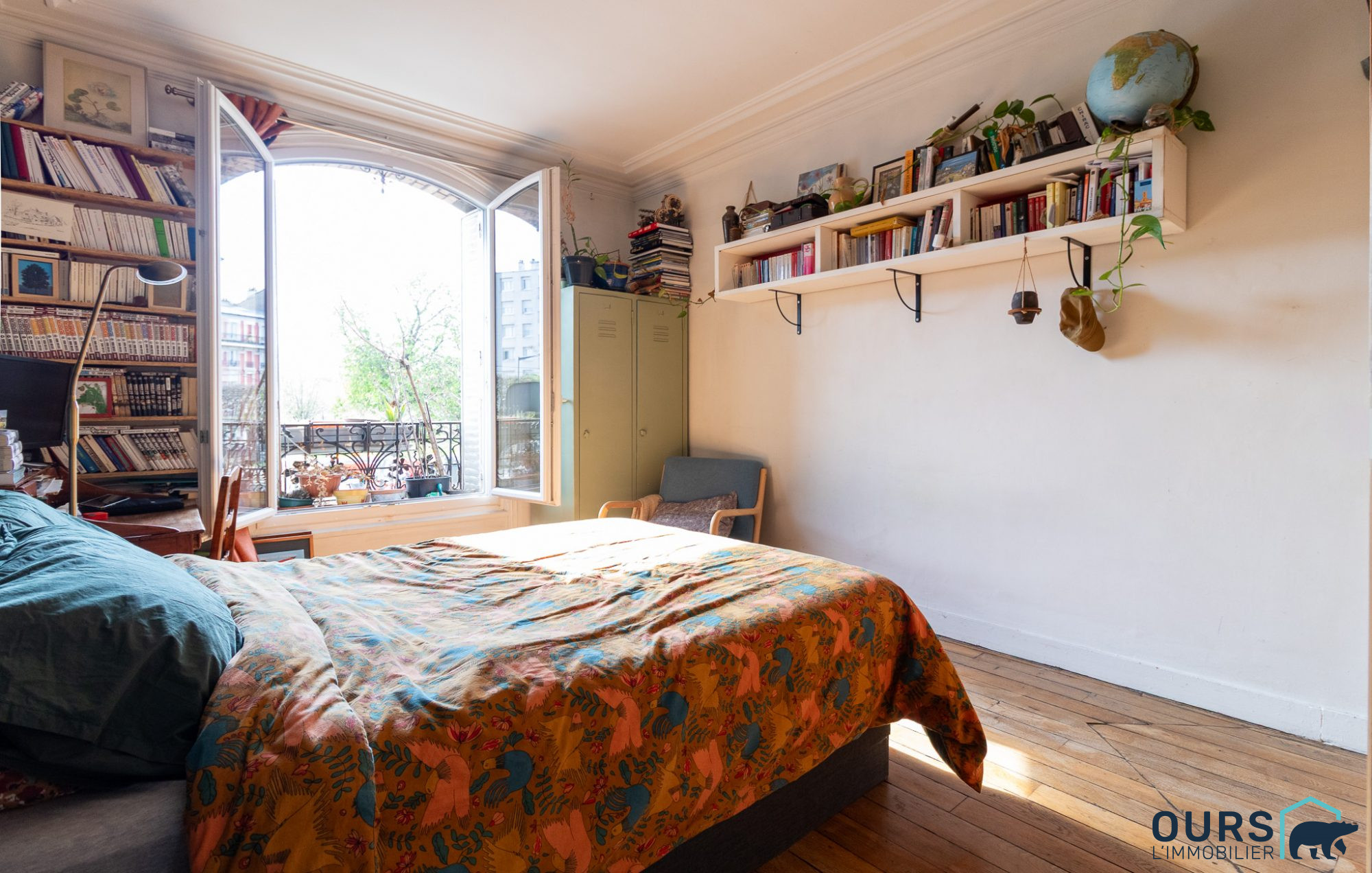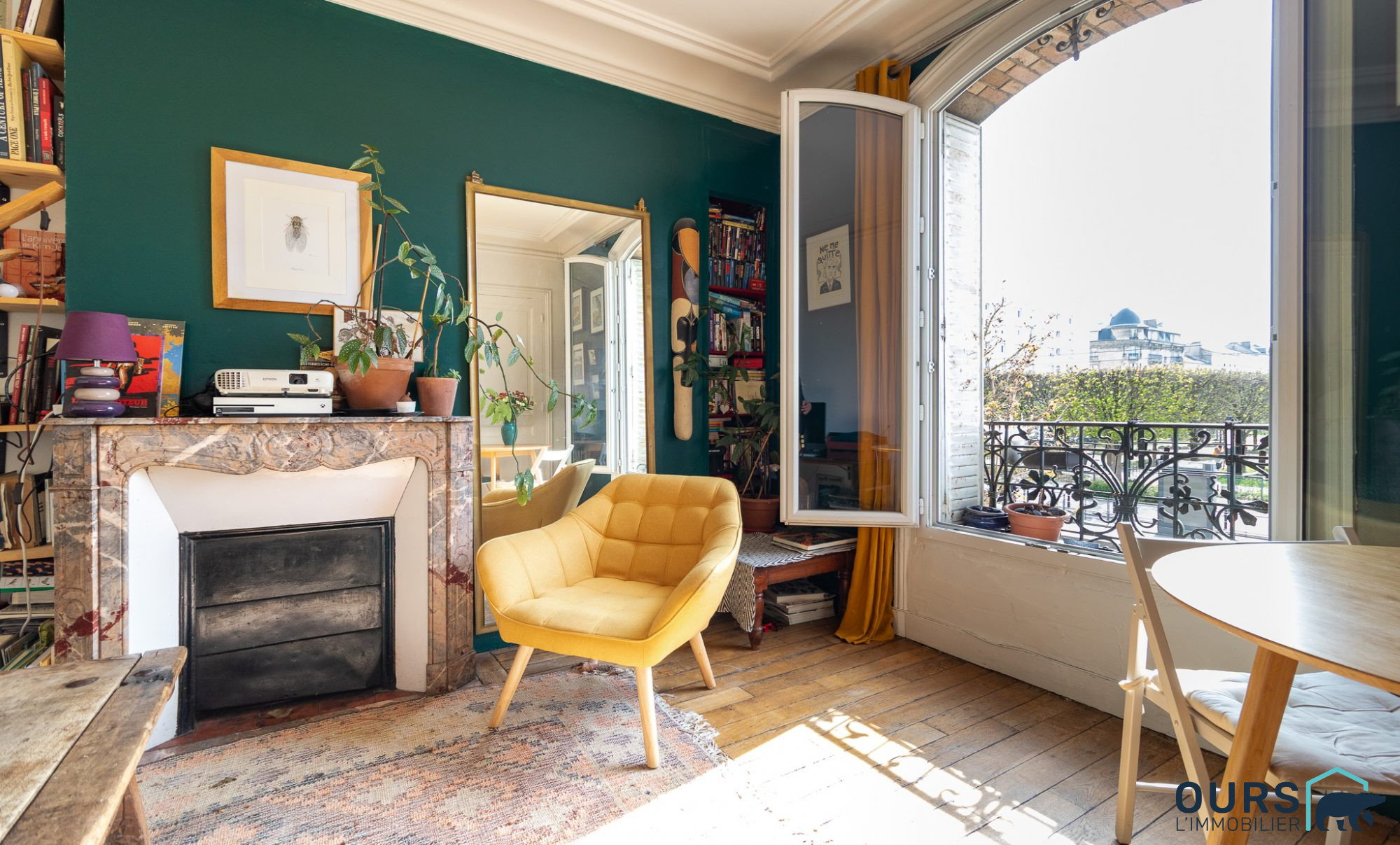 En parfait état intérieur, le charme de l'ancien opère immédiatement: parquet, hauteur sous plafond, moulures, cheminée et grandes fenêtres. Et Quelle lumière ! En face du square Pierre De Geyter, particulièrement lumineux avec son orientation sud-ouest et sa vue dégagée sur le parc, sans aucun vis-à-vis.