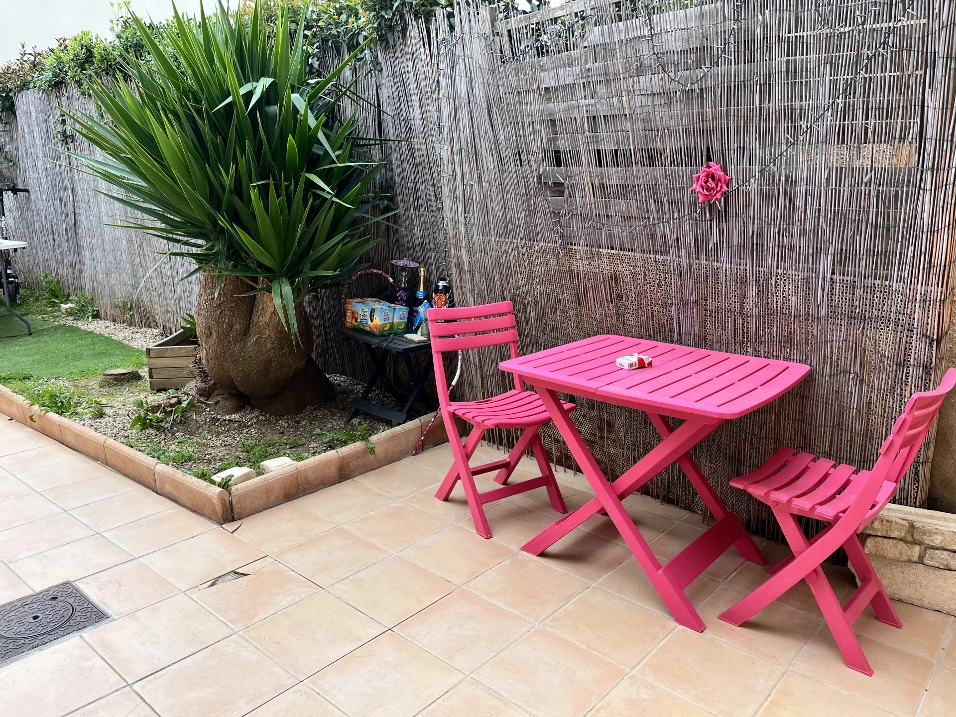 Côté extérieur, la maison dispose d'un jardin privatif agréable, facile d'entretien. On y trouve un espace terrasse carrelé permettant d'installer un coin repas ou détente avec un salon de jardin, idéal pour profiter des beaux jours en toute intimité. La présence de végétation apporte une touche de verdure appréciable sans nécessiter trop d'entretien.