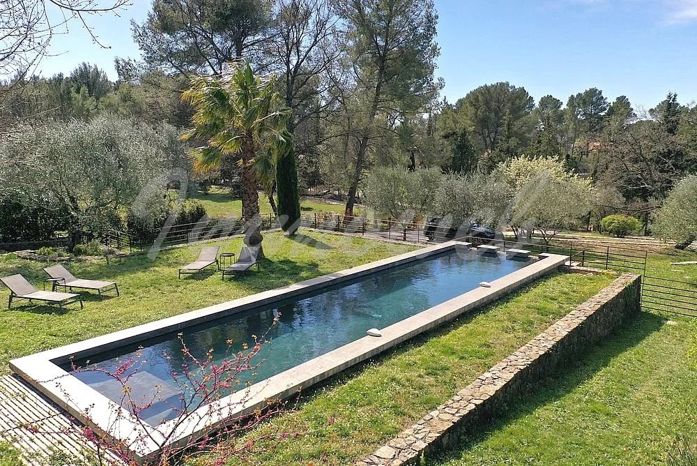 Maison en pierre avec piscine – Charme, calme et cadre verdoyant à Tourrettes (83440) Dans un environnement paisible et recherché, découvrez cette authentique maison en pierre d’environ 110 m², nichée au cœur d’un terrain arboré de 3500 m² avec piscine, offrant un cadre de vie rare et privilégié. La maison se compose de : Une entrée accueillante Un séjour chaleureux avec cuisine ouverte équipée, convivial et lumineux Une véranda offrant un espace de vie supplémentaire tourné vers le jardin Un bureau Une suite parentale avec salle d’eau Deux chambres supplémentaires Une salle de bains Vous profiterez d’un terrain arboré typiquement provençal, avec : Une terrasse avec espace barbecue, parfaite pour recevoir Une piscine propice à la détente Plusieurs espaces de repos et de convivialité Un véritable havre de paix, idéal en résidence principale comme secondaire. Maison en pierre pleine de charme (caractère provençal) Environnement calme Piscine élégante parfaitement intégrée Extérieurs soignés : terrasse, jardin, espace détente Véranda lumineuse utilisable toute l’année Stationnement avec abri voiture Située à Tourrettes 83440, dans un secteur apprécié pour son calme et sa qualité de vie, la maison bénéficie d’un accès rapide aux commodités et aux axes principaux, tout en restant à l’abri de l’agitation. Bien rare sur le secteur Parfait équilibre entre charme ancien et confort Idéal famille ou résidence secondaire Coup de cœur assuré dès la première visite Les biens de ce type sont très recherchés. Contactez nous dès maintenant pour organiser une visite.