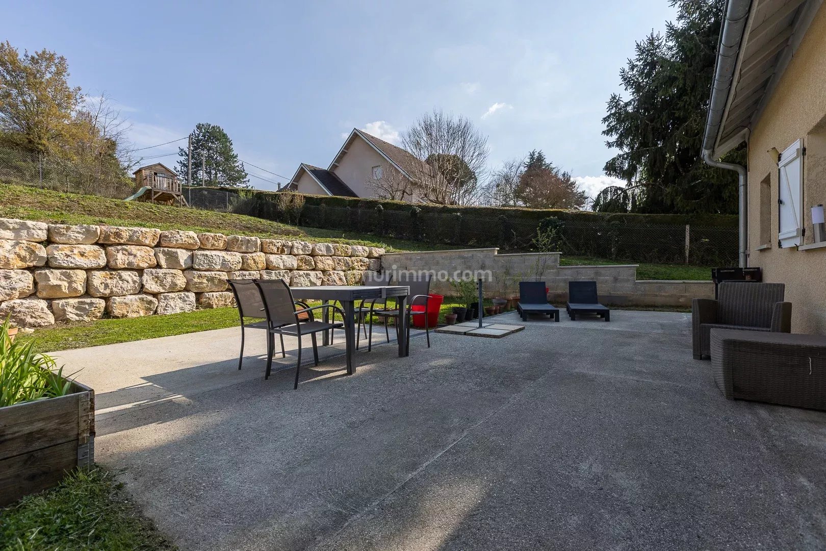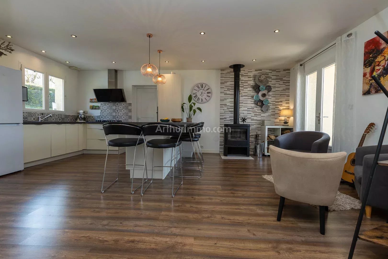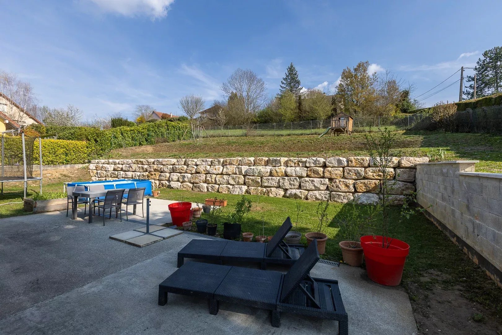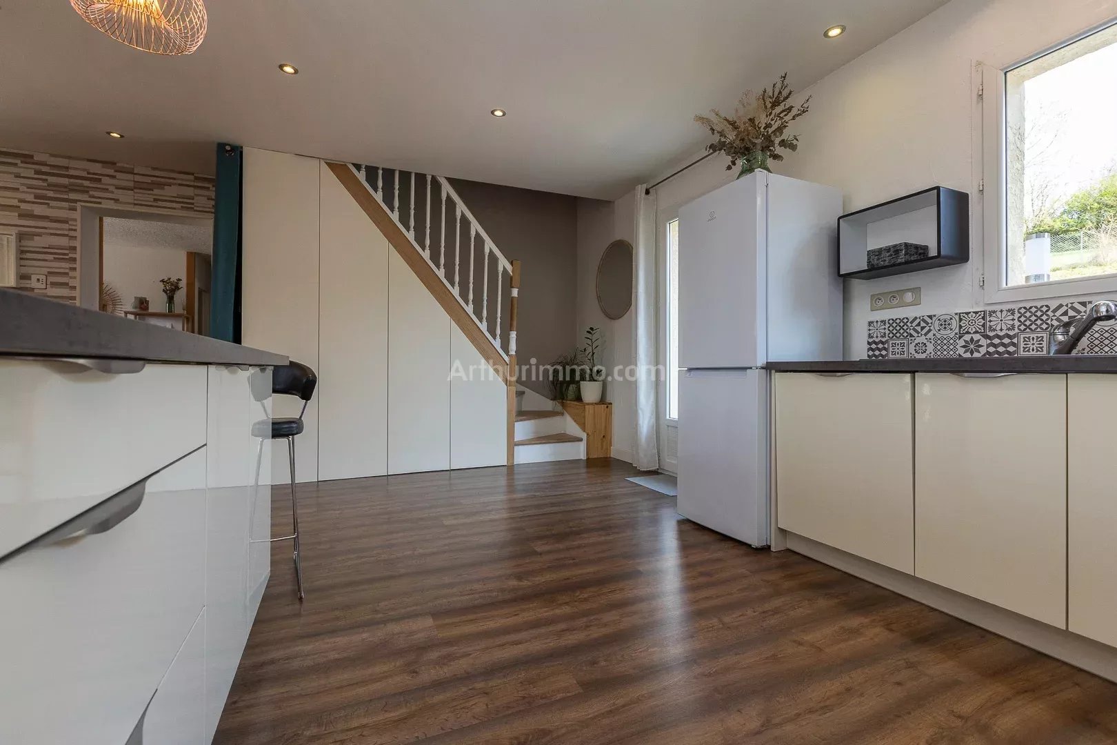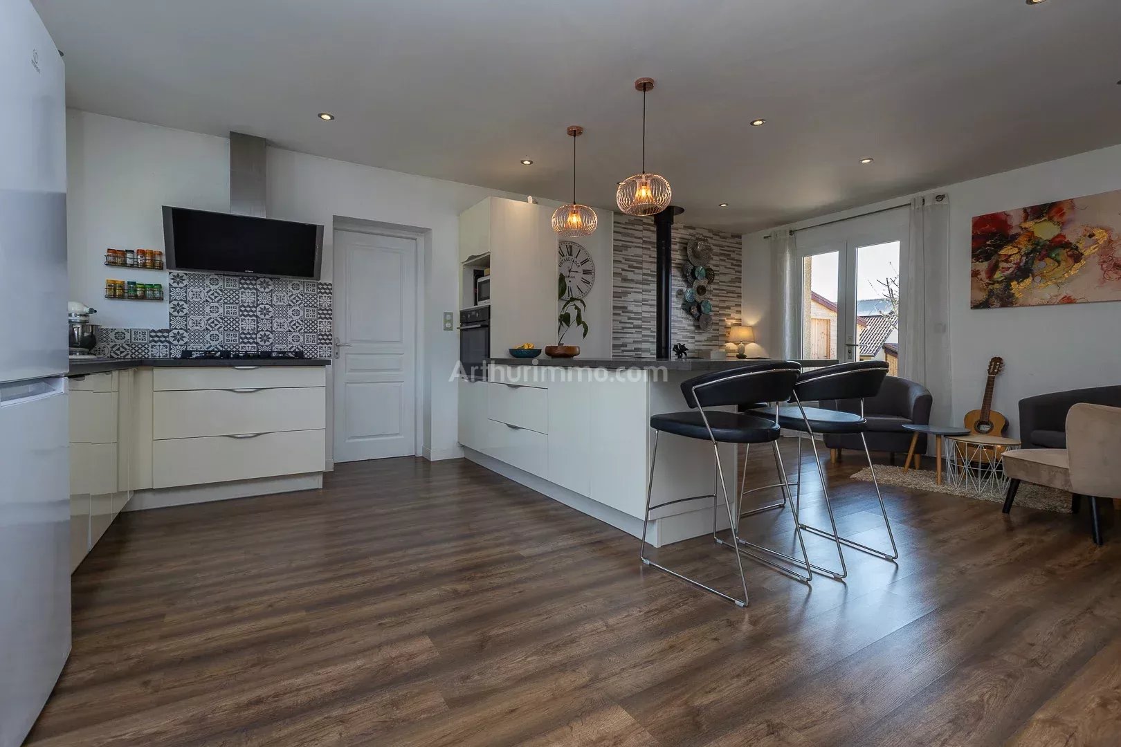 À seulement quelques minutes des commerces, dans un cadre campagne recherché avec vue dégagée, découvrez cette agréable maison de 2009 d’environ 128 m² (150 m² de surface plancher), implantée sur un terrain clos et arboré de 1250 m² avec portail électrique. Elle se compose : -Rez-de-chaussée : pièce de vie avec cuisine ouverte donnant sur une terrasse de 50 m², un salon indépendant, 2 chambres, une salle de bains avec WC, un cellier/buanderie et un garage. -Etage : salle de jeux, 2 chambres, un dressing, une salle d'eau avec sanibroyeur, un grenier. Côté confort : -chauffage au sol électrique au rez-de-chaussée, convecteurs à inertie à l’étage, poêle à bois pour une ambiance chaleureuse -fibre optique -adoucisseur d’eau -VMC simple flux -Menuiseries PVC double vitrage avec volets PVC -Assainissement collectif. À l’extérieur, tout est réuni pour profiter pleinement : terrain de pétanque, dépendance de 16,7 m² avec partie fermée et carport, ainsi qu’une source. Une maison idéale pour accueillir votre famille et construire de beaux projets de vie. Ref : 7239. DPE : C – Honoraires charge vendeur Les informations sur les risques auxquels ce bien est exposé sont disponibles sur : georisques.gouv.fr visite virtuelle et vidéo disponibles Arthurimmo Belley / Vézeronce-Morestel / Montalieu