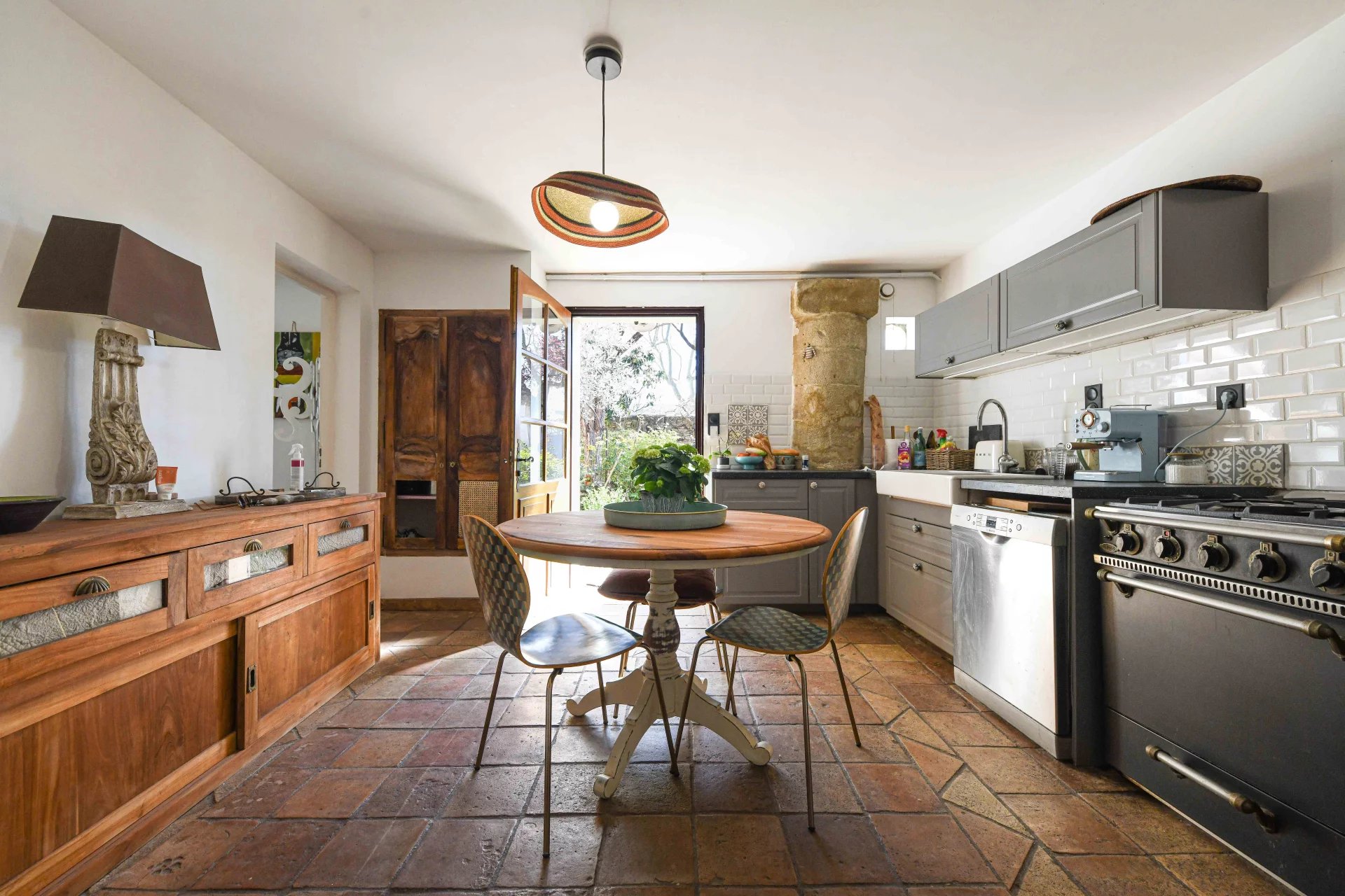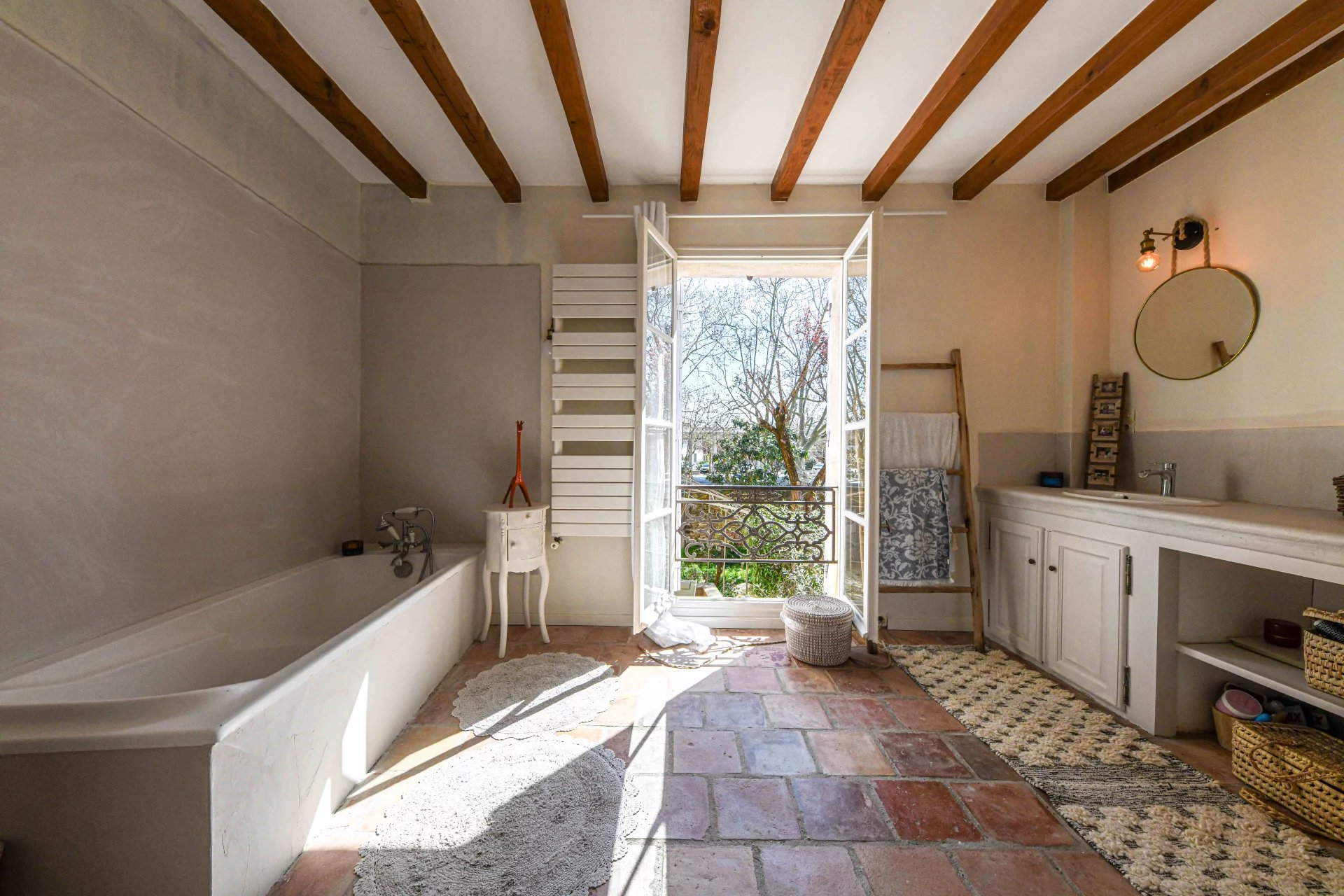 Éléments architecturaux de qualité, beaux volumes Belles pièces de réception ouvertes sur le jardin 5 chambres, 4 salles de bains, cellier, buanderie, pièce voûtée extérieure Situation unique dans un village tous commerces