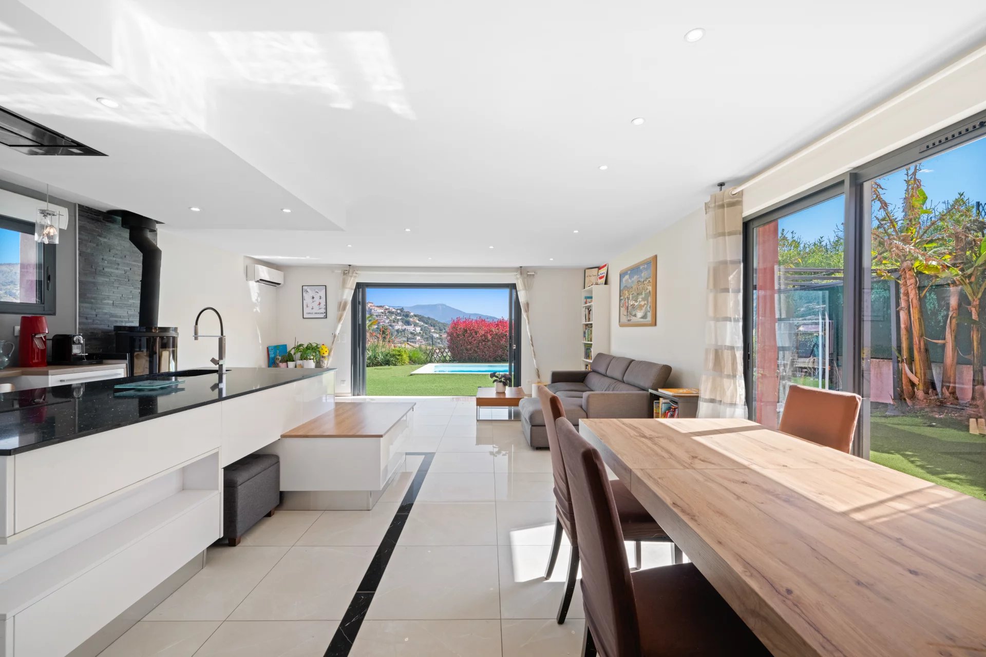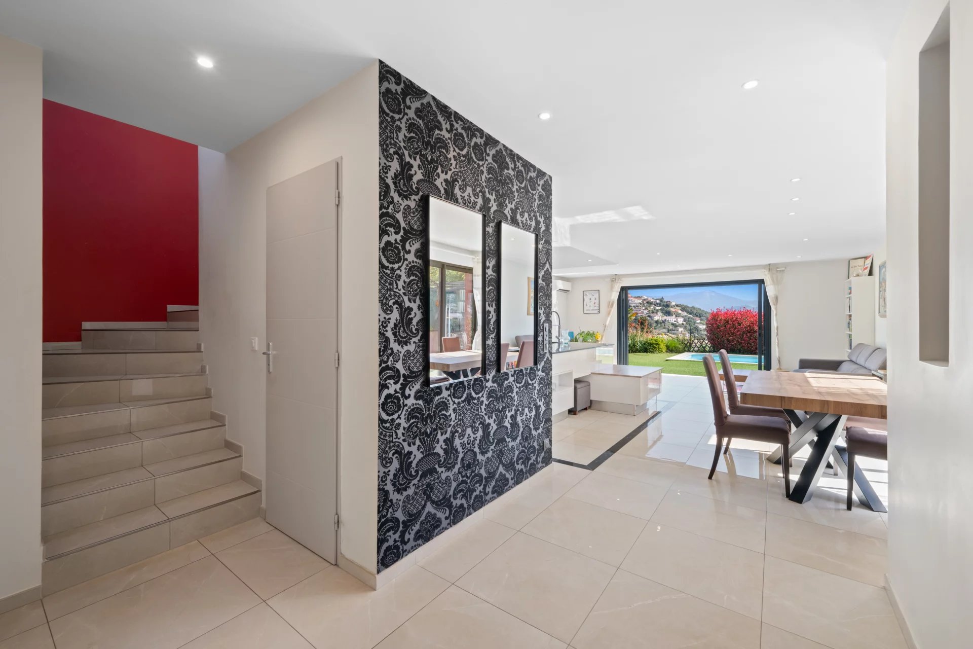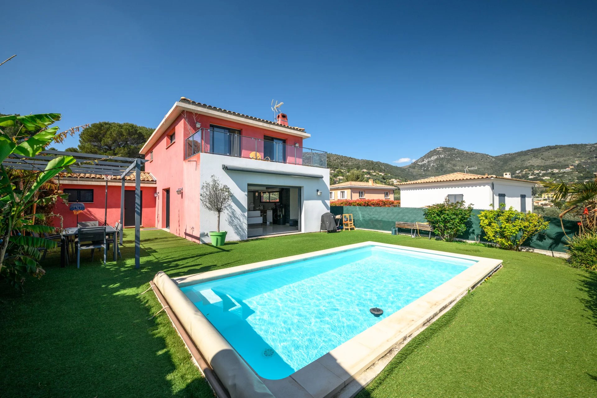Nichée dans un domaine prisé de Rimiez, cette maison contemporaine sera vous captiver par ses prestations de qualité. Composée d'un séjour cuisine de 60m² ouvrant sur une terrasse lumineuse et sa piscine, vous retrouver également une chambre de plain pied. A l'étage une très grande suite parentale de 25m² et sa terrasse, une 2ème chambre ainsi qu'un bureau. Un garage de 19m² ainsi qu'une buanderie. Elle offre un espace de vie confortable et bien aménagé, les fenêtres coulissantes permettront une luminosité optimale, tandis que la climatisation réversible assure un confort thermique. Ce bien dépend du collège Matisse et du lycée Calmette. Classe énergie : C Les honoraires d'agence seront intégralement à la charge du vendeur. Les informations sur les risques auxquels ce bien est exposé sont disponibles sur le site Géorisques http://georisques.gouv.fr