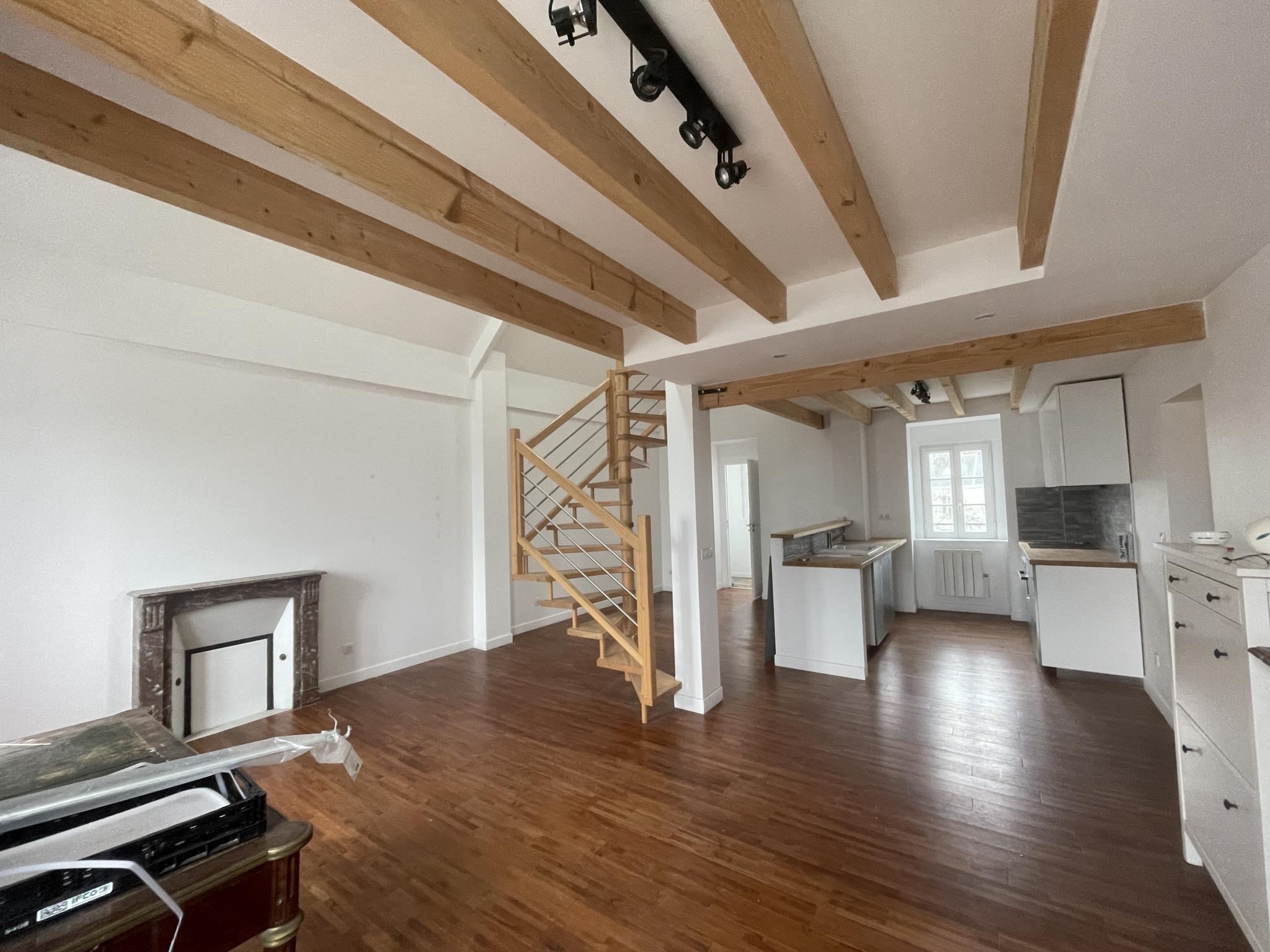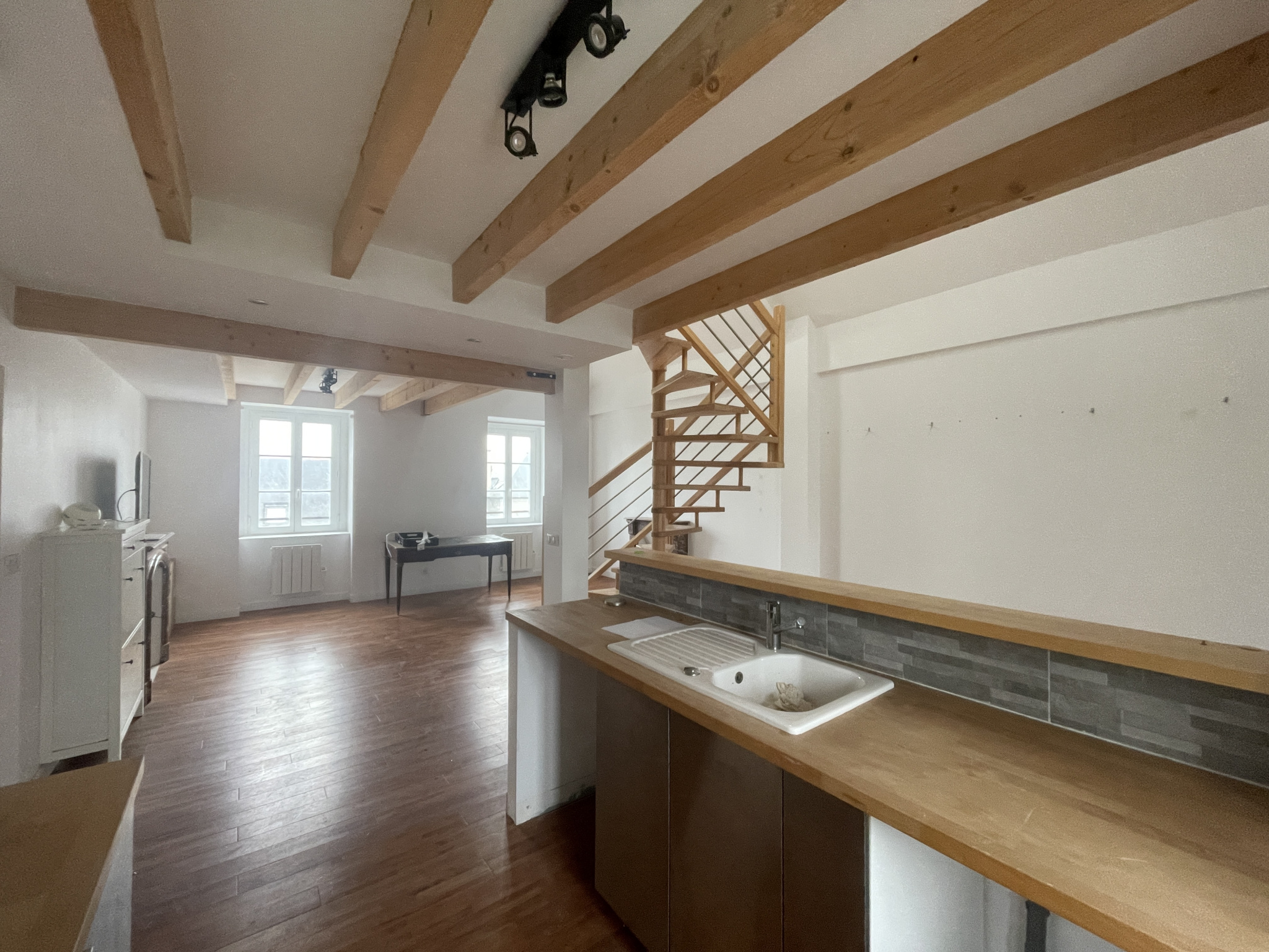 Saint Malo Rue Villepépin, Dans un immeuble rénové, un grand appartement T2 Type Duplex dont la chambre, la salle d'eau et deux Wc sont sous les combles,