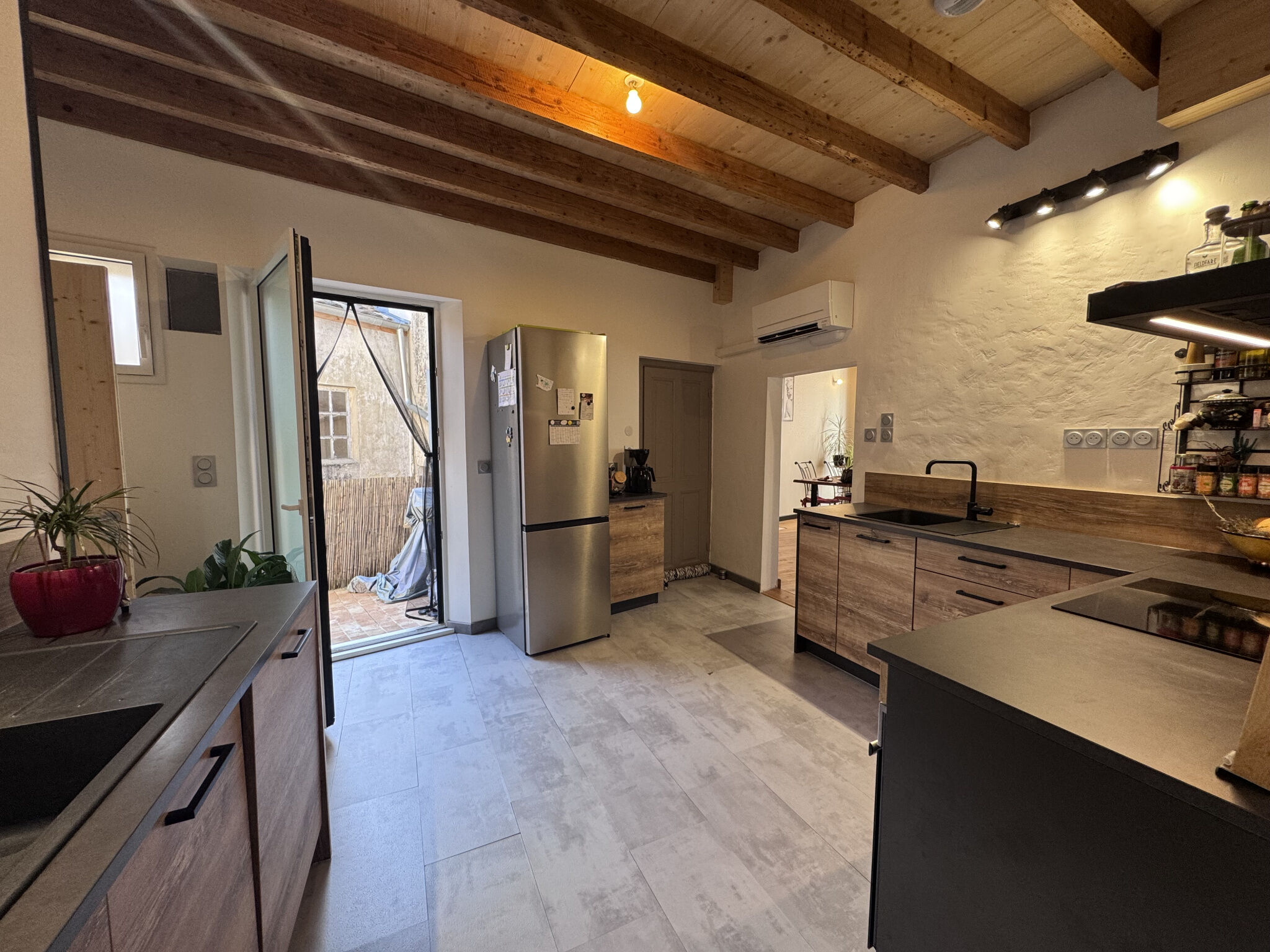 NOUVEAUTÉ LA BASTIDE AGENCE IMMOBILIÈREVenez découvrir cette charmante maison de village d'environ 122 m² habitable avec terrasse, entièrement rénovée avec goût et avec des matériaux de qualité, idéalement située en plein coeur de Sauzet, à proximité immédiate des commodités telles que l'école, la pharmacie, l'épicerie et la boulangerie. Dès l'entrée, un hall dessert deux accès pouvant être distincts. Cette configuration présente de nombreuses possibilités d'aménagement, que ce soit pour un projet locatif, l'installation d'une activité professionnelle ou encore l'agrandissement de l'espace de vie principal. Le rez-de-chaussée, d'une surface totale d'environ 45 m² dont 29 m² habitable offre un beau potentiel. Il se compose de deux pièces, d'une salle d'eau ainsi que d'une grande buanderie. L'habitation principale, répartie sur le premier et le deuxième étage, a été entièrement rénovée avec soin et se distingue par la qualité de ses prestations et sa luminosité. Au premier étage, vous découvrirez une cuisine équipée de marque Cuisinella d'environ 13 m² avec un accès direct sur une terrasse d'environ 11 m² dans un envionnement calme, idéale pour profiter des beaux jours. La cuisine se prolongue sur une agréable pièce de vie d'environ 30 m², baignée de lumière composée d'un coin salon chaleureux avec poêle à granulés ainsi qu'un espace salle à manger. Ce niveau comprend également un WC indépendant et une chambre d'environ 12 m². Le dernier étage se compose d'un espace bureau ouvert, d'une spacieuse salle d'eau ainsi que d'une grande chambre d'environ 15 m², offrant un deuxième coin nuit confortable. Enfin, l'ensemble de l'habitation principale est équipé d'une climatisation réversible dans chaque pièce, garantissant un confort optimal en toute saison. Les plus : rénovation de qualité, climatisations réversibles dans toutes les pièces, fibre, chauffe-eau thermodynamique, menuiseries aluminium double vitrage avec moustiquaires, menuiseries oscillo battantes. Projection 3D non contractuelle. N'hésitez plus et laissez-vous séduire par cette maison de village aux nombreux atouts ! Les informations sur les risques auxquels ce bien est exposé sont disponibles sur le site Géorisques : www.georisques.gouv.fr.Informations LOI ALUR :