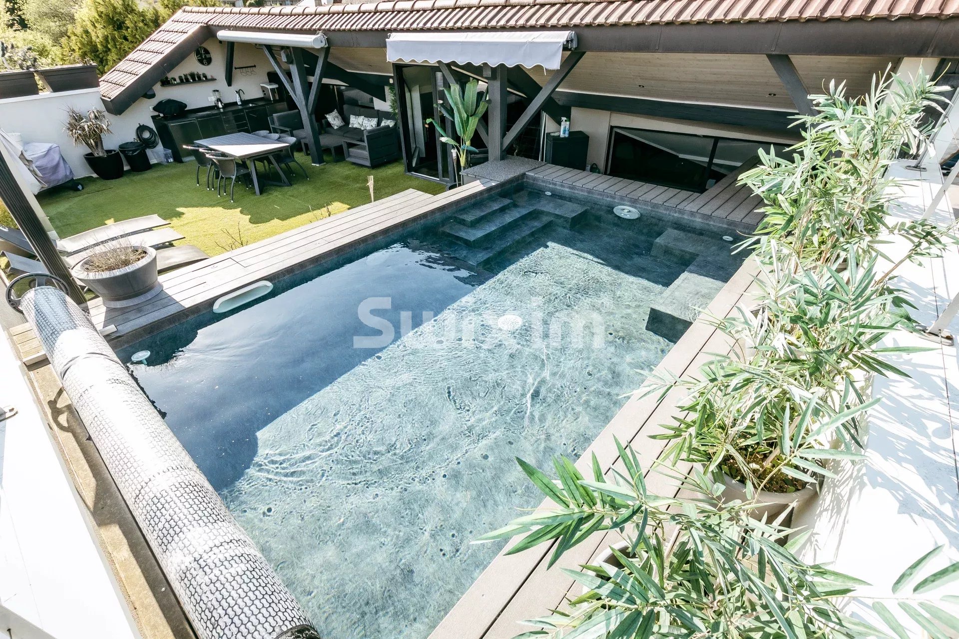 Ref 146GP, Rare à la vente Annecy Nord, à proximité immédiate de l’autoroute et des commerces, cette villa haut de gamme de 310 m² habitables offre des prestations exceptionnelles dans un cadre de vie surprenamment calme. Dès l’entrée, vous serez séduit par la pièce de vie impressionnante de 138 m² comprenant un vaste séjour, une salle à manger et une cuisine ouverte entièrement équipée. Ce bien d’exception dispose de quatre chambres spacieuses, d’un espace bien-être avec sauna, ainsi qu’une salle dédiée au sport ou aux jeux. Véritable prolongement du lieu de vie, une grande terrasse sur le toit vous attend, avec piscine, cuisine d’été et espace détente, idéale pour profiter des beaux jours en toute intimité. Ce bien unique combine modernité, confort et volumes hors normes, dans un environnement privilégié à seulement quelques minutes de Genève ou d’Annecy. Un bien rare à découvrir sans attendre! Agent commercial indépendant Swixim sur votre secteur : +33665678586 Honoraires à la charge du vendeur - Montant estimé des dépenses annuelles d'énergie pour un usage standard, établi à partir des prix de l'énergie de l'année 2021 : 1794€ ~ 2428€ - Grégory PERTUSA - Agent commercial - EI - RSAC 947 471 108 / Thonon Les Bains