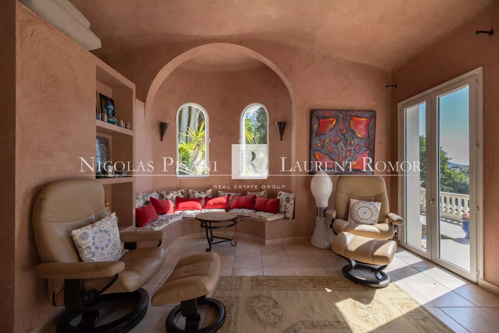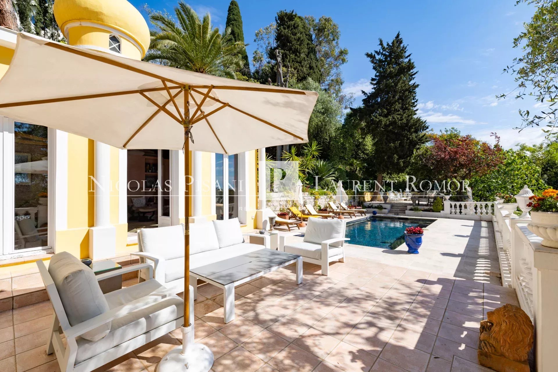 Magnifique propriété en vente dans notre agence, à cinq minutes du centre de Nice et de la Promenade des Anglais en lisière du parc naturel départemental d'Estienne d'Orves. La villa est implantée sur un terrain de 3340 m² clos et arboré de différentes essences méditerranéennes, jardin classé "jardin remarquable". De nombreuses terrasses et une très belle piscine chauffée avec une vue sur la mer vous charmeront. Cette bâtisse d'environ 350m² sur 3 niveaux est agencée comme suit: un vaste séjour/salle à manger, une cuisine équipée, 5 chambres en suite avec salle de douche ou bains, un bureau. Une chapelle transformée en espace détente accueille un hammam et une douche tout proche de la piscine. De nombreuses places de stationnement à l'intérieur de la propriété permettent d'accueillir vos hôtes facilement. Les honoraires sont à la charge du vendeur.
