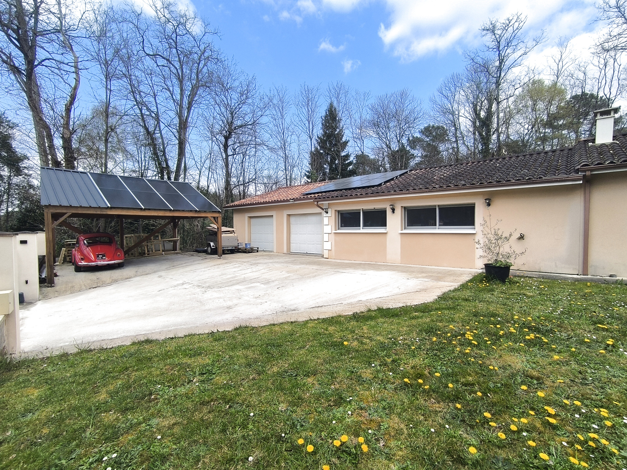 Un double garage et un carport avec panneaux solaires viennent compléter cette propriété. Le jardin d'environ 1375m2 est entièrement cloturé.